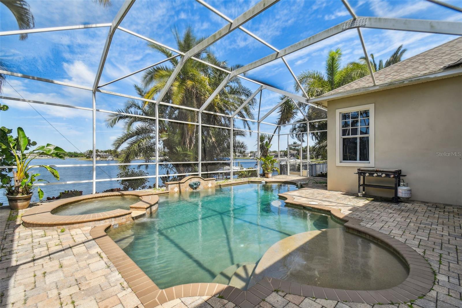 Come see Waterfront living at its BEST!!! Come and enjoy the GORGEOUS WATER VIEWS that this beautiful coastal pool home has to offer. This custom home with its private dock is located in the exclusive gated community of Mirabay overlooking a 135 acre Lagoon with boating access to Tampa Bay and the Gulf waters beyond! Step into the impressive entry that leads to the pool oasis with plenty of room for entertaining, swimming and enjoying the panoramic water views. Great room floor plan with separate formal dining room with a custom pass through to the HUGE kitchen that boasts plenty of cabinets, granite counter tops, built-in stainless-steel appliances, and an expansive eat-in breakfast nook. 5 spacious bedrooms, one with a large sitting area or flex room,, three full bathrooms and two half baths, one specifically designated a pool bath! An executive office with built-in cabinetry plus a large bonus/game room/in-law-suite equipped with a wet bar adds to this wonderful home. Some of the recent improvements include two new AC units, new Roof, water heater, pool enclosure screens and a pool pump! MiraBay offers its residents a 10,000 sq ft clubhouse, café, state of the art gym, Olympic size swimming pool, 136 foot waterslide, tennis and basketball courts as well as pickleball! Something for everyone!! Start living your DREAM Lifestyle TODAY!!