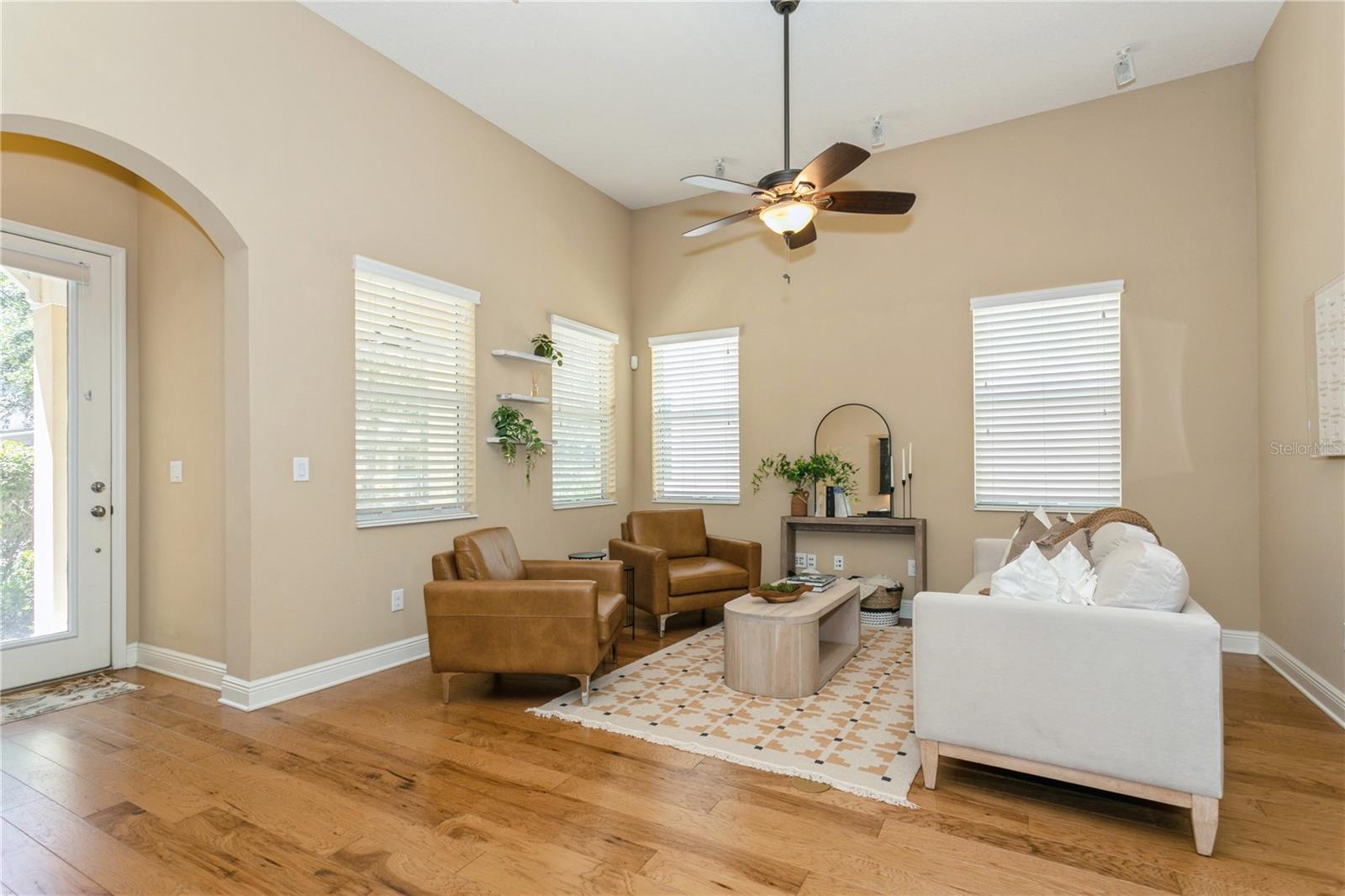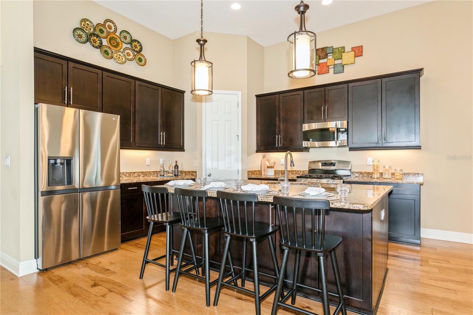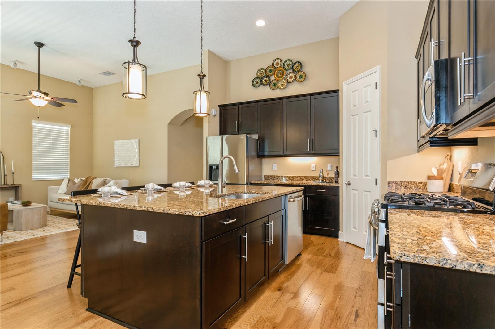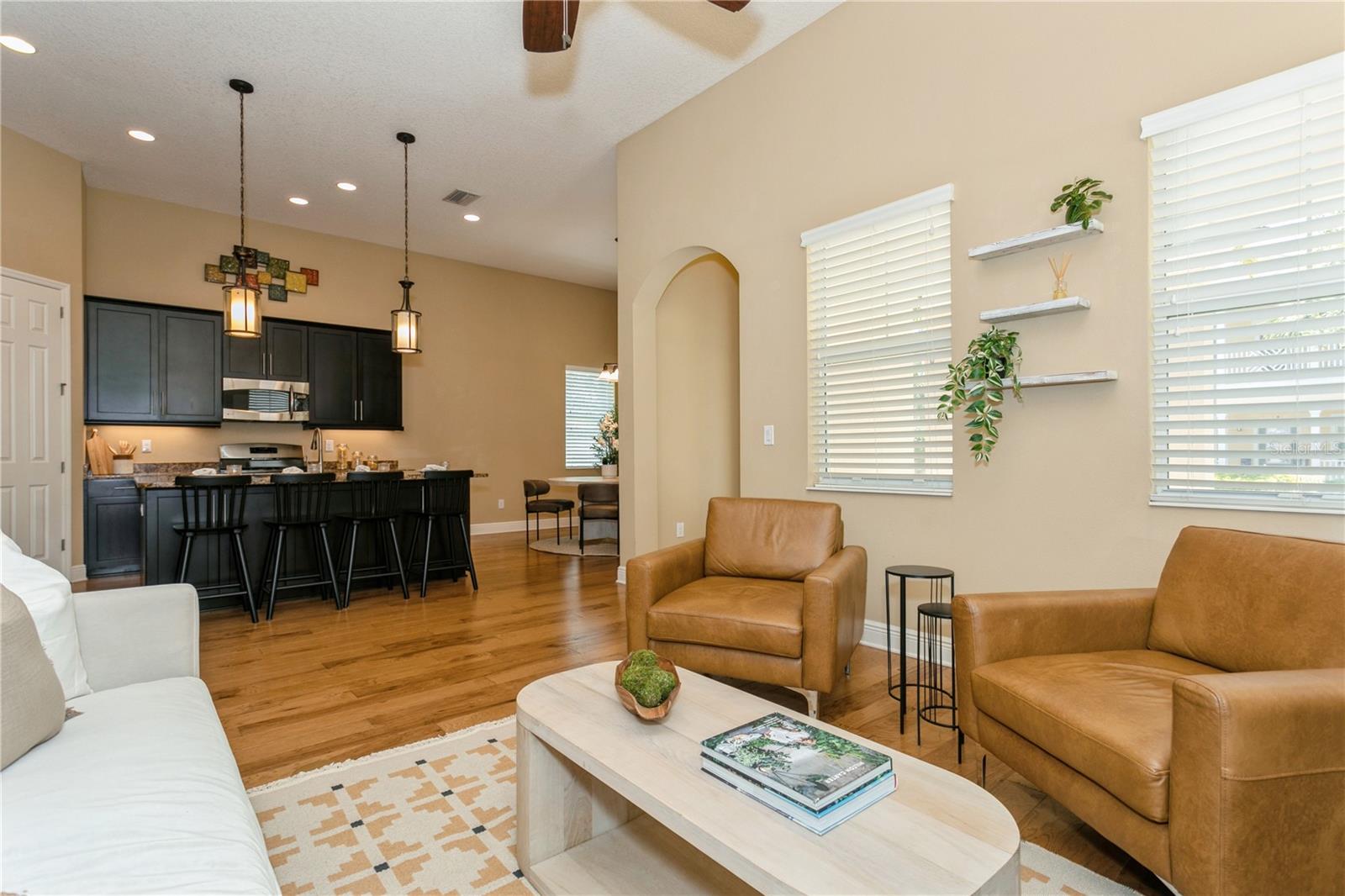 Step into the epitome of luxury living at Mirabay, where sophistication harmonizes with a relaxed vibe. This delightful 3-bedroom, 2-bathroom haven boasts 1803 sq ft of pure bliss, tucked away in a coveted corner location. The expansive 3-car garage welcomes your vehicles with open arms, be it a car, golf cart, or prized collector's item. Indoors, prepare to be enchanted by the immersive surround sound system, an entertainer's dream or a haven for tranquil melodies. The high ceilings ensures a grand entrance every time. No need to worry about the Florida heat with a brand-new in 2022 Lennox A/C and gas furnace. Delight in the seamless flow of wide-plank wood floors, guiding you from a welcoming living room to a chef-inspired kitchen, and finally to a serene master suite. The versatile den with glass French doors offers the perfect space for remote work or an additional bedroom. The kitchen is a vision of elegance with granite countertops, wood cabinets, a gas stove and gleaming Stainless Steel appliances, including a new in 2022 refrigerator. Also new in 2022 is the washer and dryer in the laundry room. Step onto the front porch for a hidden retreat amidst park-like views, or retreat to the back patio, your private outdoor oasis. Leave yard maintenance to the low HOA, ensuring lush greenery and well-tended landscapes without lifting a finger. Dive into a world of resort-style amenities, from the café and clubhouse to envy-inducing pools. Stay active with a 24/7 gym and an array of sports courts. Don't just imagine the lifestyle—experience it firsthand. Join the Mirabay community and schedule your showing today to discover why this home is an opportunity not to be missed.