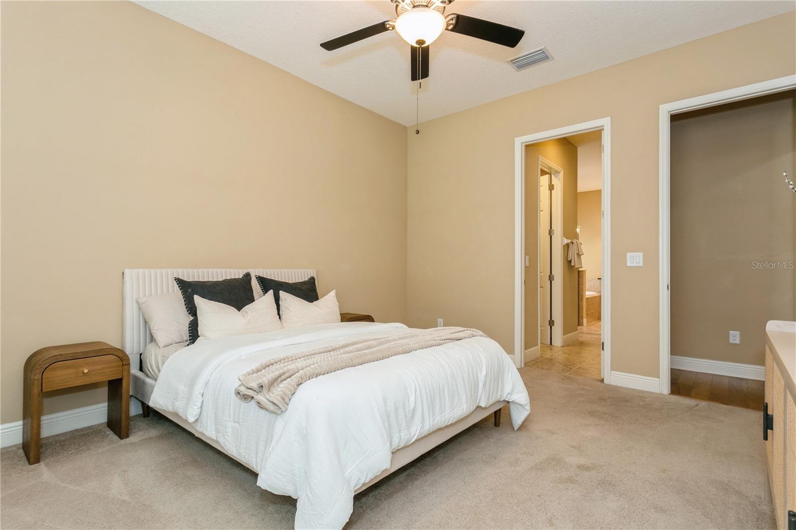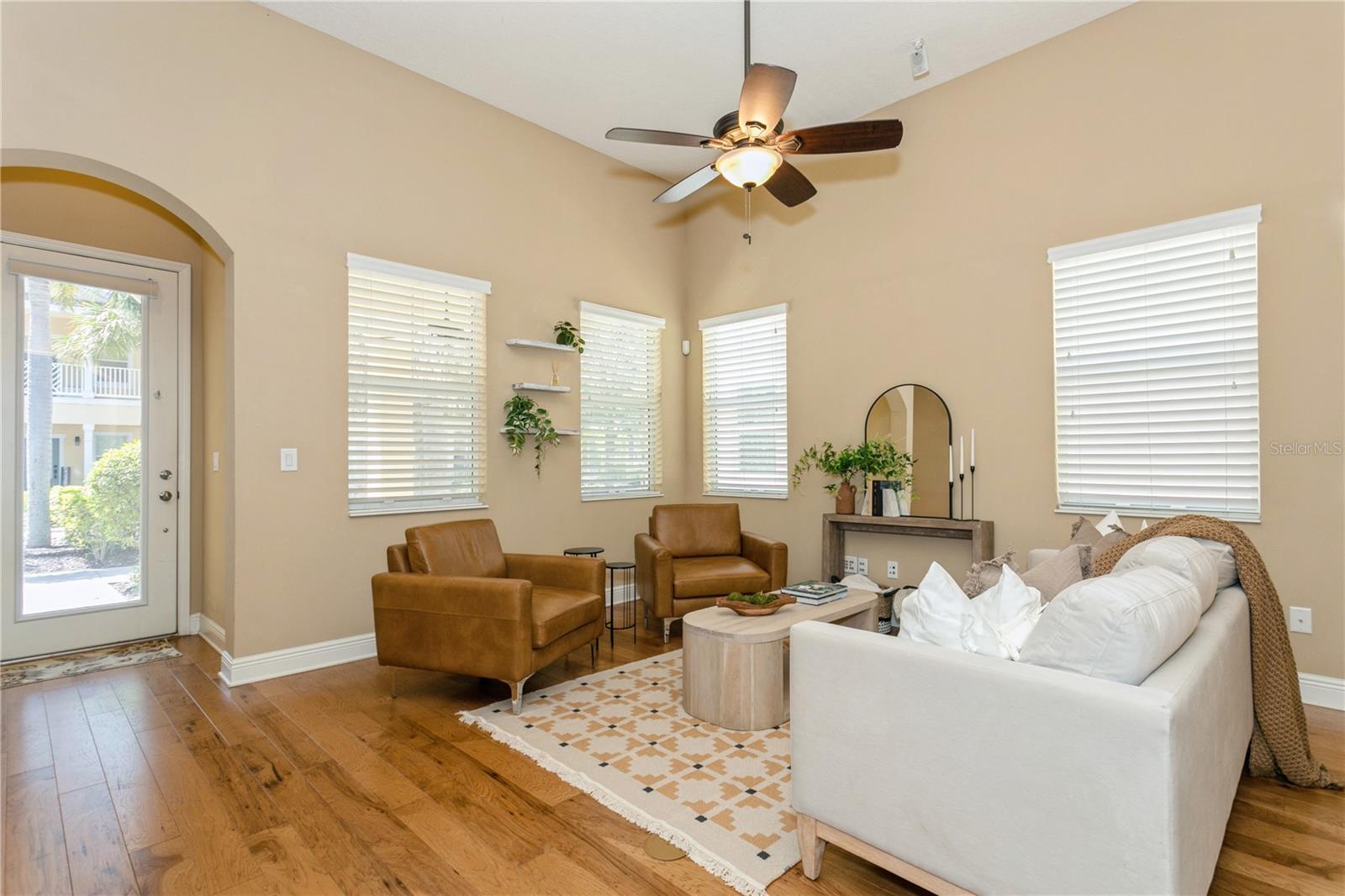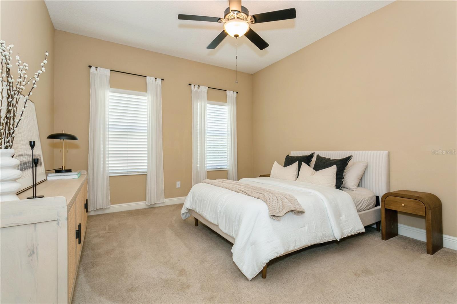 Step into the epitome of luxury living at Mirabay, where sophistication harmonizes with a relaxed vibe. This delightful 3-bedroom, 2-bathroom haven boasts 1803 sq ft of pure bliss, tucked away in a coveted corner location. The expansive 3-car garage welcomes your vehicles with open arms, be it a car, golf cart, or prized collector's item. Indoors, prepare to be enchanted by the immersive surround sound system, an entertainer's dream or a haven for tranquil melodies. The high ceilings ensures a grand entrance every time. No need to worry about the Florida heat with a brand-new in 2022 Lennox A/C and gas furnace. Delight in the seamless flow of wide-plank wood floors, guiding you from a welcoming living room to a chef-inspired kitchen, and finally to a serene master suite. The versatile den with glass French doors offers the perfect space for remote work or an additional bedroom. The kitchen is a vision of elegance with granite countertops, wood cabinets, a gas stove and gleaming Stainless Steel appliances, including a new in 2022 refrigerator. Also new in 2022 is the washer and dryer in the laundry room. Step onto the front porch for a hidden retreat amidst park-like views, or retreat to the back patio, your private outdoor oasis. Leave yard maintenance to the low HOA, ensuring lush greenery and well-tended landscapes without lifting a finger. Dive into a world of resort-style amenities, from the café and clubhouse to envy-inducing pools. Stay active with a 24/7 gym and an array of sports courts. Don't just imagine the lifestyle—experience it firsthand. Join the Mirabay community and schedule your showing today to discover why this home is an opportunity not to be missed.