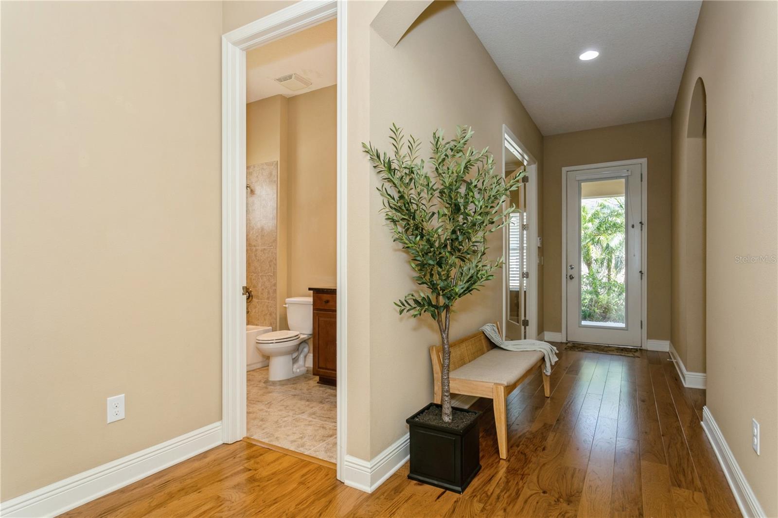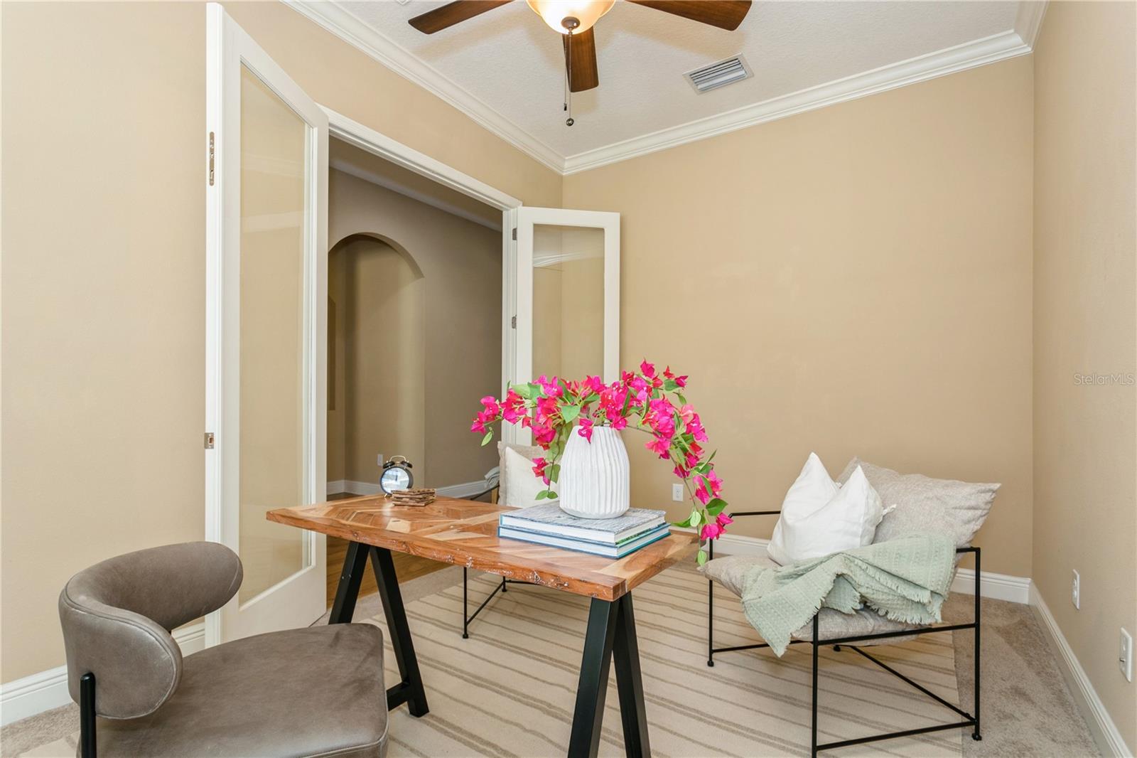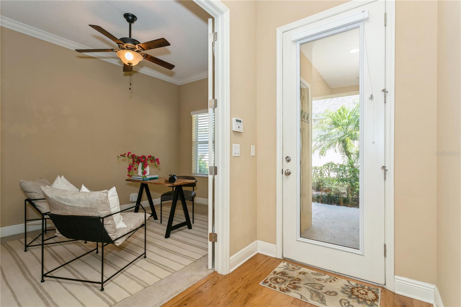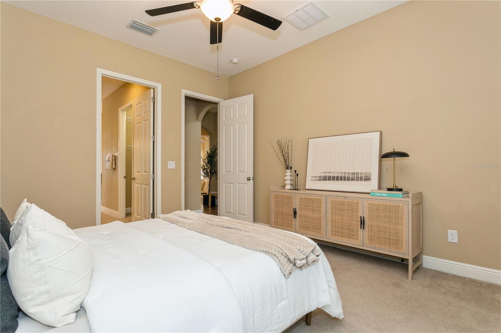 Step into the epitome of luxury living at Mirabay, where sophistication harmonizes with a relaxed vibe. This delightful 3-bedroom, 2-bathroom haven boasts 1803 sq ft of pure bliss, tucked away in a coveted corner location. The expansive 3-car garage welcomes your vehicles with open arms, be it a car, golf cart, or prized collector's item. Indoors, prepare to be enchanted by the immersive surround sound system, an entertainer's dream or a haven for tranquil melodies. The high ceilings ensures a grand entrance every time. No need to worry about the Florida heat with a brand-new in 2022 Lennox A/C and gas furnace. Delight in the seamless flow of wide-plank wood floors, guiding you from a welcoming living room to a chef-inspired kitchen, and finally to a serene master suite. The versatile den with glass French doors offers the perfect space for remote work or an additional bedroom. The kitchen is a vision of elegance with granite countertops, wood cabinets, a gas stove and gleaming Stainless Steel appliances, including a new in 2022 refrigerator. Also new in 2022 is the washer and dryer in the laundry room. Step onto the front porch for a hidden retreat amidst park-like views, or retreat to the back patio, your private outdoor oasis. Leave yard maintenance to the low HOA, ensuring lush greenery and well-tended landscapes without lifting a finger. Dive into a world of resort-style amenities, from the café and clubhouse to envy-inducing pools. Stay active with a 24/7 gym and an array of sports courts. Don't just imagine the lifestyle—experience it firsthand. Join the Mirabay community and schedule your showing today to discover why this home is an opportunity not to be missed.