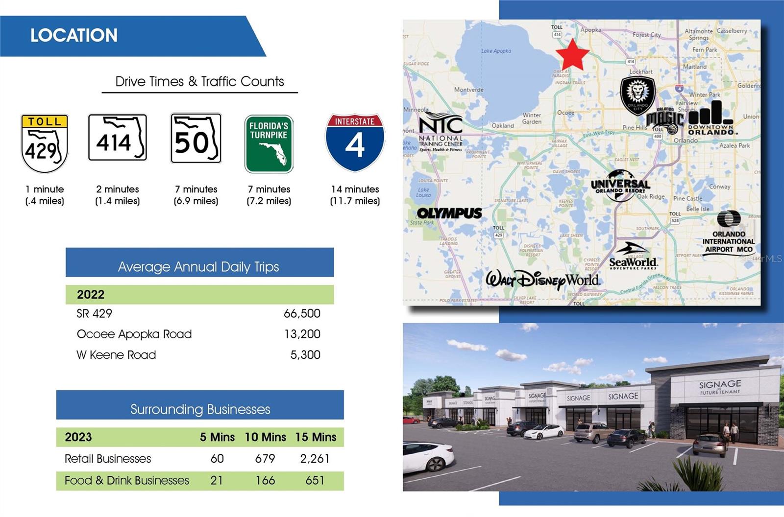 Under Construction. **Lowered Price throughout the development** Build Out Credit available** Broker incentive available** New Premier Mixed-Use Development situated at the intersection of Ocoee-Apopka Road and W Keene Road with dark grey shell buildings for retail and medical/office opportunities. Building #9 is a 5,556 SF medical building with facade signage available. The development includes 13 free-standing buildings ranging from retail, office, and medical use that can be purchased individually. Available building square footage from 2,665 SF - 7,004 SF. Retail drive-thru opportunities and over 2,000 SF of patio space available throughout the development. Located less than a mile from Advent Health’s 7-Story, 120-bed hospital and directly across from the new Publix Supermarket development. See the attached brochure for additional information with availability and contact information.