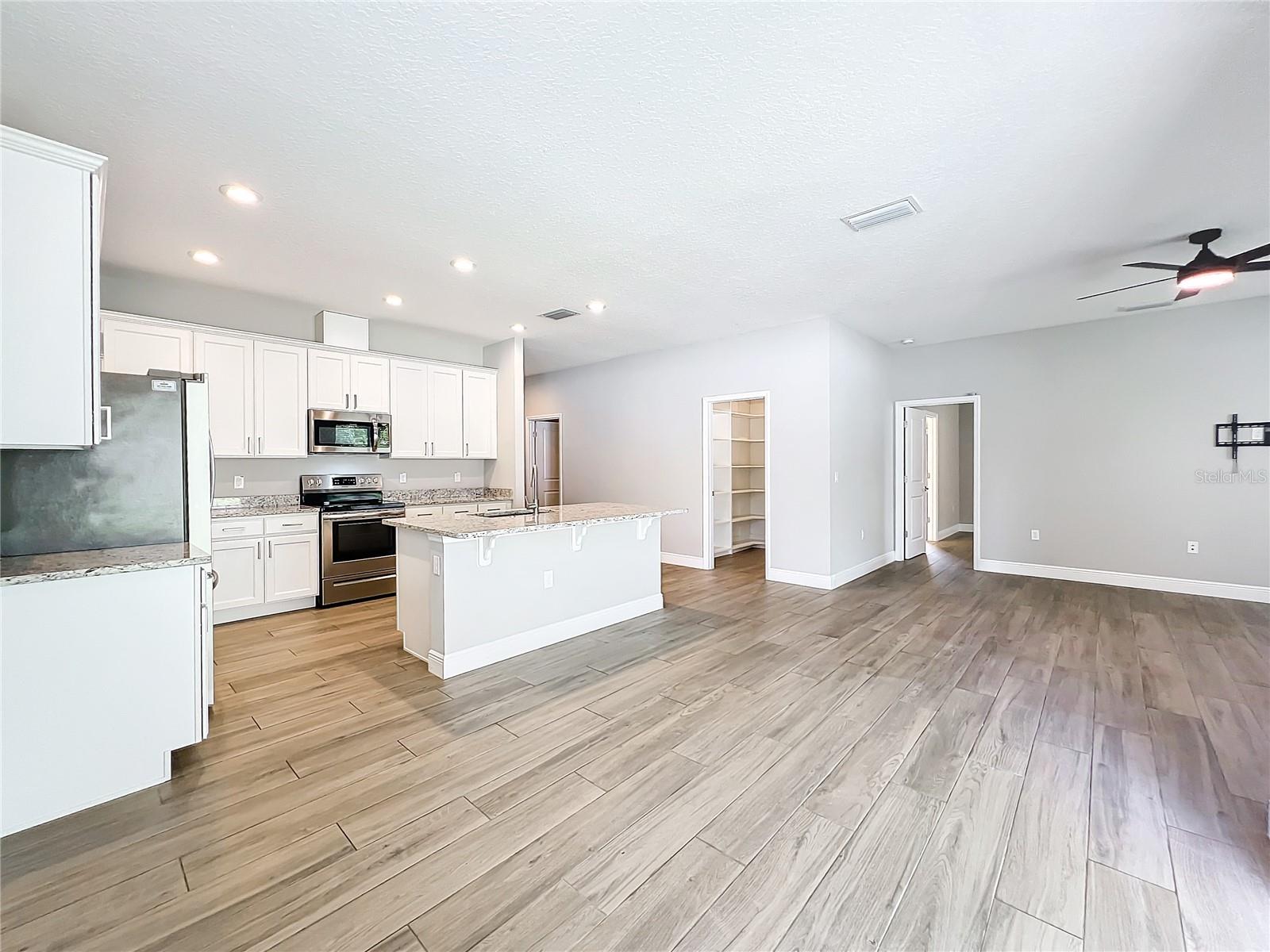 Welcome to this stunning move-in ready, ranch-style home! The inviting open floor plan allow for seamless transitions between living, dining, and kitchen areas. Not only is this home beautiful, it is full of great upgrades throughout! Gorgeous tile flooring all through the entire home, remote-controlled ceiling fans, blinds, 5 1/2 inch baseboards, and double pane windows. The spacious open kitchen features a breakfast bar, 42 inch cabinets, granite countertops, stainless steel appliances, recess lighting, and large 7 X 7 walk-in pantry. Roomy 2nd and 3rd bedrooms are separated by a large hallway space. Large guest bath comes with a tub/shower combo and linen closet. Master suite is spacious and exceptional! Master bedroom is 17 X 13 and the walk-in closet is 9 X 6. Master bath features built-in shelving, granite countertops, dual sinks, walk-in tiled shower, separate bathtub, and separate toilet room. Inside laundry is a very nice 10 X 8 size! 2 car garage with epoxy painted floors. Private covered rear porch and backyard with NO REAR NEIGHBORS! This home has so much to offer and located in the back of a smaller established community, with little/no traffic. Location is Fantastic!! Shopping, schools, pharmacies, Dr. offices and restaurants only minutes away. Only 25-35 minutes to downtown Orlando and all theme parks. Only 40 minutes to Orlando International airport and Sanford airport. Only an hour to East coast beaches. Just under 10 minutes to Wekiwa Springs State Park/Campground. Call today, great price!