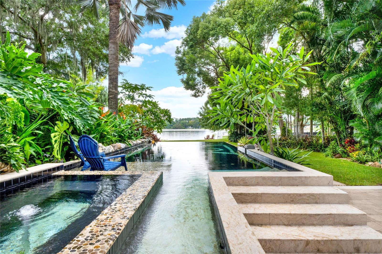 Discover a slice of paradise with this meticulously maintained lakefront home, nestled on nearly an acre of lush, private grounds. This stunning property offers an unrivaled island oasis experience, combining elegance with tranquility. The residence boasts a sleek, infinity-edge pool that seamlessly blends with the shimmering lake, creating a breathtaking visual spectacle and an ideal spot for both relaxation and entertaining. The meticulously landscaped grounds feature serene water views and provide ample space for outdoor living. Inside, the home is designed with impeccable attention to detail, ensuring every comfort and convenience is catered to. You will find that there has been no shortage of upgrades and maintenance in this home, from the pool equipment to A/C's, roof and extra insulated walls. This is more than a home; it’s a private retreat where every day feels like a vacation.