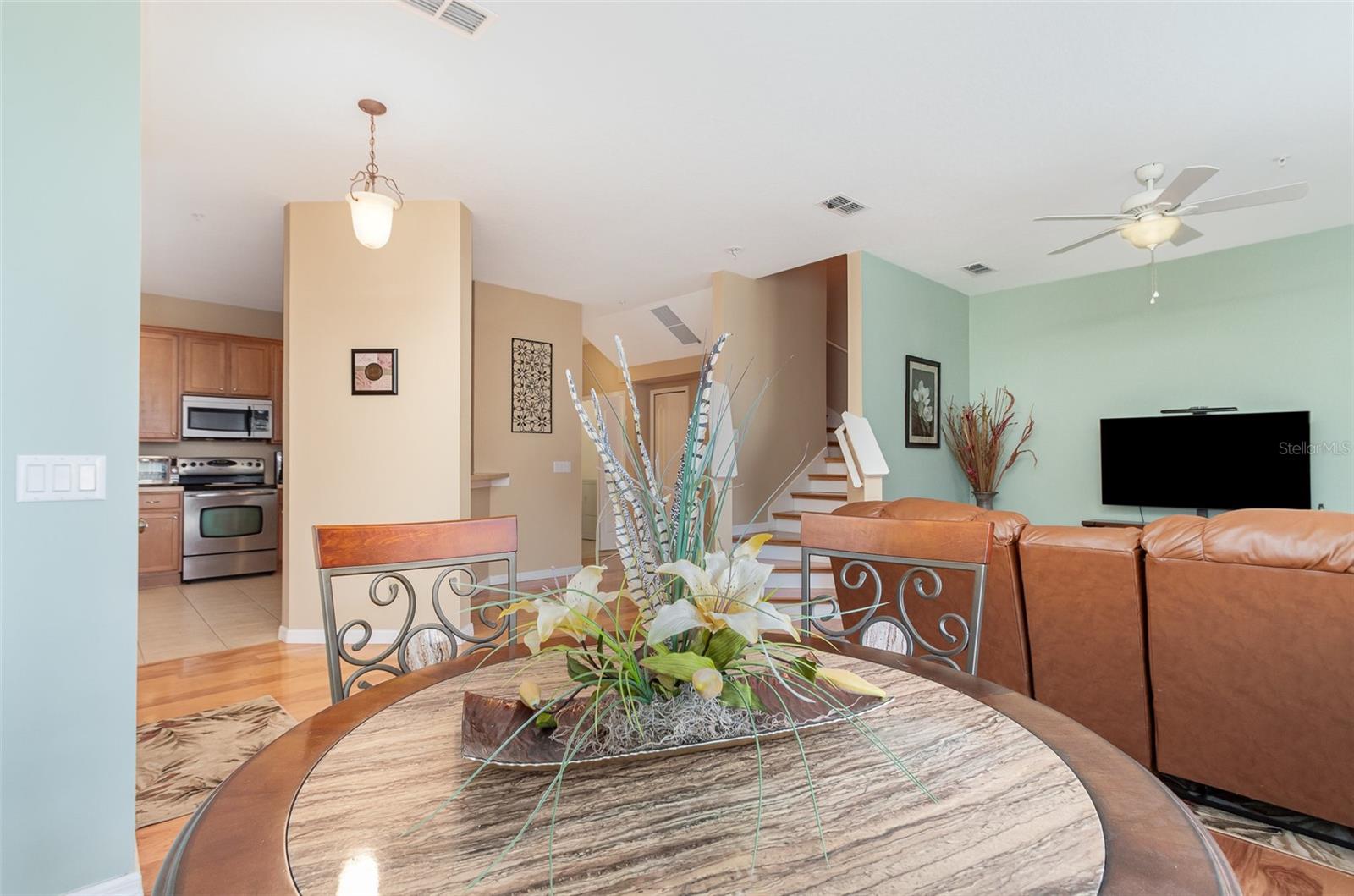 Enjoy the charm and tranquility of the tree-covered entry to this well-maintained 3-bedroom 2 1/2 bath condo located in the gated community of Overlook at Parkside. The home's townhouse style and setback location afford privacy and green space with plenty of room to enjoy the outside shaded areas and walking trails. Upon entering the home, you notice the light colored engineered hardwood flooring and volume ceilings, all of which enhance the spacious open floor plan; a great place for entertaining. The kitchen has ample cabinet and counter space, even has a breakfast bar for your quick meals or you can enjoy the dining area with views of the outdoors. Upstairs, the primary suite is situated to one side of the home, affording you privacy with its recently upgraded dual vanity sinks and walk-in shower separate from the two guest bedrooms and their bath area. Exclusive community amenities include cable TV, high-speed internet, pest prevention, exterior maintenance, and a beautiful oasis-style pool. With great access to Orange Blossom Trail and the 429, it will make an easy commute to work. Come and enjoy the maintenance-free lifestyle that Overlook at Parkside has to offer; schedule your visit today.