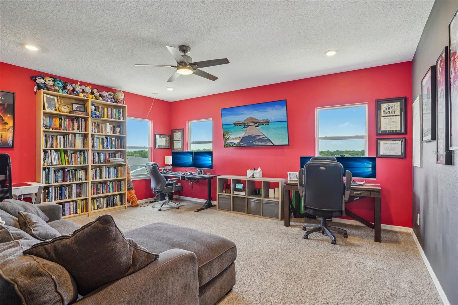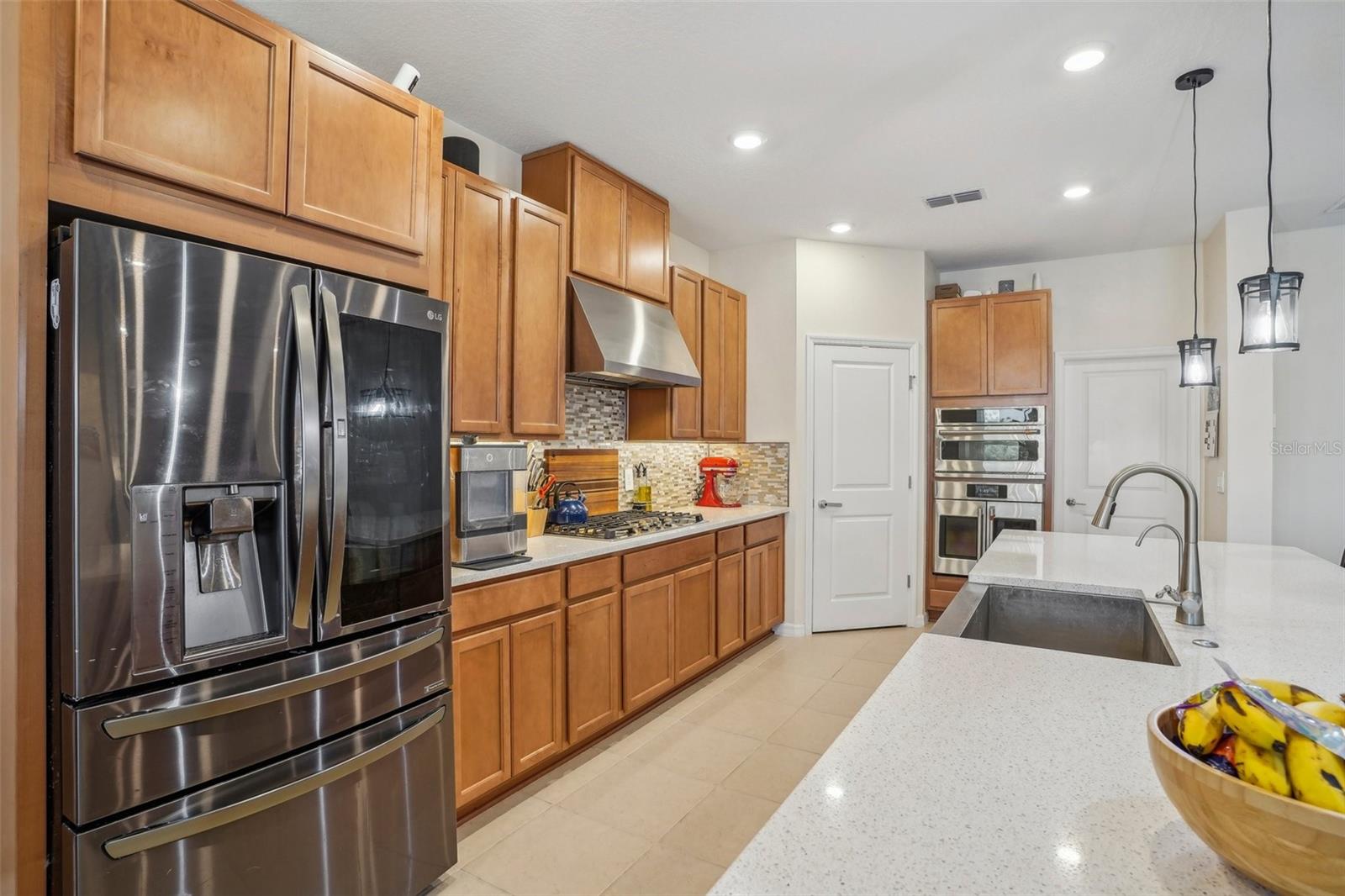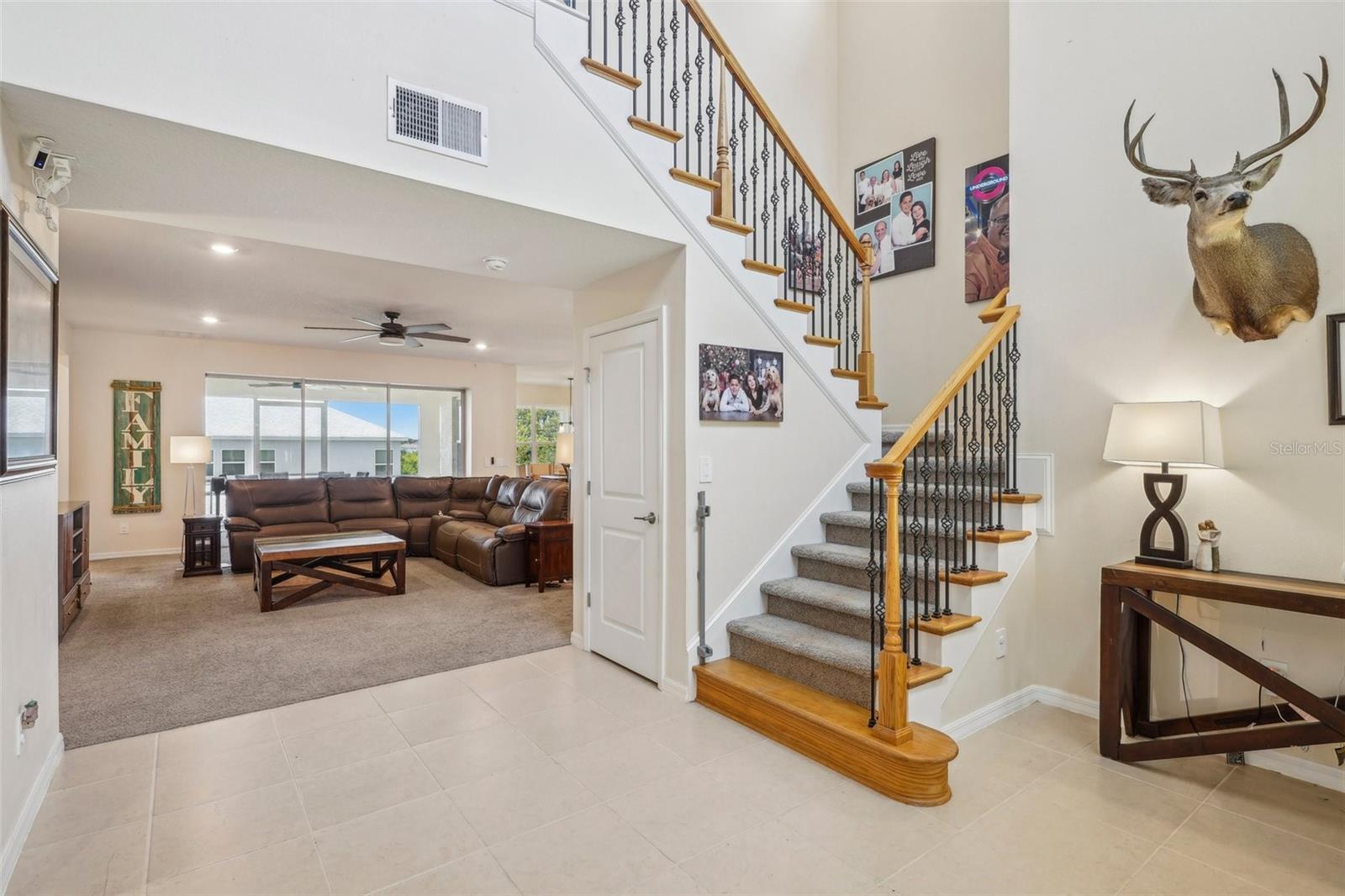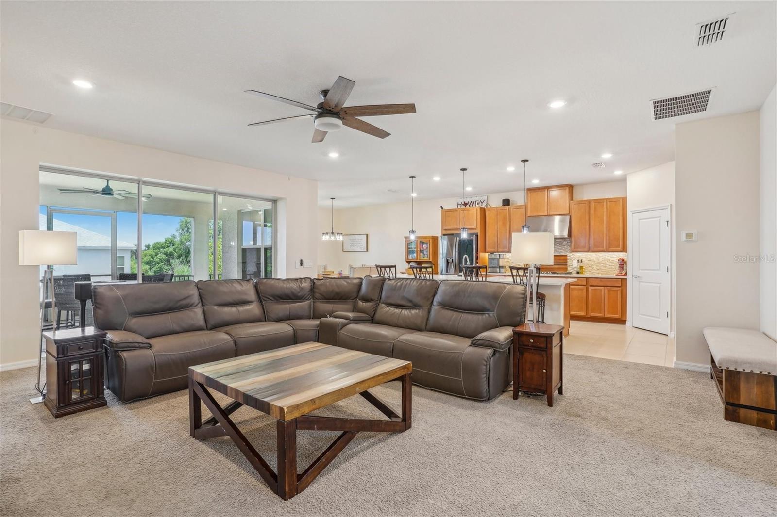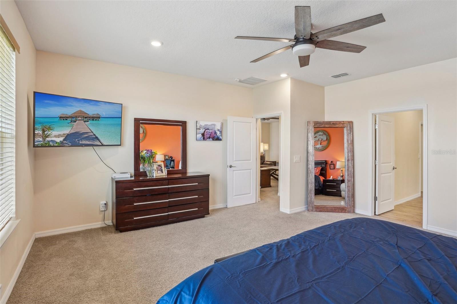 New Price reflects our changing market! Welcome to the desirable gated Lakeside Community of Apopka, located on Marshall Lake with a community dock for residents to enjoy serene sunset views. This spacious 5-bedroom, 4.5-bath home features a downstairs primary suite with a luxurious bath that includes a garden tub (pre-wired for spa upgrade), a rain shower head, and dual detachable shower heads. The custom closet cabinetry in the primary suite adds a touch of elegance and convenience. The heart of the home is the gourmet kitchen, complete with smart stainless steel appliances—including a French door oven, combo convection oven/microwave/air fryer, gas cooktop, and French door refrigerator—plus a large breakfast area for casual dining. A generous foyer welcomes you in, leading to a bright living room with three sliding glass pocket doors that fully open to a screened lanai, creating seamless indoor-outdoor living. Downstairs also features a private guest bedroom and full bath, perfect for multigenerational living or visitors. Upstairs, three additional bedrooms each have walk-in closets; one has a private en-suite bath, while the other two share a thoughtfully designed hall bath with a double vanity and private shower/commode area. The expansive flex room offers endless possibilities—home gym, game room, classroom, or office—and a cozy loft provides additional lounge or study space. The fully fenced backyard with dual side gates ensures privacy and functionality. The 2-car garage is wired to install 50-amp Electric Car chargers. Numerous infrastructure upgrades have been made (see attached list). With quick access to SR 429 and 414, you're less than 30 minutes from Maitland, Downtown Orlando, and major attractions.