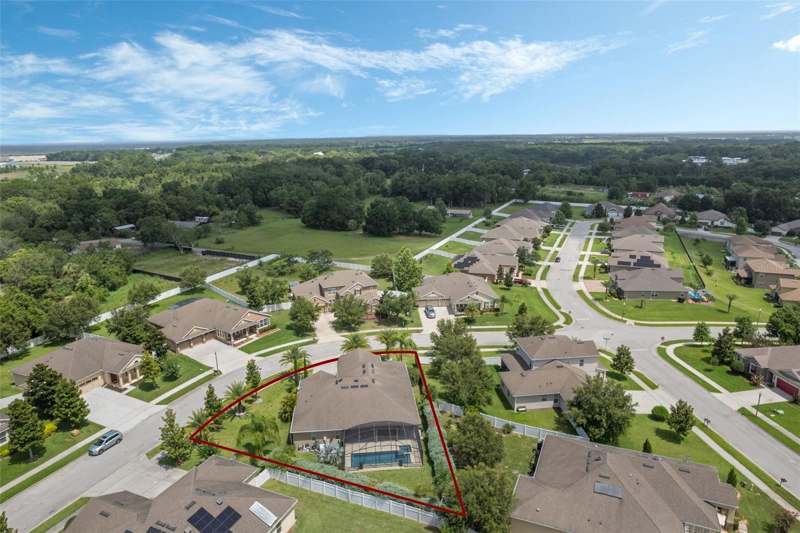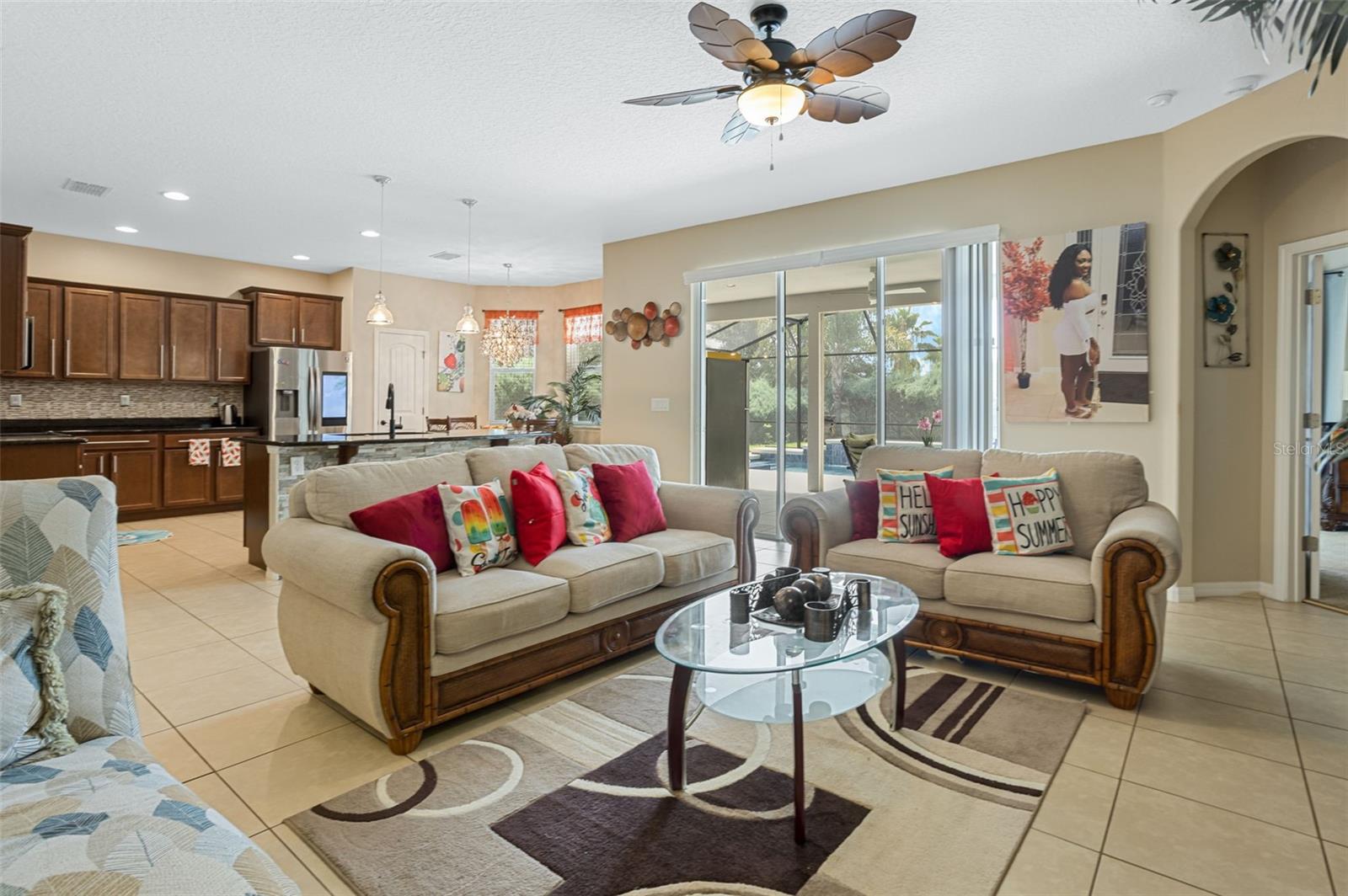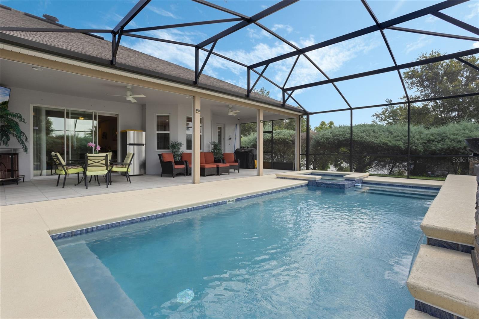 Nestled among the rolling hills and mature trees of sought-after Chandler Estates in Apopka, this beautifully upgraded home blends timeless Florida charm with modern comfort—all just minutes from the new SR-429 interchange and Hwy 441. Set on a spacious 0.33-acre corner lot, this 4-bedroom, 3-bath home welcomes you with manicured landscaping, a charming covered front porch, and an expansive screened-in lanai with a private pool—perfect for relaxing afternoons or weekend entertaining. Inside, natural light pours through large front windows, highlighting an open-concept layout with wide arched hallways, 18'×18' tile in main living areas, and hardwood floors in the formal living and dining rooms. The heart of the home is the gourmet eat-in kitchen, featuring level-3 42" cabinets with crown molding, granite countertops, a tile backsplash, stainless-steel appliances, a flow-through island with seating, breakfast nook, and a butler’s pantry. The spacious family room offers built-in cabinetry and easy access to the pool area, making indoor-outdoor living seamless. The enlarged master suite is a luxurious retreat with bamboo wood flooring, tray ceilings, a spa-like bath with soaking tub, separate shower, and generous closet space. Additional Features & Upgrades Include: Private screened pool with sun-isolation system, over $70K in builder upgrades, upgraded decorative lighting throughout, 2-car garage with automated attic cooling system and added insulation, Builder warranty still in effect. Community amenities: playground, basketball court & bike trail. Come experience the tranquility of Chandler Estates, where upscale living meets the beauty of nature. Schedule your private tour today!