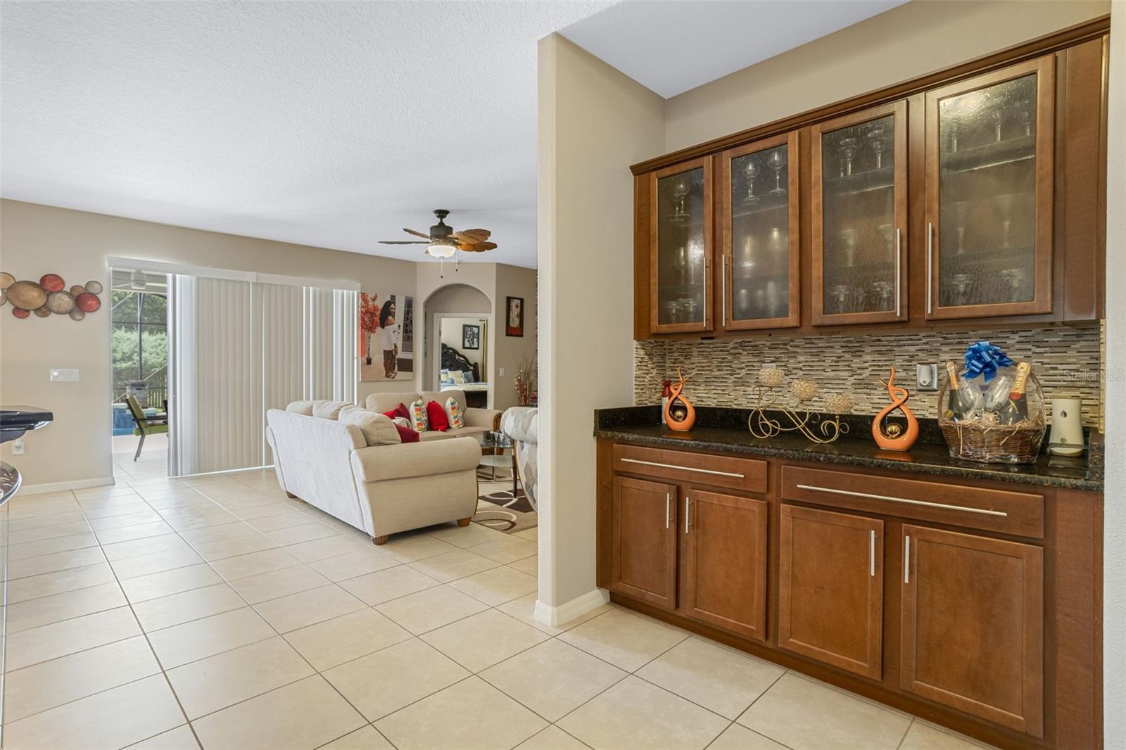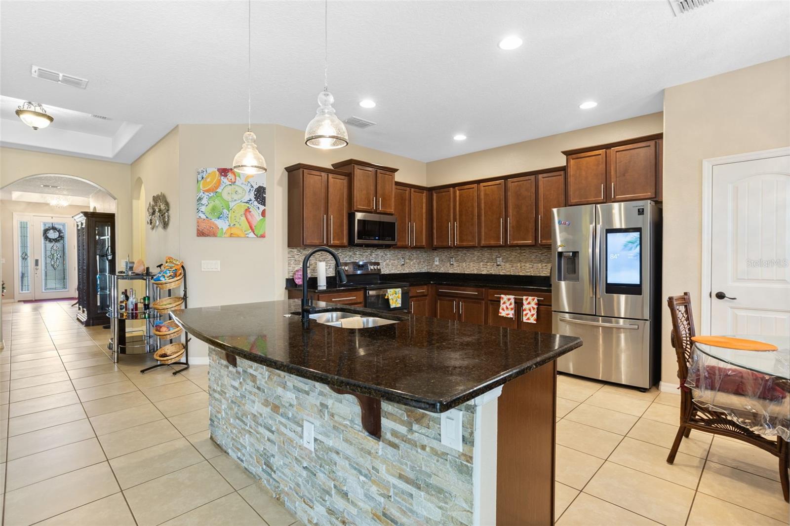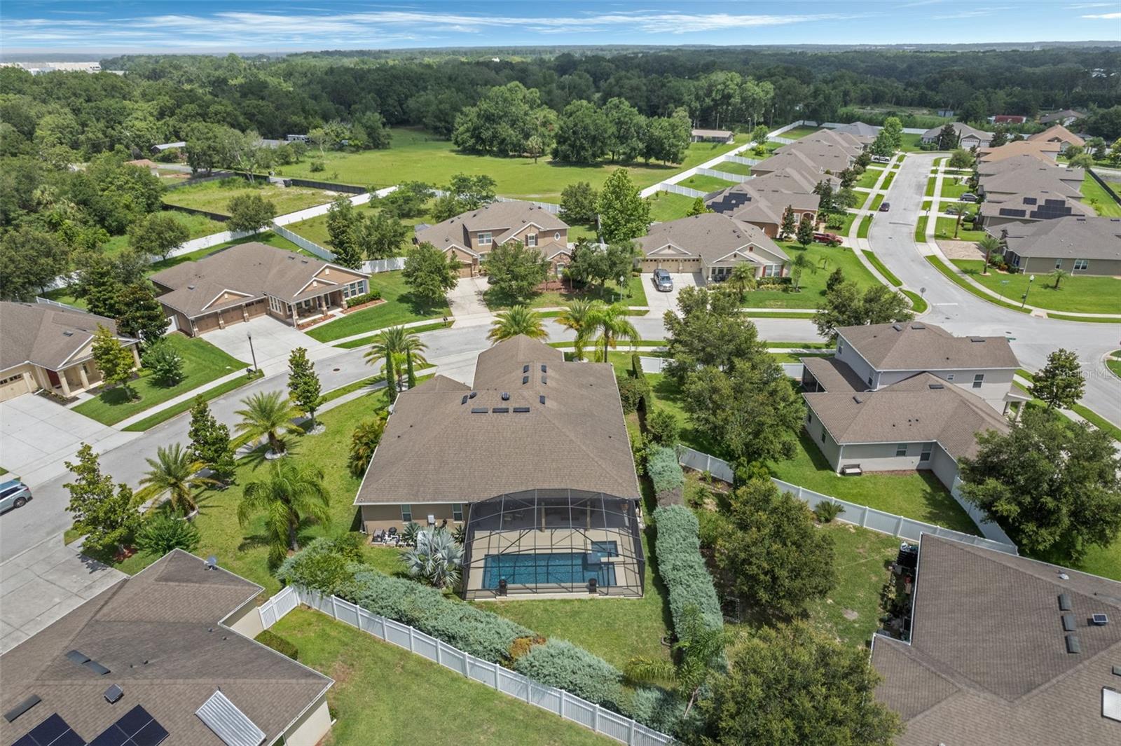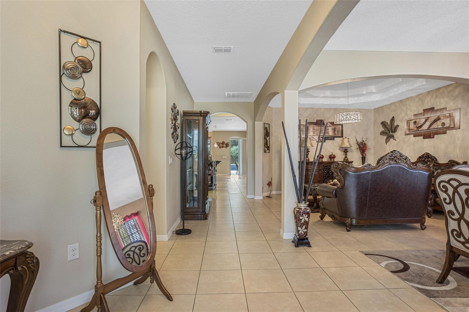 Nestled among the rolling hills and mature trees of sought-after Chandler Estates in Apopka, this beautifully upgraded home blends timeless Florida charm with modern comfort—all just minutes from the new SR-429 interchange and Hwy 441. Set on a spacious 0.33-acre corner lot, this 4-bedroom, 3-bath home welcomes you with manicured landscaping, a charming covered front porch, and an expansive screened-in lanai with a private pool—perfect for relaxing afternoons or weekend entertaining. Inside, natural light pours through large front windows, highlighting an open-concept layout with wide arched hallways, 18'×18' tile in main living areas, and hardwood floors in the formal living and dining rooms. The heart of the home is the gourmet eat-in kitchen, featuring level-3 42" cabinets with crown molding, granite countertops, a tile backsplash, stainless-steel appliances, a flow-through island with seating, breakfast nook, and a butler’s pantry. The spacious family room offers built-in cabinetry and easy access to the pool area, making indoor-outdoor living seamless. The enlarged master suite is a luxurious retreat with bamboo wood flooring, tray ceilings, a spa-like bath with soaking tub, separate shower, and generous closet space. Additional Features & Upgrades Include: Private screened pool with sun-isolation system, over $70K in builder upgrades, upgraded decorative lighting throughout, 2-car garage with automated attic cooling system and added insulation, Builder warranty still in effect. Community amenities: playground, basketball court & bike trail. Come experience the tranquility of Chandler Estates, where upscale living meets the beauty of nature. Schedule your private tour today!