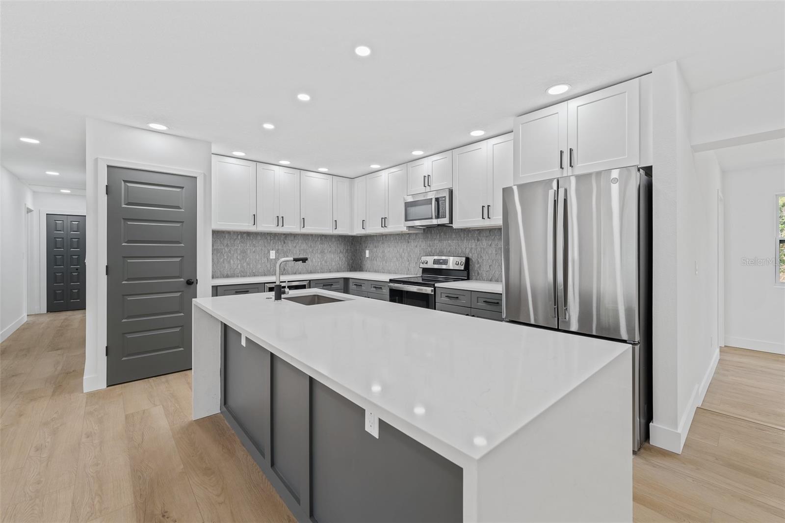 Welcome to a beautifully renovated retreat nestled on a .46-acre corner lot overlooking the serene waters of Bear Lake. This home has been transformed into a spacious 4-bedroom, 2-bathroom sanctuary complete with an office and a dining room. An appraisal was conducted and confirms a value of $505K, avaialble upon request. Enjoy stunning, unobstructed views of Bear Lake facing the association's picnic area on the lake. Extensively renovated down to the studs, this home boasts the following BRAND-NEW FEATURES: Water Well, A/C handler, A/C unit, A/C ductwork, plumbing, electrical system, electrical box, tankless water heater, and a NEWER Roof (2023). This home was created and designed for the ultimate in family engagement and entertainment in mind. Featuring an open concept that leaves everything at your fingertips. The HUGE Island Kitchen sets the stage for a thoughtfully RENOVATED experience to enjoy your New Wine Fridge, New Oven, New Refrigerator, New Dishwasher, New Granite Composite Sink, All New Windows, All New Doors, All New Closet Doors, All New Exterior and ALL New Interior Paint. Upgrades Include: Quartz Countertop, Solid Wood Construction Shaker Cabinets with Soft Close Doors & Drawers throughout, Chef’s Kitchen, Dual Zone Climate Control Wine Fridge, Stainless Steel Appliances, Recessed LED Lighting throughout, Porcelain Tile in Bathrooms, & Luxury Vinyl Planks throughout the entire home. Enhancements include a new 4th bedroom, a new dining room, and a new office, providing ample room for work and relaxation. The immense potential this home provides, situated just one street away from multi-million dollar Bear Lake front properties, offers exceptional value at a fraction of the cost. The property also offers the flexibility to expand further by possibly adding a pool and/or mother-in-law suite onto the huge backyard. The possibilites are endless in this FUN LAKE HOUSE with the amazingly convenient distance of just a .1 mile to the private Bear Lake boat ramp, accessible annually for $130, is perfect for water enthusiasts & Lake Life seekers! This meticulously renovated home combines modern comforts with prime lake life living, presenting a rare opportunity to own a piece of tranquility in sought-after Seminole County.