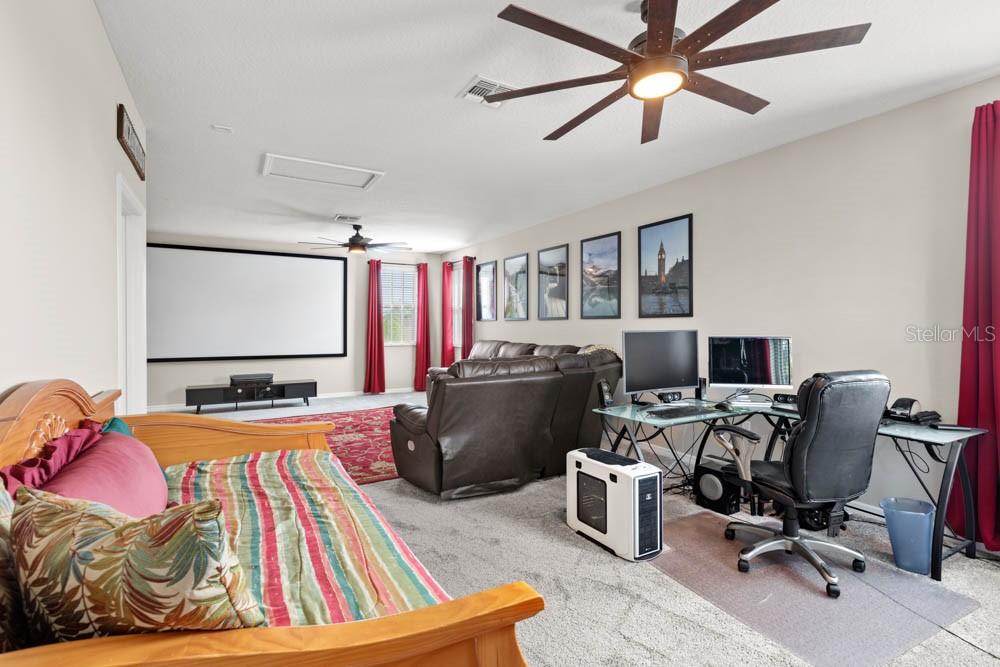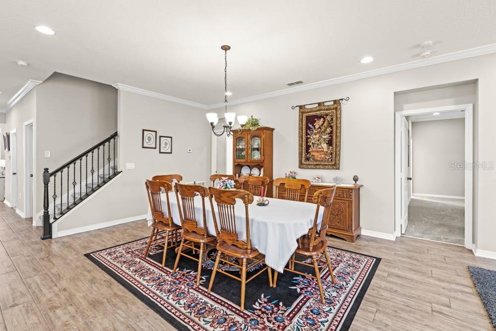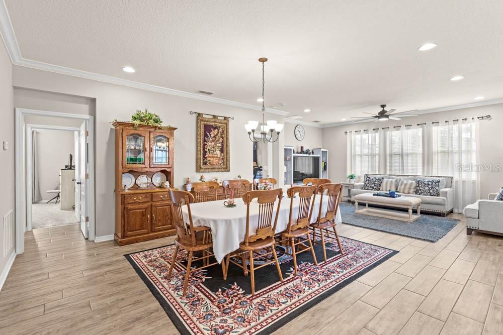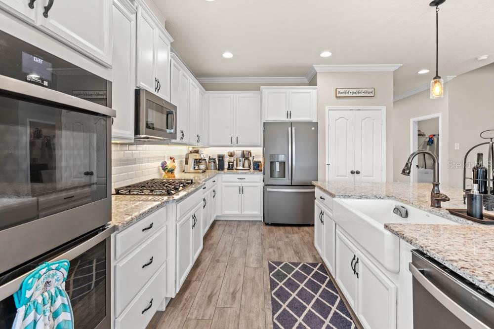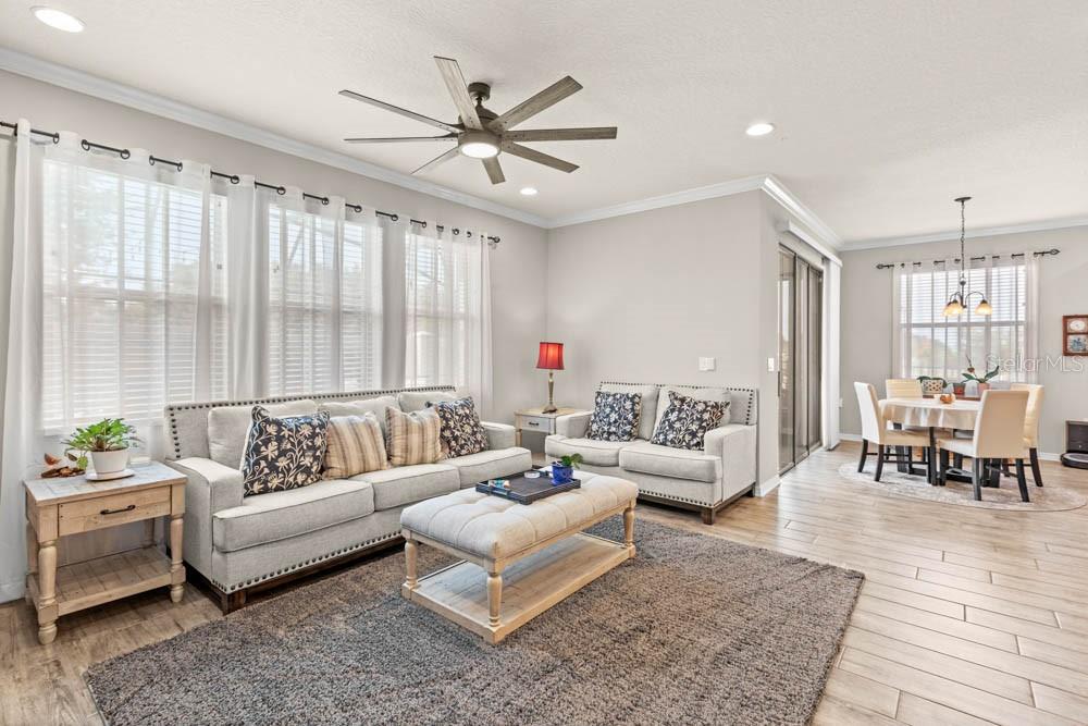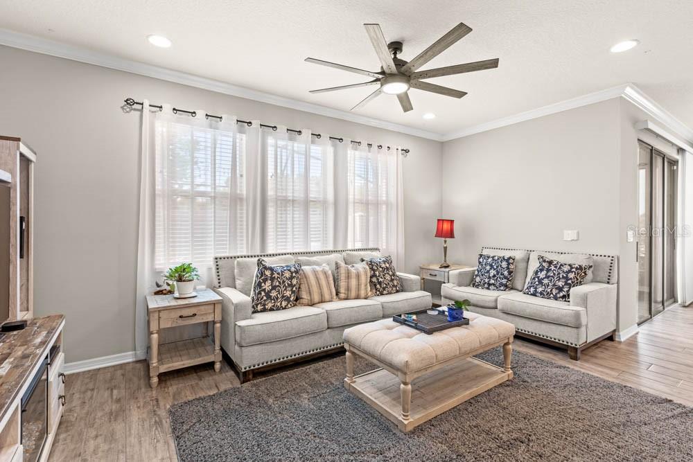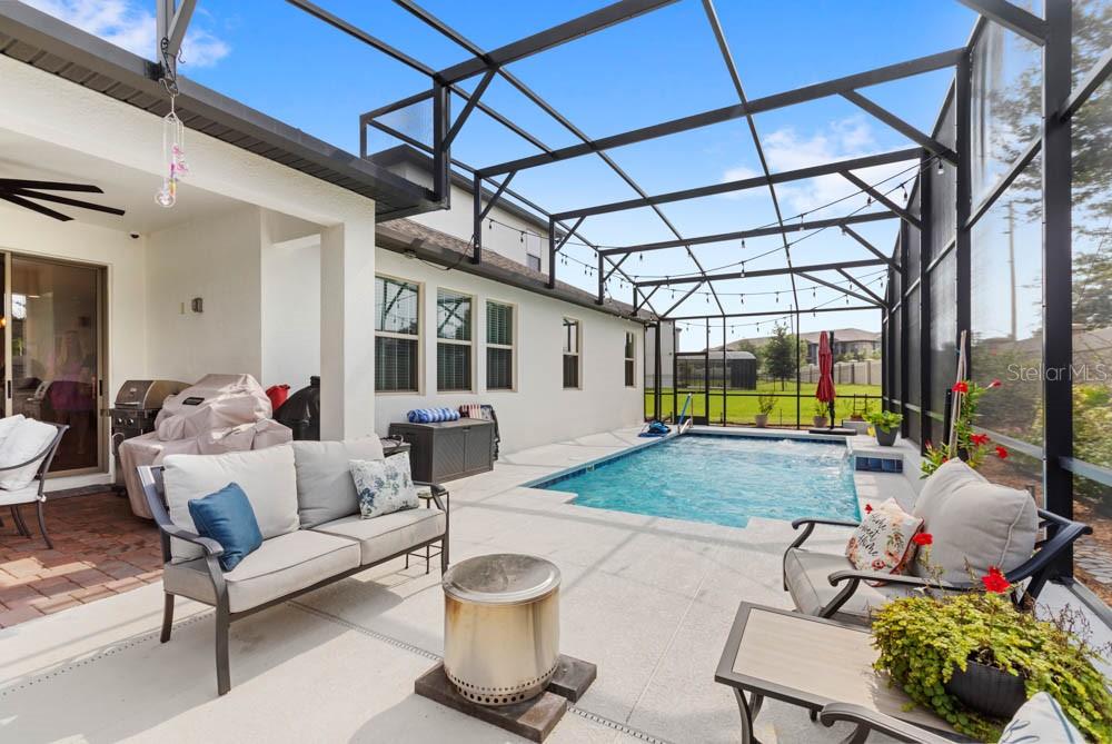 Welcome to 2367 Santa Vista Loop! This upgraded and tastefully designed pool home was built in 2020 by MI homes. It is situated in the exclusive gated community of Vistas At Waters Edge, on the shores of Lake Apopka. The home boasts 3100 square feet, oversized garage, 3 dedicated bedrooms, a flex space, an upstairs loft and 4 full bathrooms. The elevation of the home has an oversized and expansive covered front porch, complete with pavers and lush landscaping. Through the front door, the home opens to soaring ceilings, wood plank tile and views into the open concept great room. The home is comprised of a 3-way split floor plan. At the front right of the home is the first guest bedroom with a full bathroom situated directly next to it. Past the first guest bedroom is the flex space, which is ideal for a home office or secondary living room. Into the great room, the living and entertaining spaces blend seamlessly. The open concept kitchen is complete with a large over-sized island, stainless slate appliances and a natural gas cooktop. The kitchen is a gourmet style kitchen layout, with more upgrades than what come with the builder. In this open concept great room space is also where the breakfast nook, formal dining room and living room is located. Past the dining area is guest bedroom 2, with another full bathroom. A door was added to this space is make it a private in-law style suite. It’s great for privacy and is conveniently situated off of the kitchen. The back left of the home is where the expansive primary bedroom is located. The primary bedroom is oversized, flooded with natural light, features large windows overlooking the pool and has an oversized primary en-suite. Upstairs is the loft, complete with a custom bar for entertaining. This space is being used as a bonus, however with the 4th full bathroom upstairs and the large space upstairs, this could easily double as another bedroom with flex space. The home has so much to offer, including a custom private pool in the back yard with a covered lanai and a screened-in lanai. The pool is complete with expansive deck space and a large sun shelf, plus custom water features. The community offers its own amenities, complete with a clubhouse, community pool and playground. Plus, the home is conveniently located to Wekiwa Springs State Park and Magnolia Park. The home is also near the 429 connector, offering easy access to Disney, MCO airport and downtown Orlando. All of the builder warranties are transferable for this home! Call today to schedule a private tour.