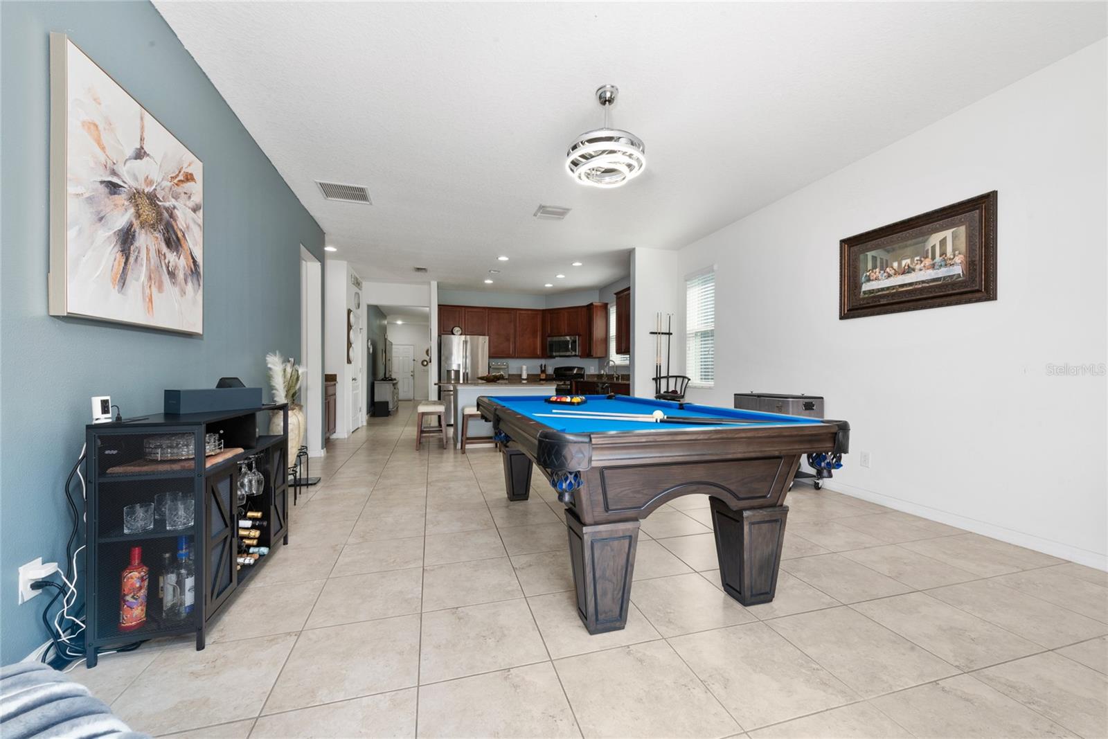 Discover this beautifully updated 3-bedroom, 2-bathroom home, with 2 car garage offering approximately 1991 sq. ft. of stylish living space. With no CDD fees and a low HOA, this home provides the perfect blend of comfort and value! The master bedroom features has an ensuite bathroom with a walk-in shower and dual sinks and a substantial walk-in closet. The floor plan offers a huge great room where you can share a good family time , the first 2 bedrooms at the front of the house giving the master suite its own privacy. This home has been well-maintained, the roof, water heater, HVAC system, and appliances are just eight years old, beautiful upgrade brown cabinets and a nice and practical granite kitchen Island. The kitchen has a walk-in storage with a plenty space for your groceries, and if you walk to the back yard you will see a nice paver slab offering you a perfect space to put a BBQ and enjoy the time with family and friends .This home is conveniently located close to Disney, shopping, airport and all main attractions. Schedule you're viewing today! Don't miss out on this opportunity. won't lat long. Seller is motivated to sell come and schedule a showing it is a good opportunity to have your dream home.
