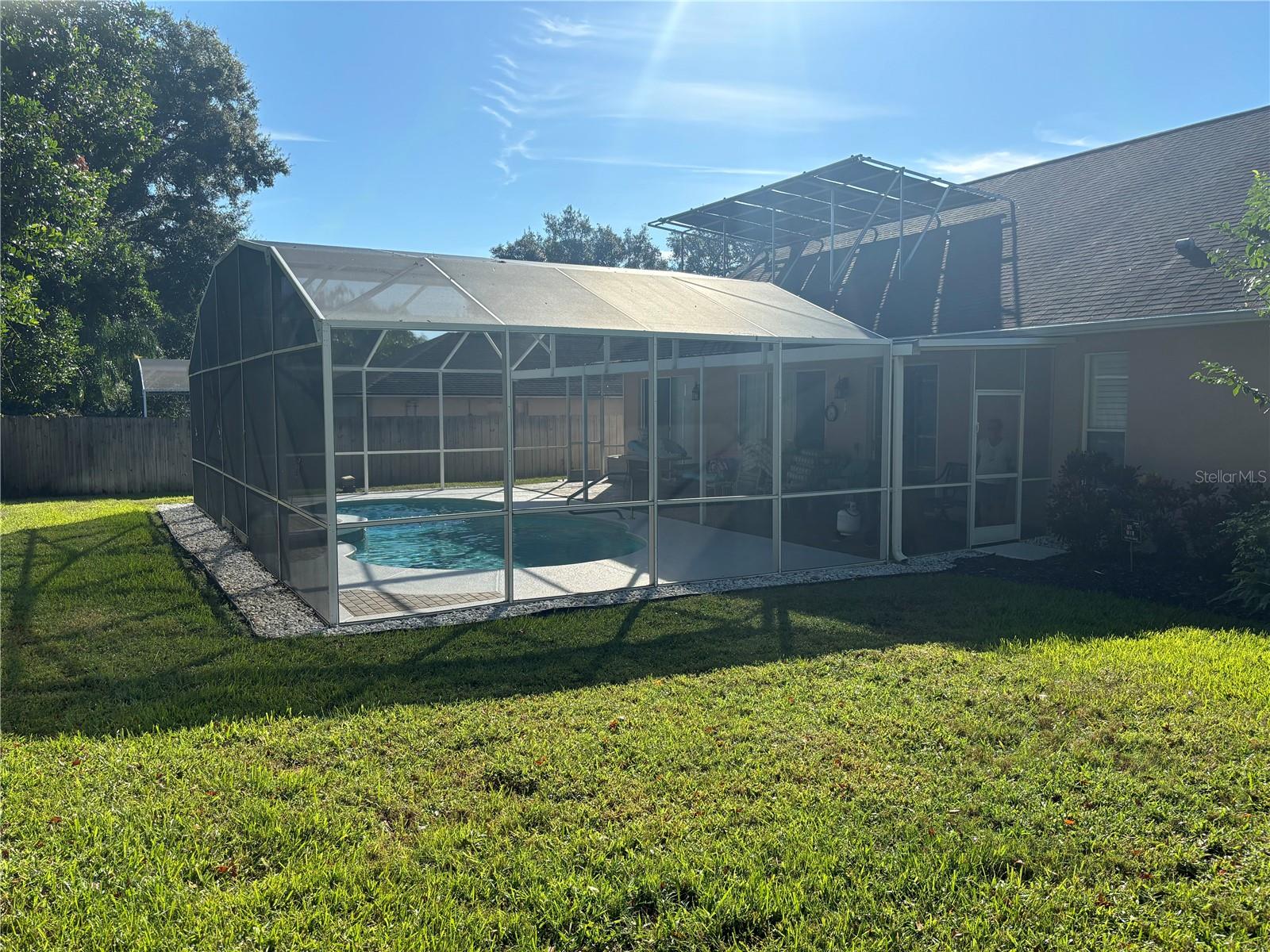 Beautiful 3/2 pool home. This home offers a wonderful split plan layout, solar heated pool, and has been beautifully maintained. Planation shutters, high ceilings and open floor plan are just a few of the many features offered. 2nd bathroom offers oversized tub. Primary bath has a walk-in tub for accessibility.