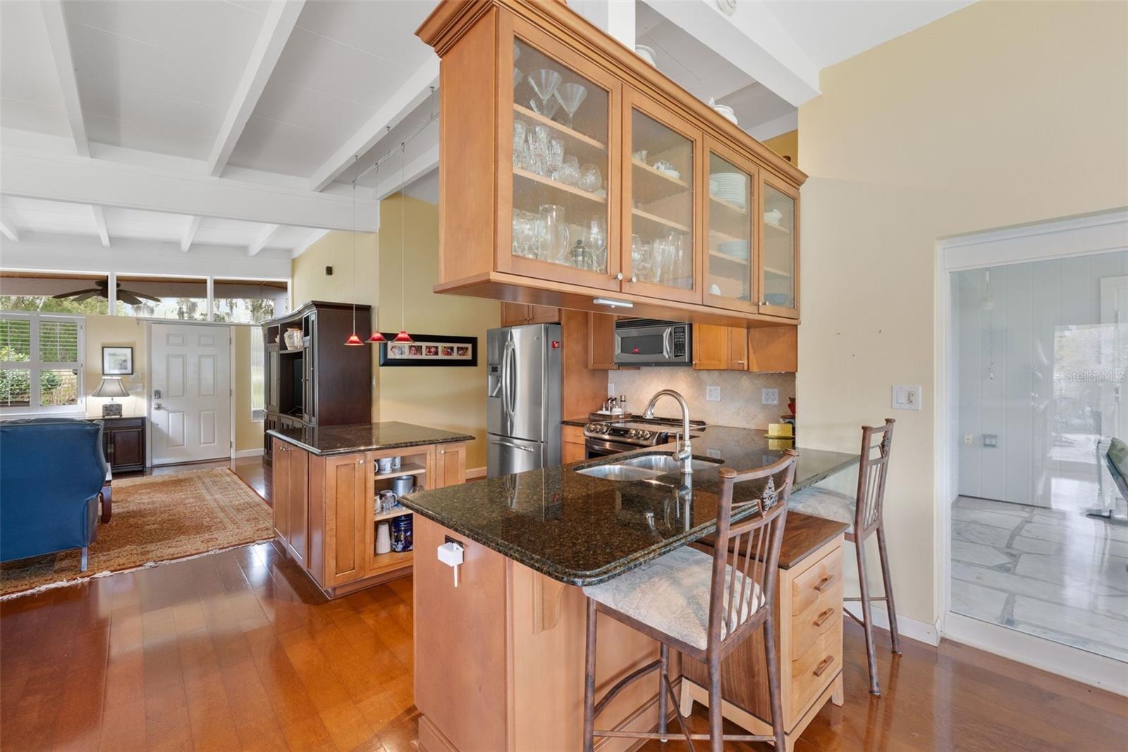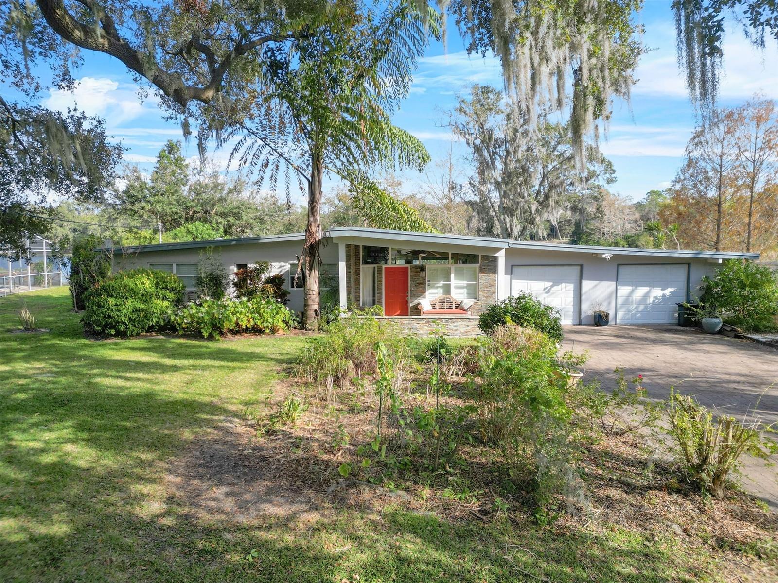 RARE OPPORTUNITY: LAKEFRONT HOME! This one-of-a-kind Mid-Century Modern residence from the 1950s is nestled at the end of a cul-de-sac and boasts stunning panoramic views of Mirror Lake. You’ll be welcomed by a charming covered front porch featuring a custom tongue & groove ceiling and elegant stonework. Step inside to discover a cozy family room that invites relaxation and warmth! The kitchen seamlessly flows into the dining area, offering open views of the lake through beautiful fixed glass windows, complemented by a breakfast bar. The sunroom is the perfect place for birdwatching and wildlife sightings! Retreat to the owner's suite, located at the back of the home, where you can unwind in an extended sitting area while soaking in more breathtaking lake views. Outside, enjoy two screened patios that provide the ideal setting for sipping your morning coffee as you watch the sunrise! This property boasts extensive lake frontage on the sparkling Mirror Lake, complete with its own private dock. The lake spans 32 acres, perfect for paddle boarding or kayaking. The spacious backyard offers ample space to create your own serene oasis while soaking in 270 degrees of water views. Additional features of the home include hardwood floors throughout and stainless steel appliances. This prime location is conveniently situated near shopping, grocery stores, highways, and more! Zoned for Seminole County Schools. NEW AC 2025 outdoor condenser! Don’t let unique property slip away! Schedule your personal tour of this tranquil home and embrace the charm of lakefront living!