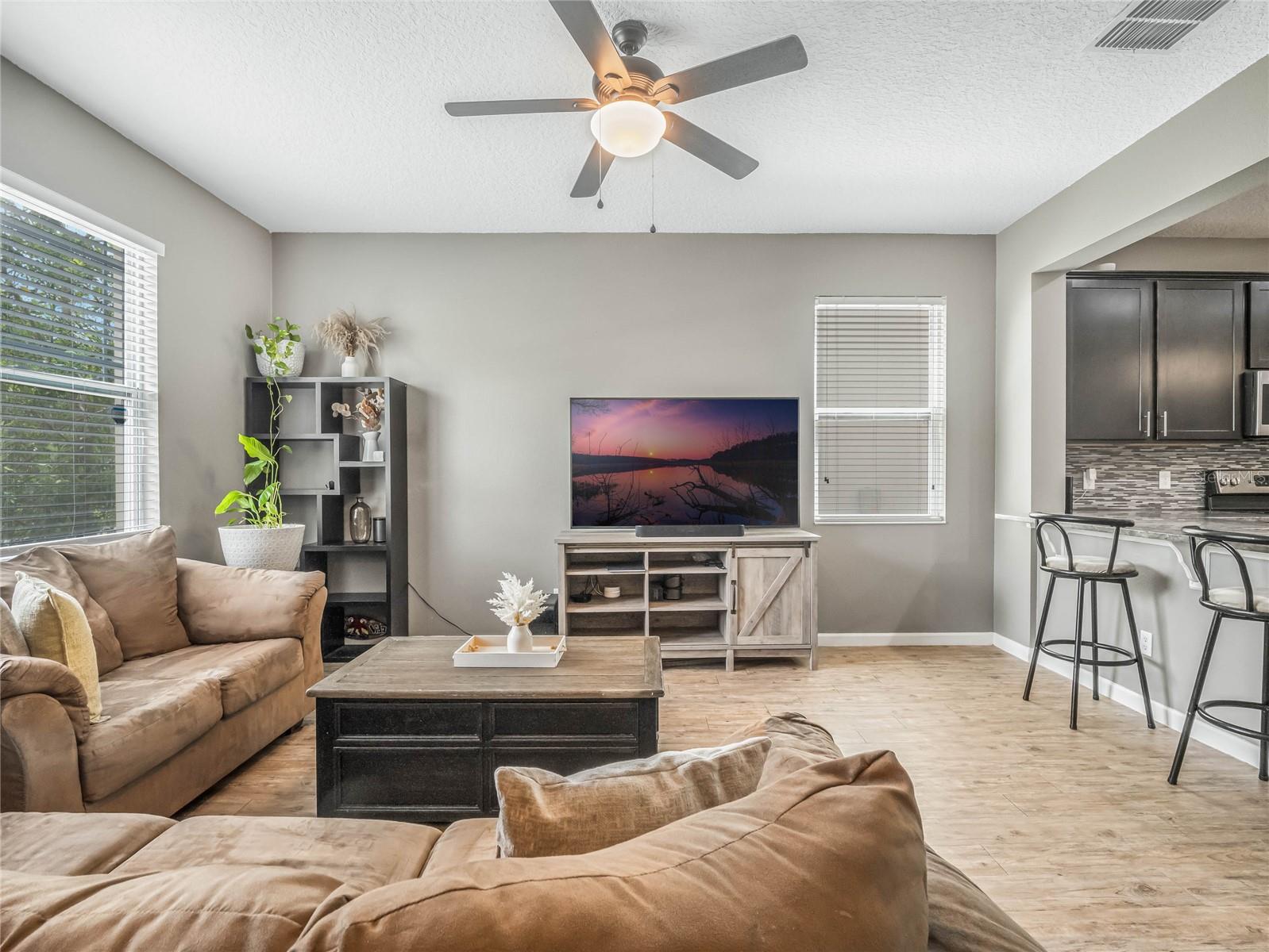 Experience all the benefits of an Apopka new build, without the wait times of new construction! This is 2423 Liner Ave, a charming bungalow offering 4 spacious bedrooms, 2.5 bathrooms WITH a loft. Upon entering, you'll be greeted by an open layout featuring a generous living room that seamlessly connects to the kitchen and dining area, and luxury vinyl plank throughout. The kitchen is equipped with a breakfast bar, island, stainless steel appliances, 42" dark espresso cabinets, granite countertops, and a beautiful backsplash. You'll also find a roomy pantry, ample storage, and a convenient guest bath, perfect for entertaining family and friends. The downstairs flex space was converted into a bedroom, which is perfect for guests, or can easily be used as a home office. Upstairs, a cozy yet expansive loft awaits, ideal for relaxation or setting up a second office space. The primary suite is a true sanctuary, boasting tray ceilings, two walk-in closets and a luxurious bathroom with a soaking tub, standing shower, and double sinks. The two additional bedrooms are located on the second floor, each offering generous space and their own walk-in closets. Experience the best of Florida living with a lanai, perfect for morning coffee or evening unwinding. The laundry room is conveniently located upstairs, and offers an abundance of space. The community features excellent amenities, including a community pool, playground, and generously sized dog park for your furry friends. HOA fees cover the landscaping of the front and back, making upkeep a breeze! Parking is easy with a rear-facing 2-car garage and ample street parking. Plus, you're conveniently close to the Orange Trail for outdoor adventures and all the exciting new developments Apopka has to offer! Apopka has seen tremendous growth, and this could present a great future opportunity! With easy access and minutes from the 414 and 429, commuting is a breeze. Don’t miss out on this gem!