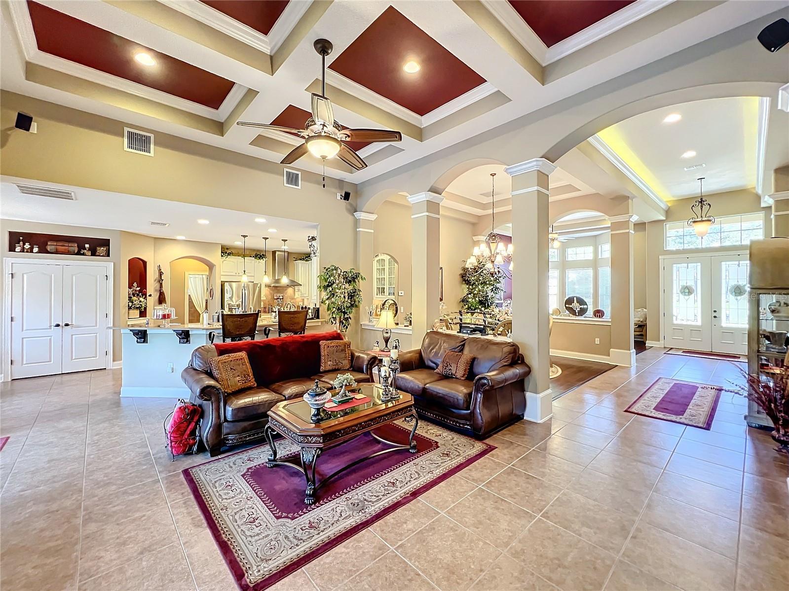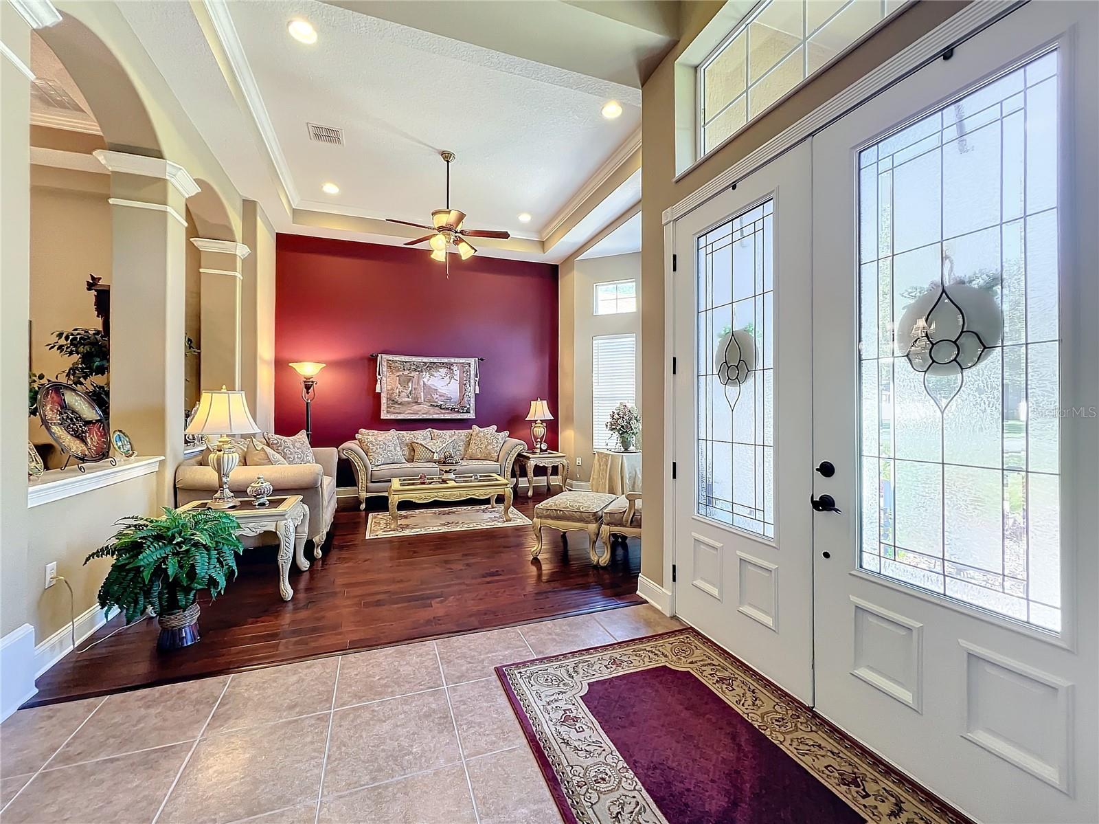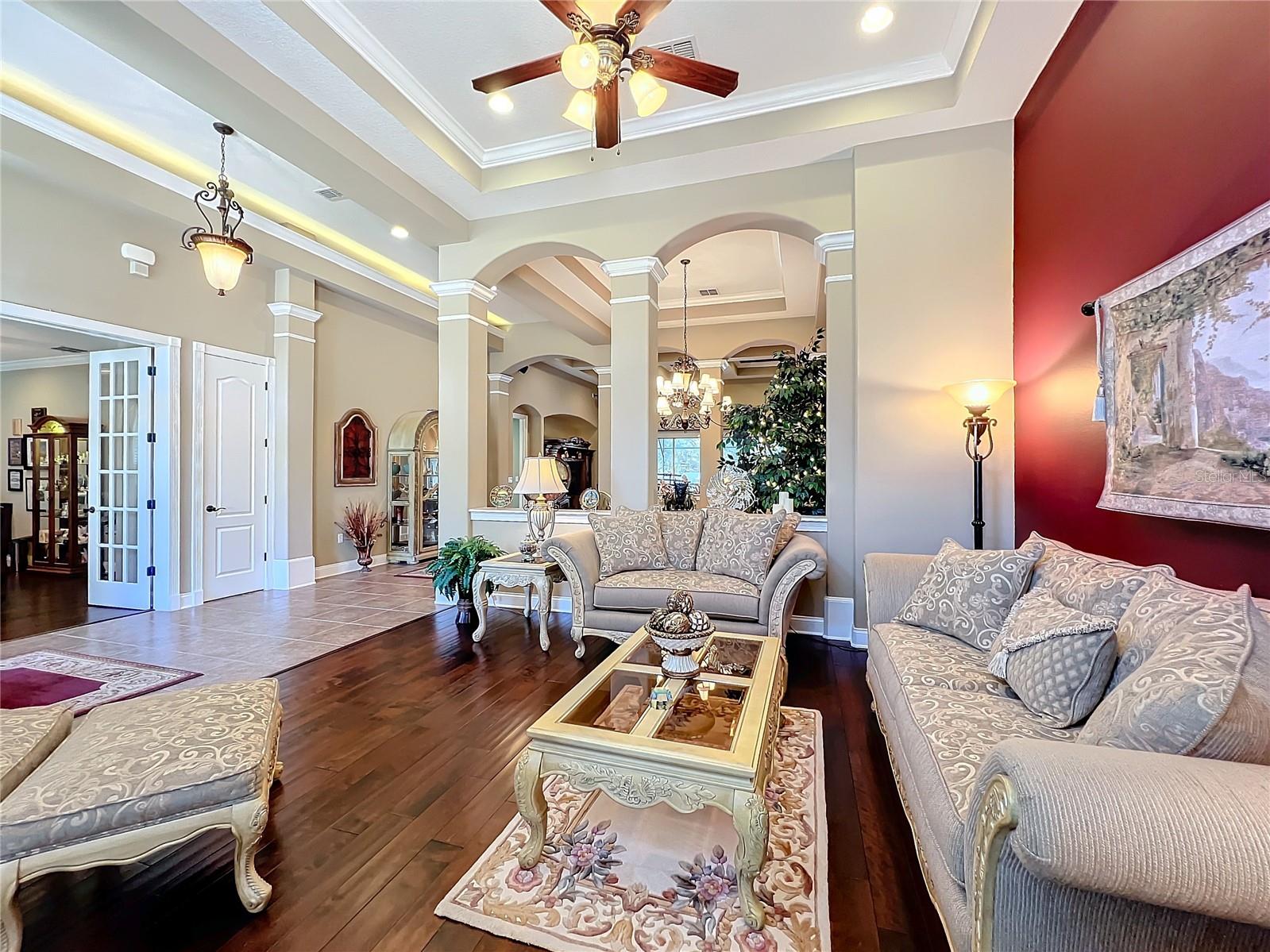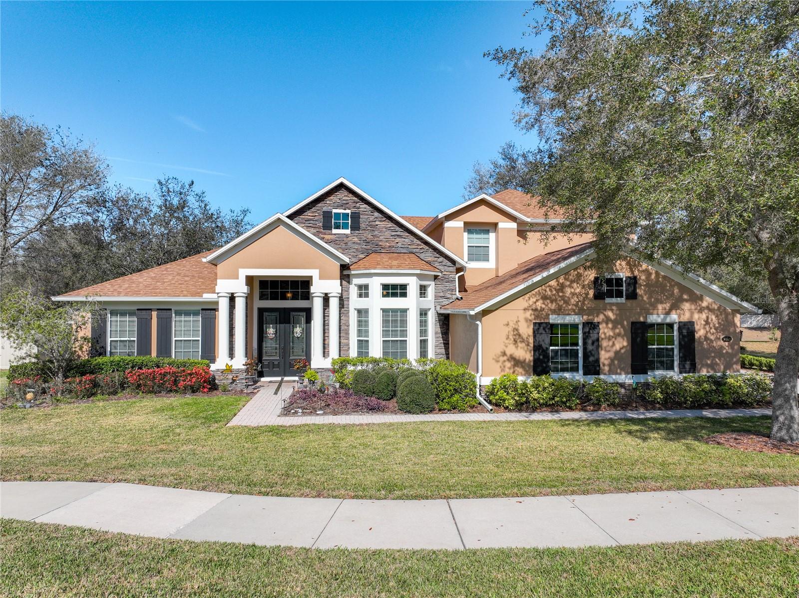 Price Improvement! Experience Luxury Living in this meticulously cared for one owner home in the Gated Wekiva Run Community. The home is situated on .40 acres, with No Rear Neighbors! The Owners added over $74,000 in upgrades when they were having the home constructed, which makes this a one of a kind special property. This pristine 4 Bedroom, 4 Bath, Pool home is Move In Ready and waiting for you and your family. As you enter the brick paver driveway you can see the care taken by the Owners to its exterior and landscaping. But that is only the beginning. Upon entering the upgraded double doors you are welcomed by 13 foot box ceiling, extensive crown molding, accent lighting, oversized door casings and baseboards. To your right is a Formal Living room with Hardwood flooring. On your left is the Office/Library with glass French Doors, Hardwood Flooring, Crown Molding and a built in workstation. The separate Dining Area has Hardwood Flooring, a gorgeous chandelier, can accommodate a formal Buffet and 6-8 persons. The spacious open family room features a coffered ceiling, crown molding and surround sound system to set the mood for entertaining guests with music or watching Television. The Gourmet Kitchen is spacious with a Prep Area Veggie Sink, Butler Pantry, Breakfast Bar, Stainless Appliances, and a Nook to relax and enjoy a a quiet meal. The Lanai Area is oh so flawless, with a pool and spa, brick pavers, perfect for outside entertainment or just quiet time. Downstairs there are 3 Bedrooms. The Primary Bedrooms separate to itself with Hardwood Flooring, Crown Molding and can comfortably support the largest furniture, including a sitting area for personal reading or to meditate after a long day. The Primary bathroom has a beautiful octagon design with accent lighting, a separate shower and tub, dual vanities, dual walk in closets and is almost as large as the bedroom. On the other side of the house are Bedrooms 2 and 3, which are oversized and have their own Ensuite bathrooms. There is more! Upstairs is a Theatre Room, separate bonus Room and a 4th oversized Bedroom with its ensuite bathroom. I could go on and on, but schedule a showing to see this elegant property for yourself and make it yours for you and your family! Items that convey include the following: Home Theatre Chairs, 110 inch screen, Popcorn machine, Bonus Room Sectional, 3 in 1 Game Table, 55 inch TV, Sound Bar System, Family room Entertainment Center, Surround Sound Speakers, and 65 inch TV. Recent Updates: roof 2021, Screen Enclosure 2021, Gutters 2021, Exterior Paint 2021, Kitchen Cabinets Professionally Painted in 2022, Laminate Flooring in 3 Bedrooms and Bonus Room in 2020, Wood Stair Treads in 2020. Property also includes 1 YEAR HOME WARRANTY! HOME THEATRE ELECTRONIC SOUND SYSTEM DOES NOT CONVEY! Close proximity to Highway 429, Grocery Shopping, and Apopka Amphitheatre and Sports complex.