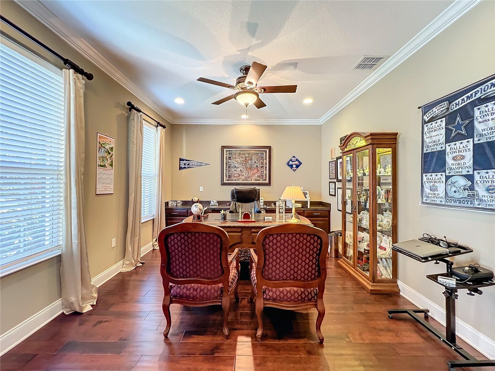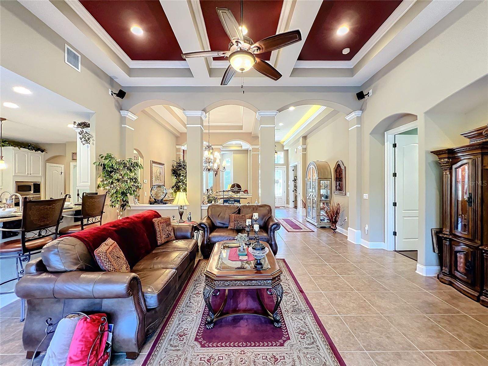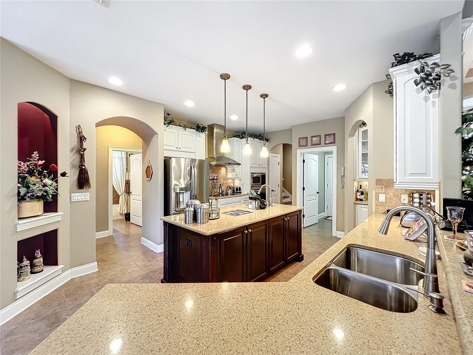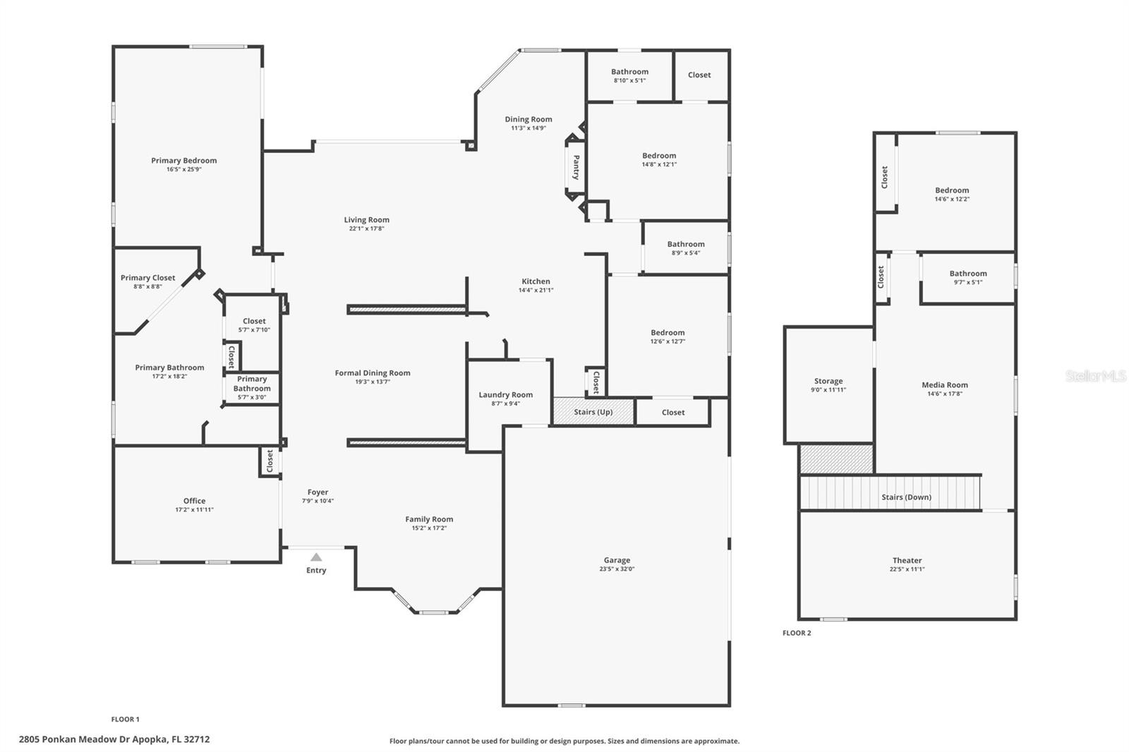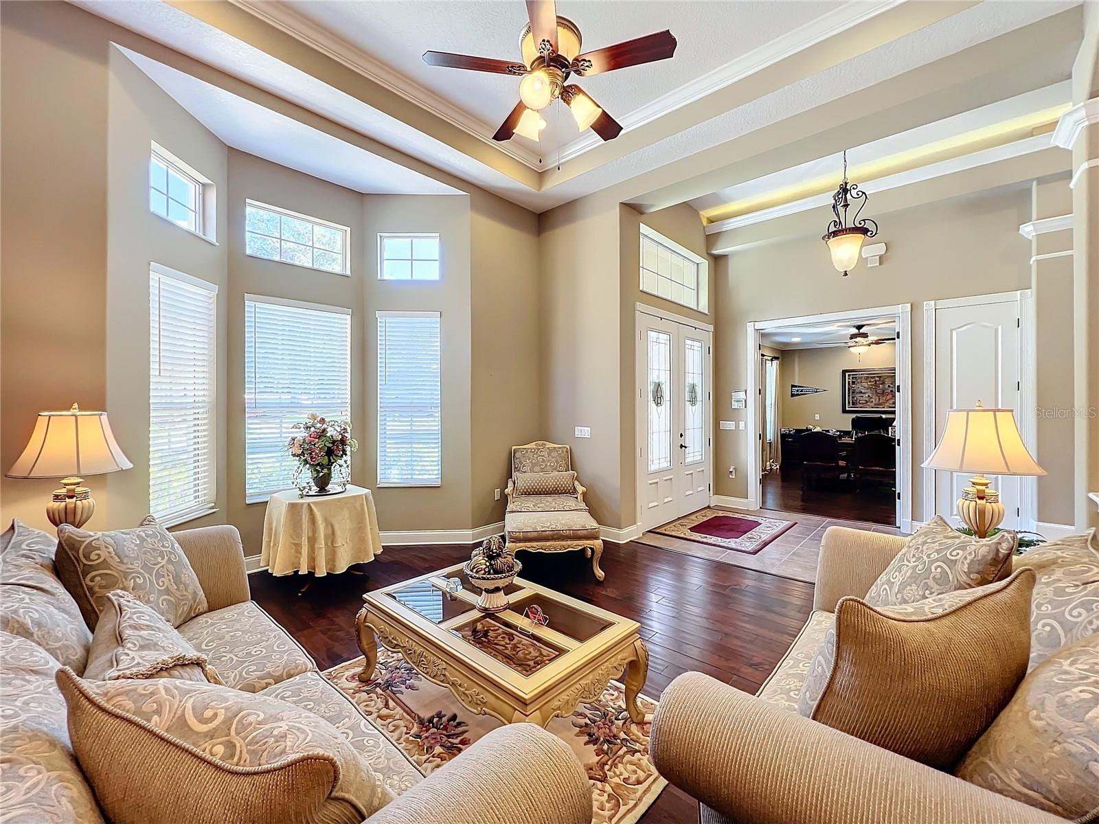 Price Improvement! Experience Luxury Living in this meticulously cared for one owner home in the Gated Wekiva Run Community. The home is situated on .40 acres, with No Rear Neighbors! The Owners added over $74,000 in upgrades when they were having the home constructed, which makes this a one of a kind special property. This pristine 4 Bedroom, 4 Bath, Pool home is Move In Ready and waiting for you and your family. As you enter the brick paver driveway you can see the care taken by the Owners to its exterior and landscaping. But that is only the beginning. Upon entering the upgraded double doors you are welcomed by 13 foot box ceiling, extensive crown molding, accent lighting, oversized door casings and baseboards. To your right is a Formal Living room with Hardwood flooring. On your left is the Office/Library with glass French Doors, Hardwood Flooring, Crown Molding and a built in workstation. The separate Dining Area has Hardwood Flooring, a gorgeous chandelier, can accommodate a formal Buffet and 6-8 persons. The spacious open family room features a coffered ceiling, crown molding and surround sound system to set the mood for entertaining guests with music or watching Television. The Gourmet Kitchen is spacious with a Prep Area Veggie Sink, Butler Pantry, Breakfast Bar, Stainless Appliances, and a Nook to relax and enjoy a a quiet meal. The Lanai Area is oh so flawless, with a pool and spa, brick pavers, perfect for outside entertainment or just quiet time. Downstairs there are 3 Bedrooms. The Primary Bedrooms separate to itself with Hardwood Flooring, Crown Molding and can comfortably support the largest furniture, including a sitting area for personal reading or to meditate after a long day. The Primary bathroom has a beautiful octagon design with accent lighting, a separate shower and tub, dual vanities, dual walk in closets and is almost as large as the bedroom. On the other side of the house are Bedrooms 2 and 3, which are oversized and have their own Ensuite bathrooms. There is more! Upstairs is a Theatre Room, separate bonus Room and a 4th oversized Bedroom with its ensuite bathroom. I could go on and on, but schedule a showing to see this elegant property for yourself and make it yours for you and your family! Items that convey include the following: Home Theatre Chairs, 110 inch screen, Popcorn machine, Bonus Room Sectional, 3 in 1 Game Table, 55 inch TV, Sound Bar System, Family room Entertainment Center, Surround Sound Speakers, and 65 inch TV. Recent Updates: roof 2021, Screen Enclosure 2021, Gutters 2021, Exterior Paint 2021, Kitchen Cabinets Professionally Painted in 2022, Laminate Flooring in 3 Bedrooms and Bonus Room in 2020, Wood Stair Treads in 2020. Property also includes 1 YEAR HOME WARRANTY! HOME THEATRE ELECTRONIC SOUND SYSTEM DOES NOT CONVEY! Close proximity to Highway 429, Grocery Shopping, and Apopka Amphitheatre and Sports complex.