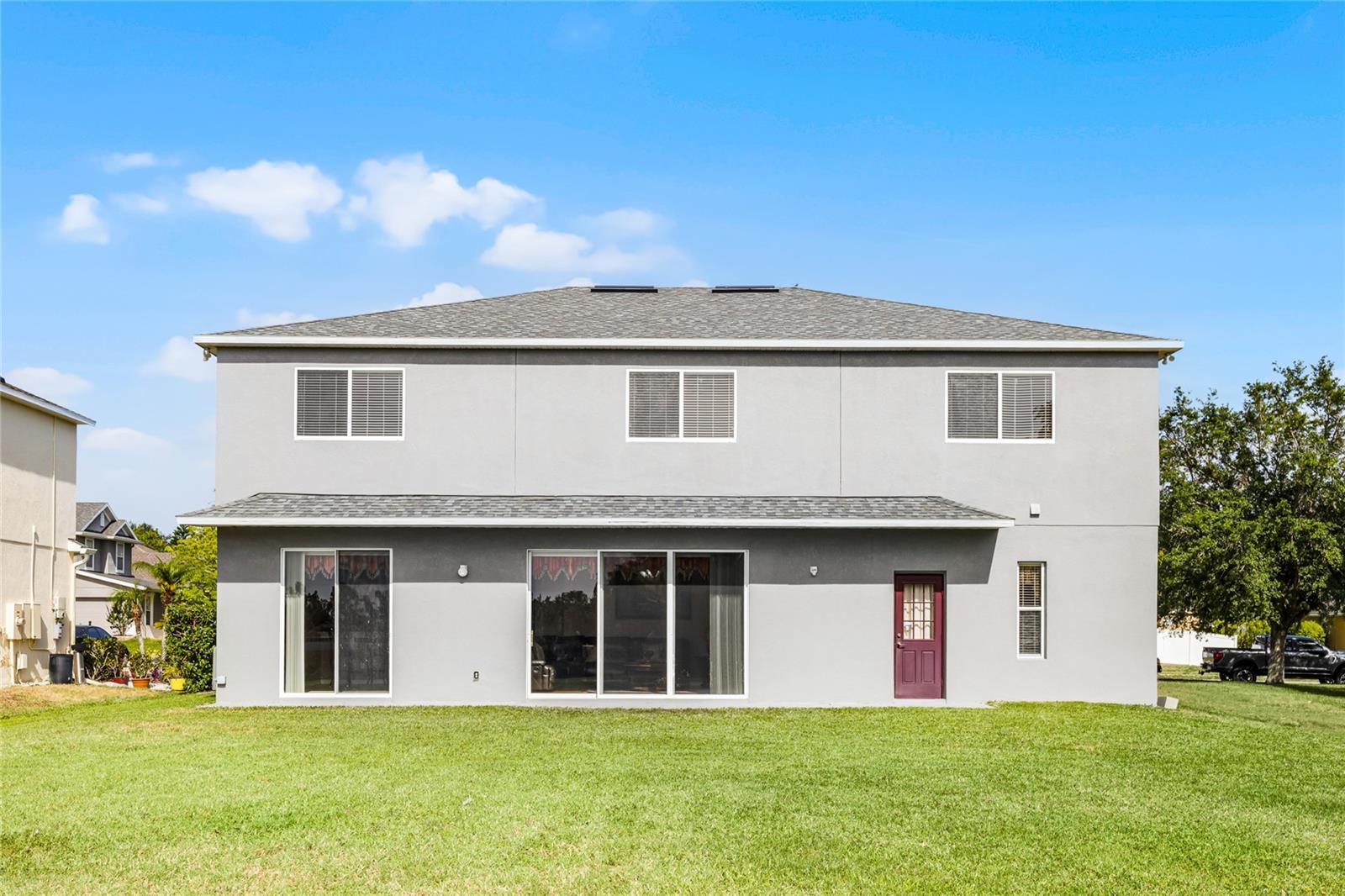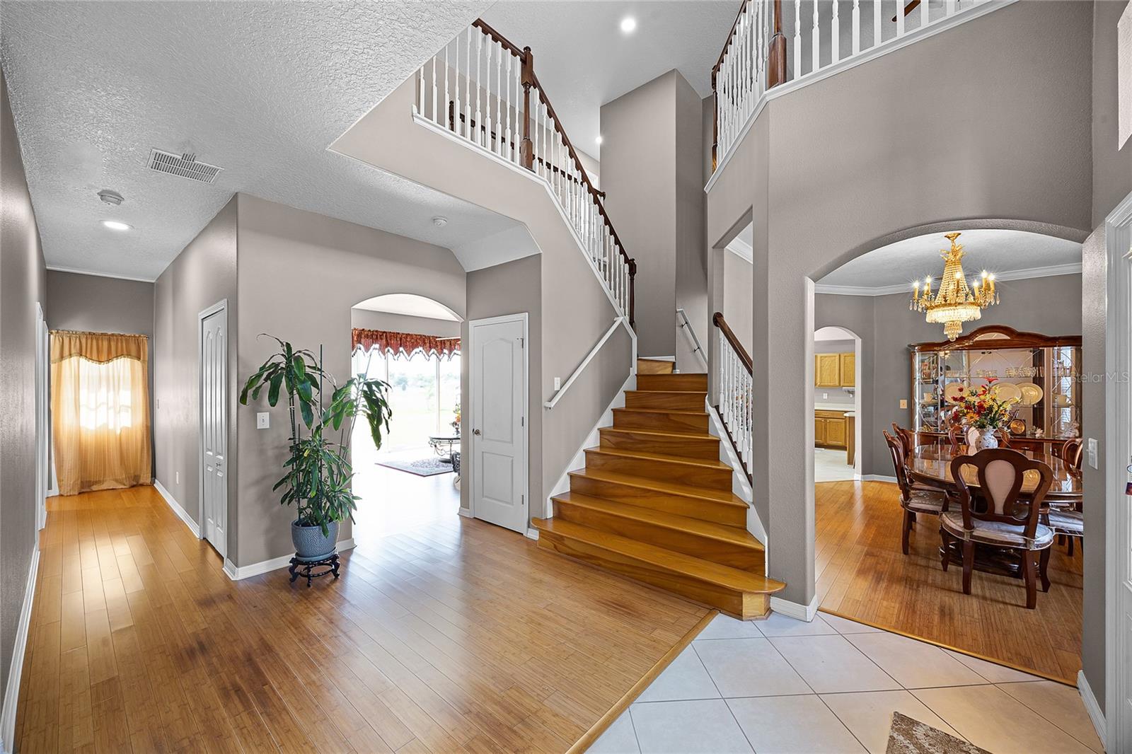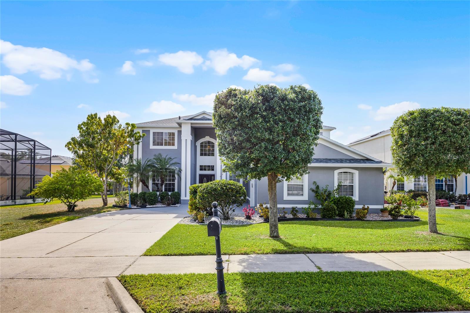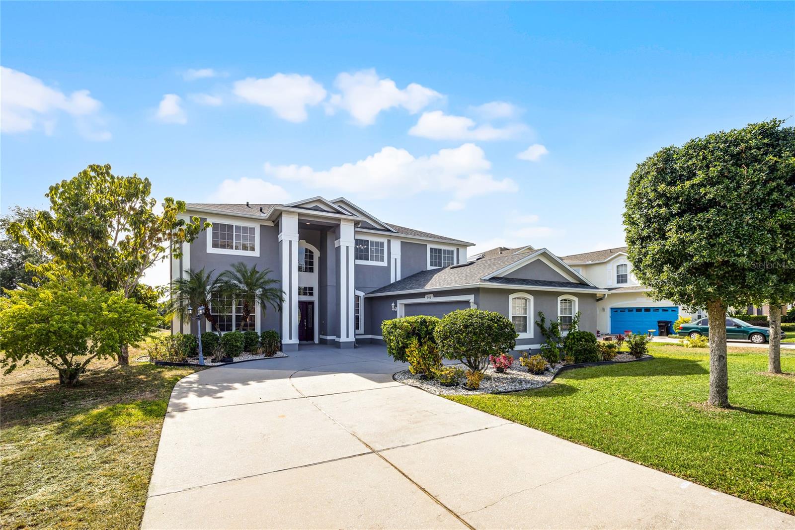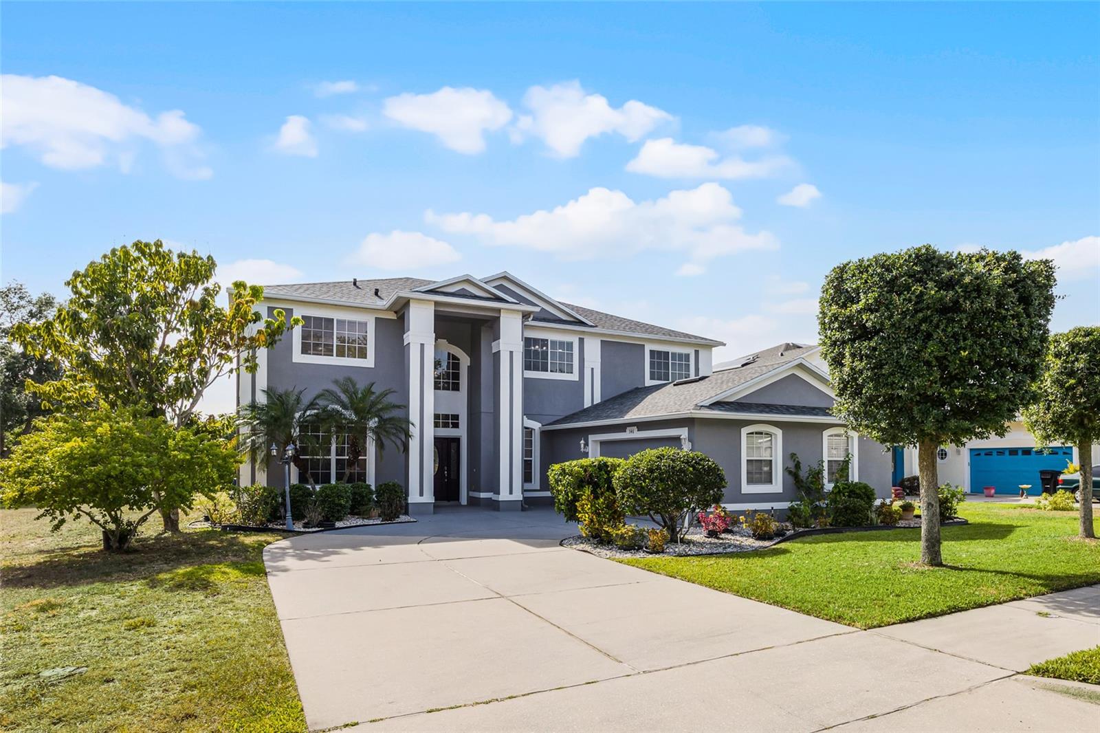 Welcome to your dream retreat—this stunning five-bedroom, three-bathroom home sits on a premium lot with serene views and no rear neighbors, offering the ultimate in seclusion and relaxation. Venture into the grand foyer and be greeted by soaring ceilings, rich bamboo floors and an airy, elegant layout designed for both comfort and entertaining. The formal living and dining areas flow into a spacious, open-concept kitchen and family room, great for gatherings big or small. A first-floor guest suite with exterior access makes an ideal setup. Upstairs, a double staircase leads to a versatile loft, three additional bedrooms and a luxurious primary suite with dual walk-in closets and a spa-inspired bath. At the rear of the home, your oversized yard opens to tranquil views—your own secluded escape. With a newer roof (2024) and meticulous upkeep, this home is move-in ready and built to impress. Minutes from major highways and Orlando's top attractions, this rare gem blends location, luxury and lifestyle. Don’t miss your chance—homes like this don’t come around often!