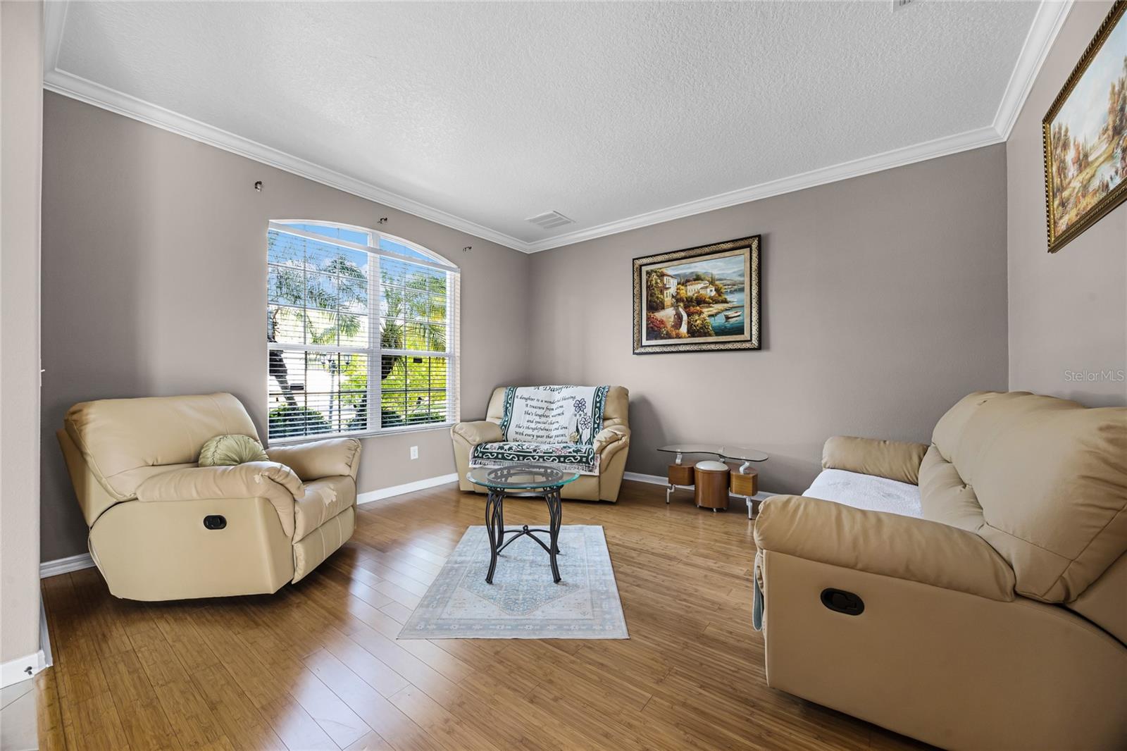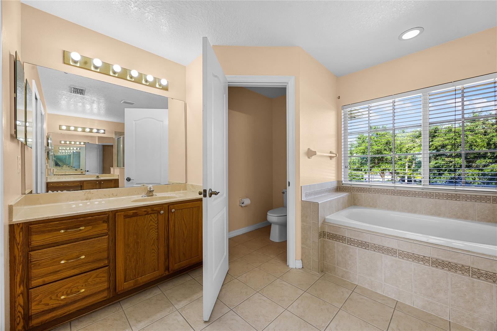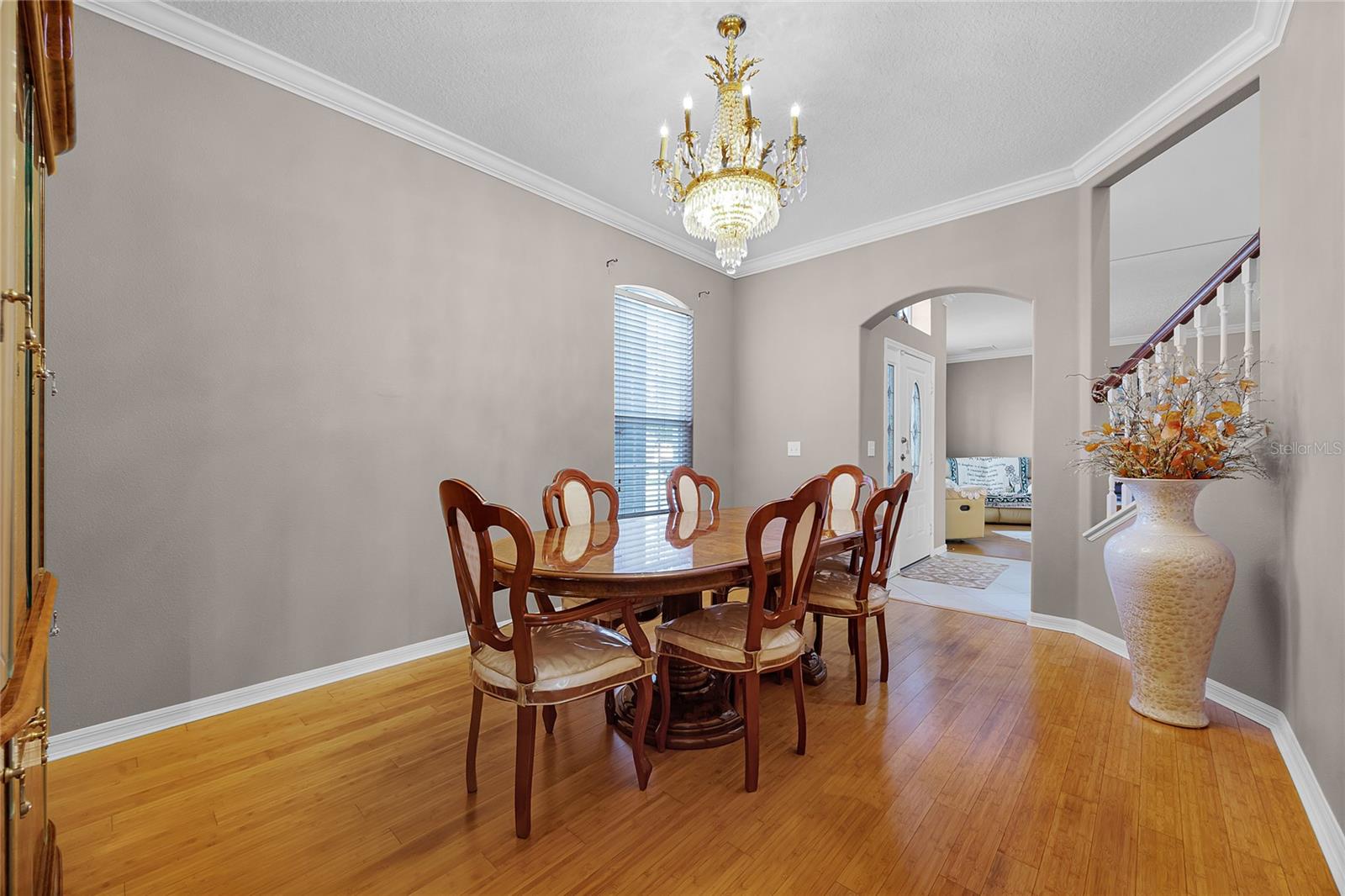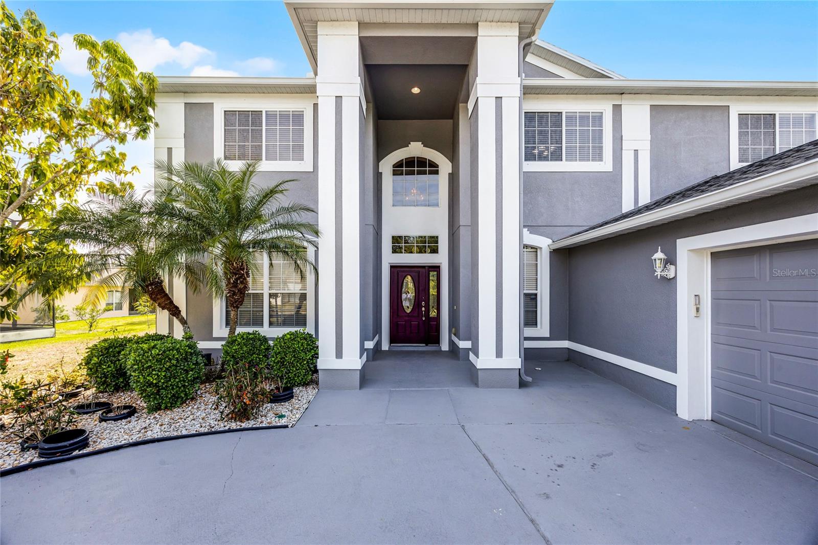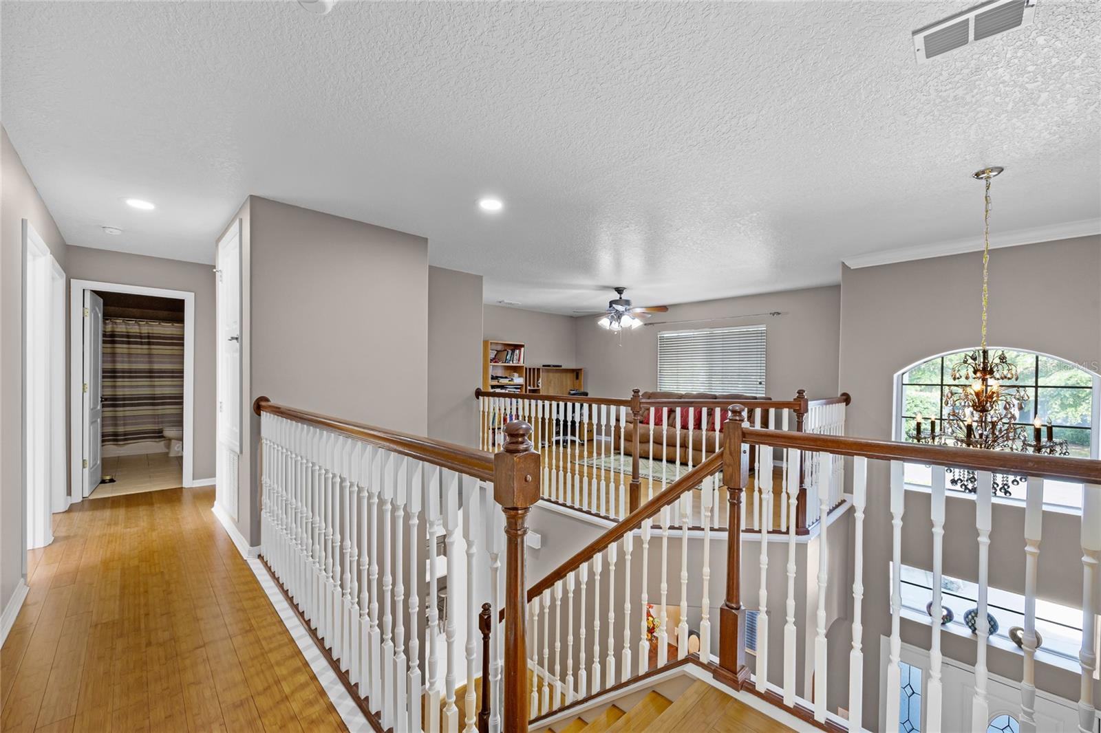 Welcome to your dream retreat—this stunning five-bedroom, three-bathroom home sits on a premium lot with serene views and no rear neighbors, offering the ultimate in seclusion and relaxation. Venture into the grand foyer and be greeted by soaring ceilings, rich bamboo floors and an airy, elegant layout designed for both comfort and entertaining. The formal living and dining areas flow into a spacious, open-concept kitchen and family room, great for gatherings big or small. A first-floor guest suite with exterior access makes an ideal setup. Upstairs, a double staircase leads to a versatile loft, three additional bedrooms and a luxurious primary suite with dual walk-in closets and a spa-inspired bath. At the rear of the home, your oversized yard opens to tranquil views—your own secluded escape. With a newer roof (2024) and meticulous upkeep, this home is move-in ready and built to impress. Minutes from major highways and Orlando's top attractions, this rare gem blends location, luxury and lifestyle. Don’t miss your chance—homes like this don’t come around often!