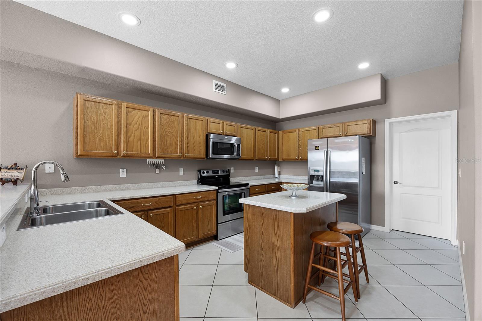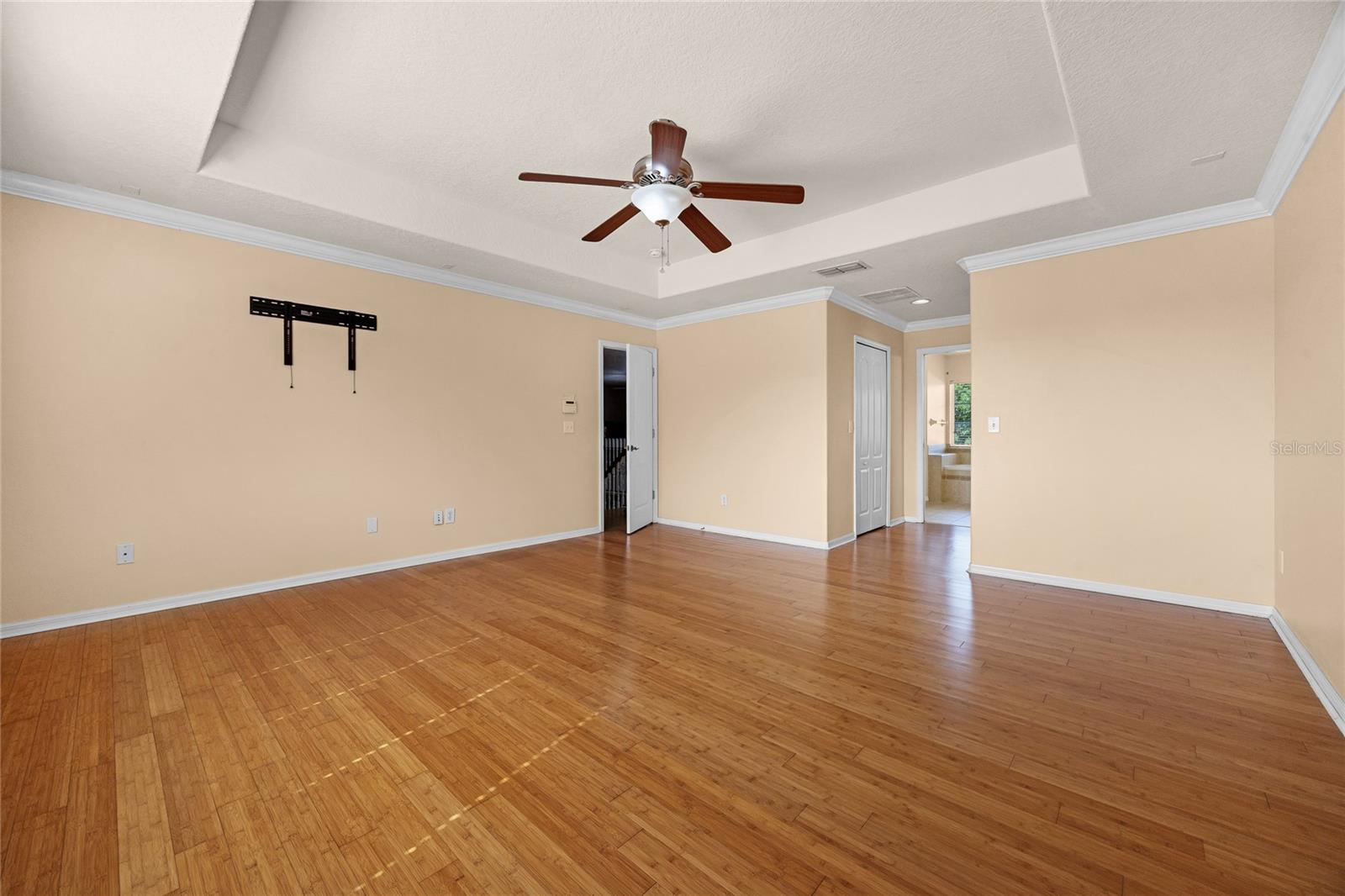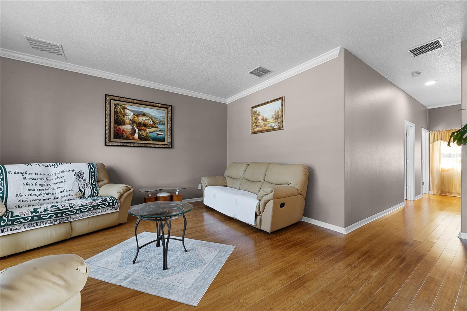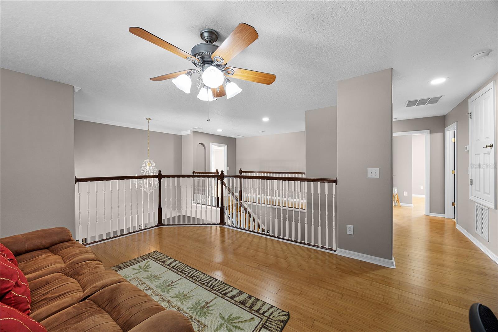 Welcome to your dream retreat—this stunning five-bedroom, three-bathroom home sits on a premium lot with serene views and no rear neighbors, offering the ultimate in seclusion and relaxation. Venture into the grand foyer and be greeted by soaring ceilings, rich bamboo floors and an airy, elegant layout designed for both comfort and entertaining. The formal living and dining areas flow into a spacious, open-concept kitchen and family room, great for gatherings big or small. A first-floor guest suite with exterior access makes an ideal setup. Upstairs, a double staircase leads to a versatile loft, three additional bedrooms and a luxurious primary suite with dual walk-in closets and a spa-inspired bath. At the rear of the home, your oversized yard opens to tranquil views—your own secluded escape. With a newer roof (2024) and meticulous upkeep, this home is move-in ready and built to impress. Minutes from major highways and Orlando's top attractions, this rare gem blends location, luxury and lifestyle. Don’t miss your chance—homes like this don’t come around often!