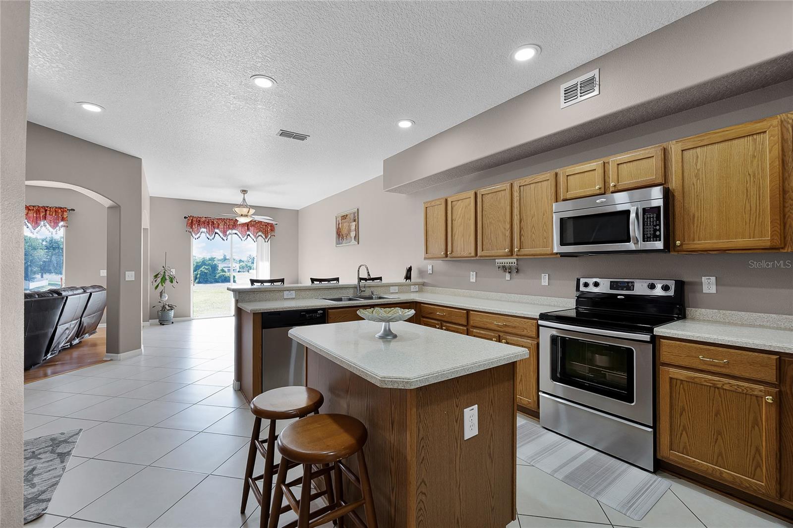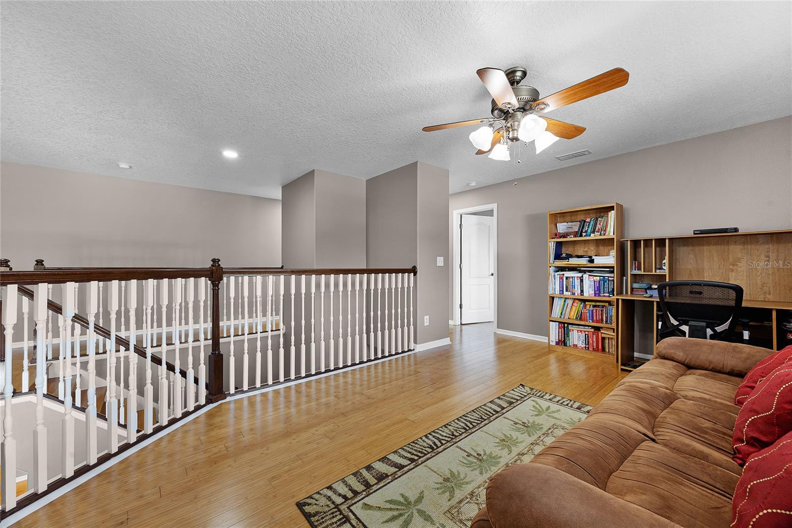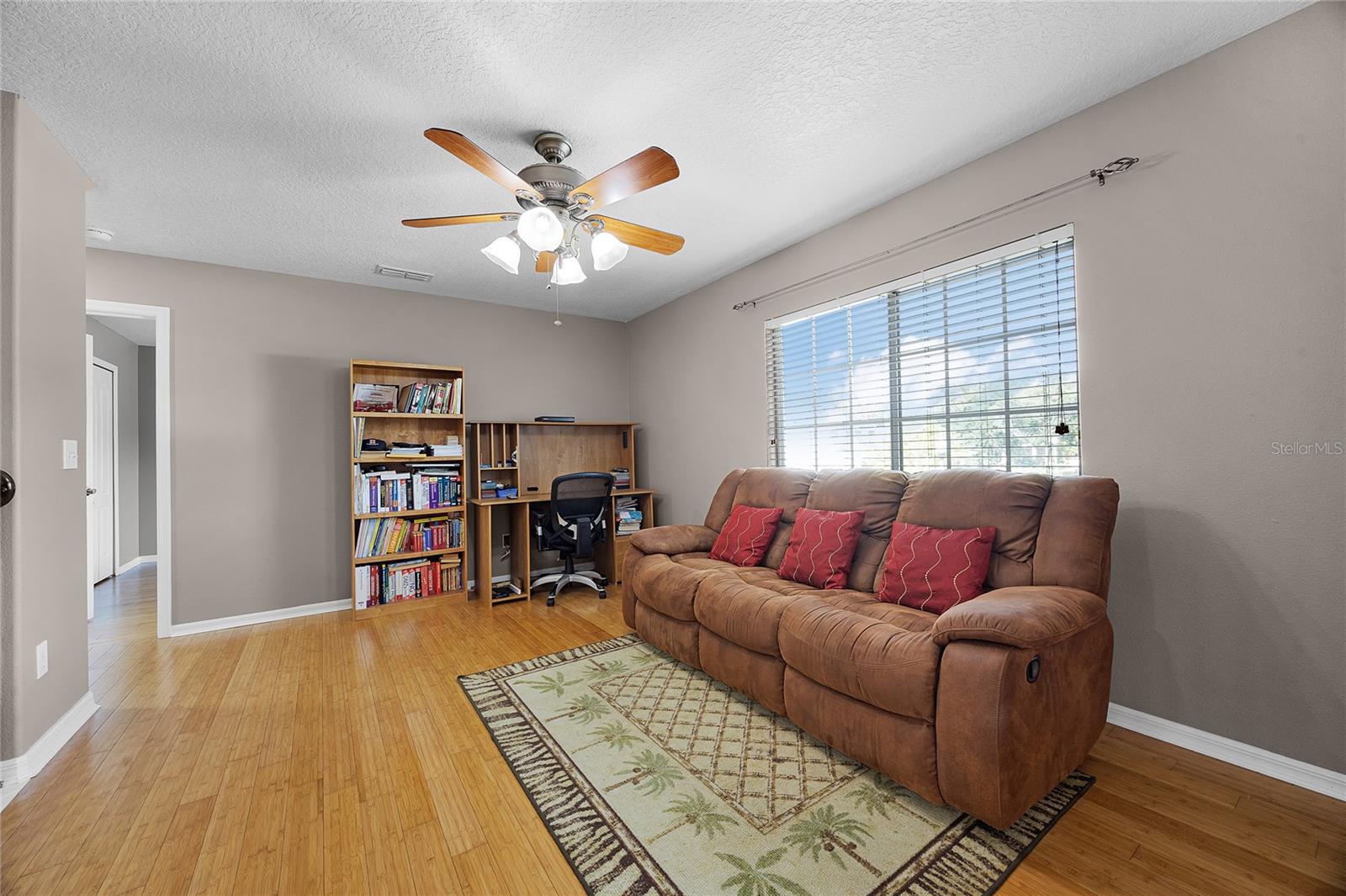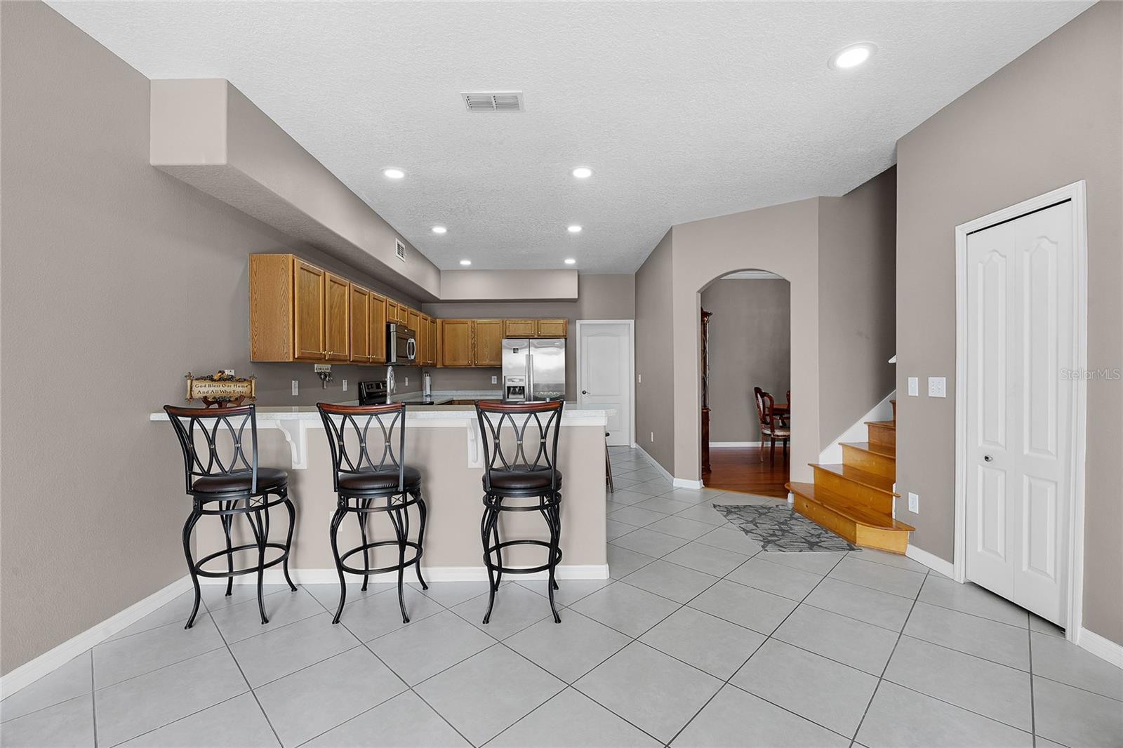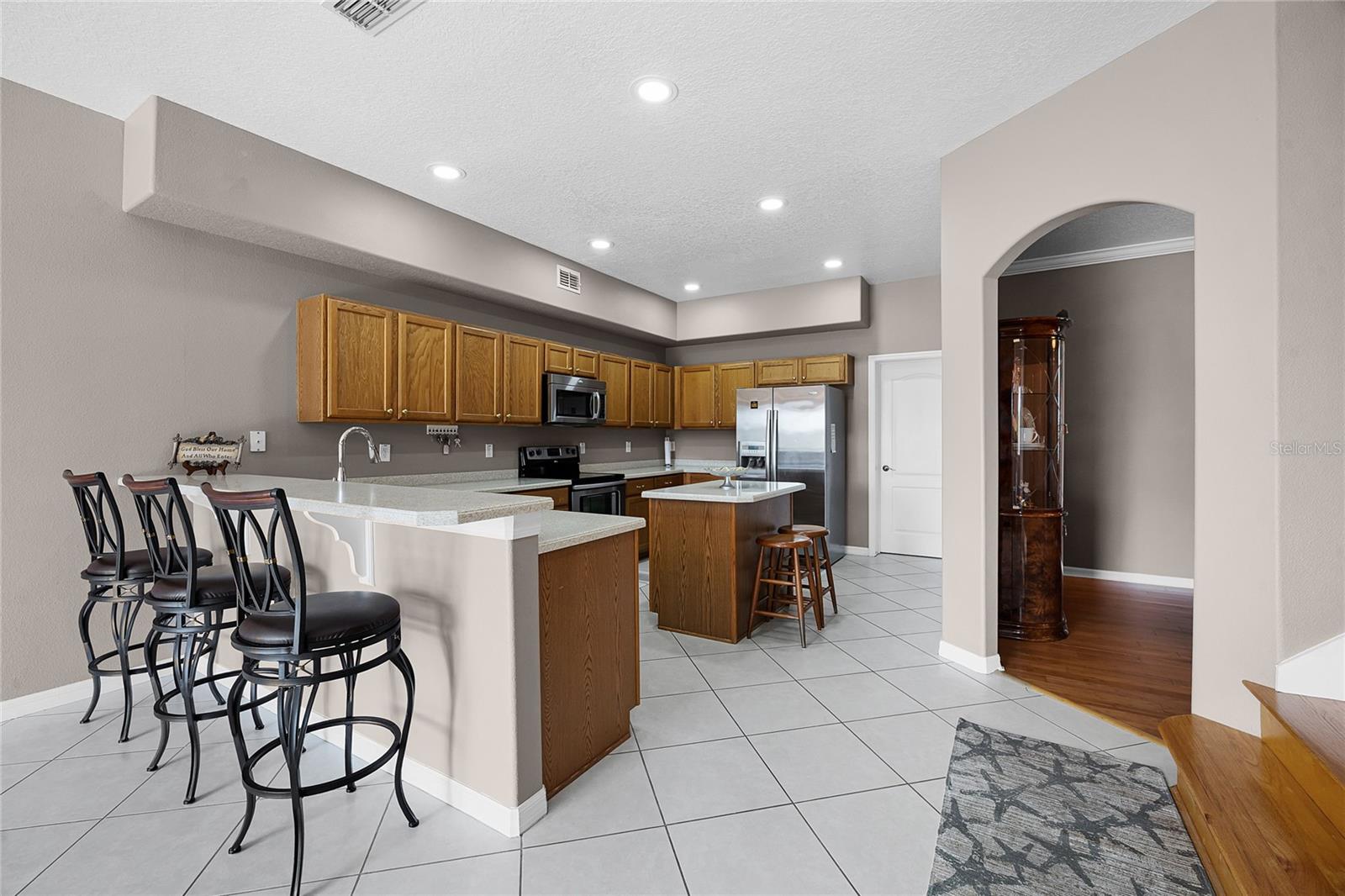 Welcome to your dream retreat—this stunning five-bedroom, three-bathroom home sits on a premium lot with serene views and no rear neighbors, offering the ultimate in seclusion and relaxation. Venture into the grand foyer and be greeted by soaring ceilings, rich bamboo floors and an airy, elegant layout designed for both comfort and entertaining. The formal living and dining areas flow into a spacious, open-concept kitchen and family room, great for gatherings big or small. A first-floor guest suite with exterior access makes an ideal setup. Upstairs, a double staircase leads to a versatile loft, three additional bedrooms and a luxurious primary suite with dual walk-in closets and a spa-inspired bath. At the rear of the home, your oversized yard opens to tranquil views—your own secluded escape. With a newer roof (2024) and meticulous upkeep, this home is move-in ready and built to impress. Minutes from major highways and Orlando's top attractions, this rare gem blends location, luxury and lifestyle. Don’t miss your chance—homes like this don’t come around often!