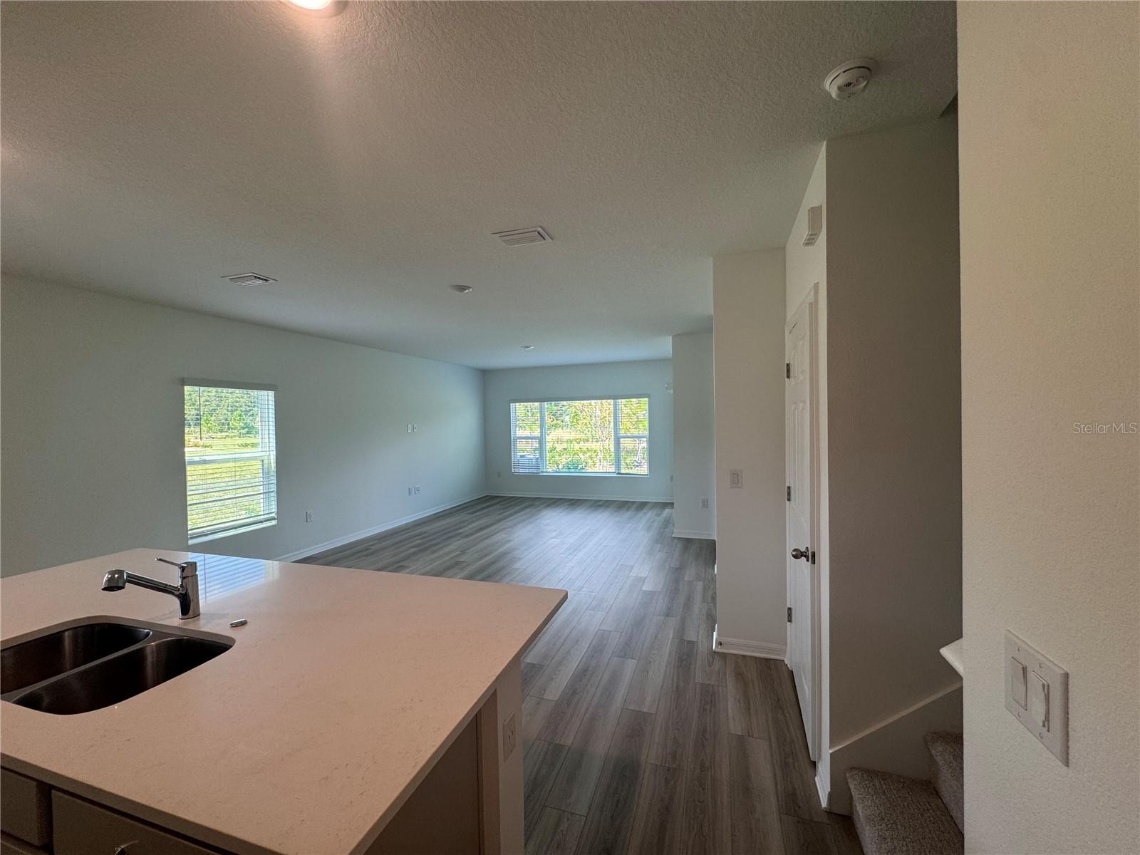Our exceptional Hamilton townhome is located in the brand new Thompson Village Community. Situated on a lovely homesite with no rear neighbors, this beautiful end-unit townhome features an open-concept design including 3 Bedrooms, 2.5 baths, and 2 car garage. The spacious Great Room overlooks rear covered Lanai - perfect for entertaining and outdoor living. Tile flooring is featured in the 1st floor main living areas, and window blinds are included throughout. Well-appointed Kitchen includes beautiful cabinetry with crown molding, quartz countertops, tile backsplash, kitchen island, pantry closet, and stainless appliances. Jack and Jill Bath suite with separate vanities is conveniently located between secondary Bedrooms, and the oversized Primary Bedroom features large walk-in closet and an en-suite Bath including dual sinks in adult-height vanity, quartz countertops, walk-in shower with upgraded wall tile surround, and linen closet. Our High Performance Home package is included, offering amazing features that provide energy efficiency, smart home technology, and elements of a healthy lifestyle. Exterior includes decorative stone accents, and attractive brick paver driveway and lead walk. The Community is centrally located with shopping and dining nearby, and features a playground, and guest parking areas.