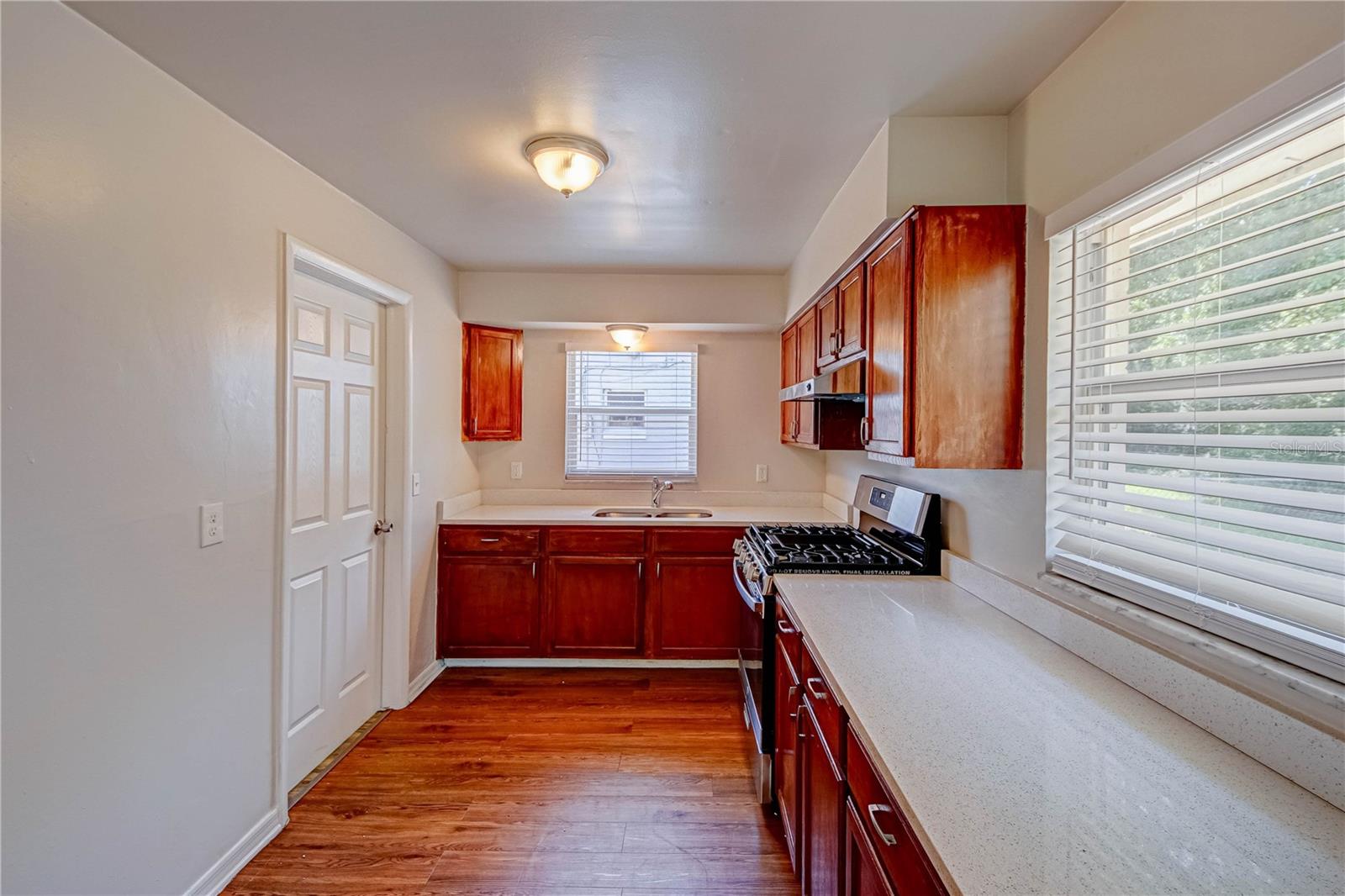 One or more photo(s) has been virtually staged. Step into this well-maintained 3-bedroom, 1.5-bath home offering 1,010 sq.ft. of thoughtfully designed living space in a sidewalk-lined neighborhood of Apopka. Upon entry, you'll be welcomed by natural light pouring through large windows into the open living and dining area, complemented by elegant hardwood floors and overhead lighting throughout. The kitchen features classic wood cabinetry, generous countertops, and a gas stove, making it a practical space for any home cook. The primary bedroom includes a full ensuite bath, while the additional bedrooms also offer closets and natural light. A spacious backyard—partially fenced—offers room to relax or entertain. Additional conveniences include a utility room with LVP flooring and overhead racks, plus a single-car garage with electric opener. Maintained with meticulous care, HVAC system and water heater updated in recent years (HVAC 2022, Water Heater 2021), ensuring peace of mind and comfort for years to come. Close to shopping, dining, and schools such as Clay Springs Elementary, this location also offers easy access to major roads and recreational areas.