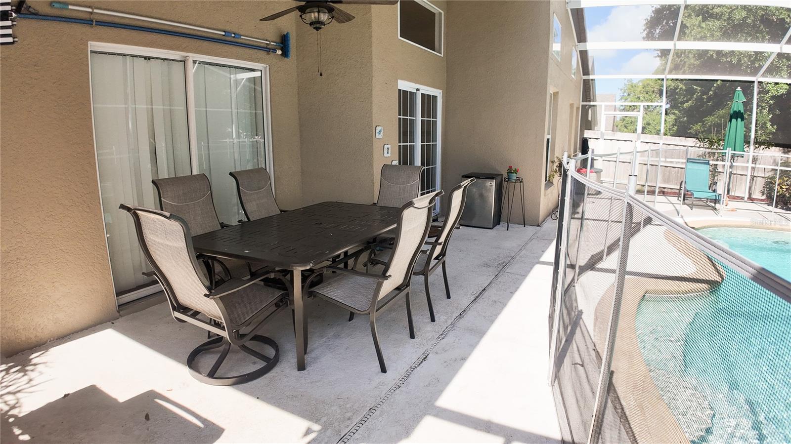 Beautiful 4-Bedroom Pool Home This well-maintained 4-bedroom, 2-bathroom home offers a functional layout ideal for family living. Features include a 2-car garage, a designated dining room, a laundry room, and a versatile den perfect for a home office, playroom, or flex space. Enjoy the Florida lifestyle in your private, screened-in saltwater pool and patio area — heated by a paid-off solar panel system for energy efficiency and year-round comfort. The spacious primary suite includes a walk-in closet, garden tub, and separate stand-up shower. Located in a quiet, sought-after neighborhood with a community park just a short walk away. Don’t miss the chance to call this home your own — where comfort, convenience, and style come together!