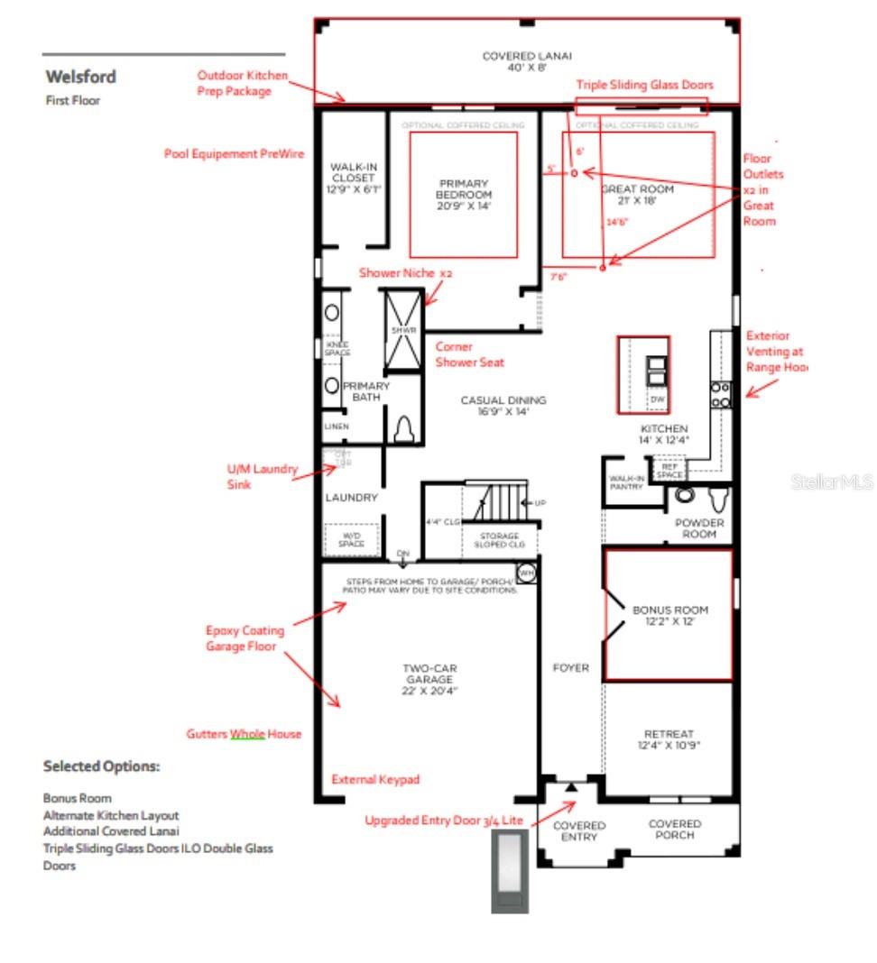 One or more photo(s) has been virtually staged. Under Construction. Modern luxury meets elegant design in this stunning Welsford Craftsman home with estimated June 2025 completion. Offering an impressive 2,895 square feet of meticulously designed living space, this exceptional residence features 4 bedrooms, 3.5 bathrooms, and premium finishes throughout. Step inside to discover an open-concept floor plan where the heart of the home shines with a gourmet kitchen featuring stainless steel appliances, quartz countertops, exterior venting range hood, and ample storage including a walk-in pantry. The free-flowing layout creates a seamless connection between the kitchen, spacious casual dining area (16'9" x 14'), and expansive great room (27' x 18') with optional tray ceiling. The luxurious first-floor primary suite (20'5" x 14') offers tranquility with an optional tray ceiling and generous walk-in closet (12'9" x 6'7"). The en-suite primary bathroom provides spa-like amenities including dual vanities, two shower niches, and a corner shower seat with frameless glass enclosure. Additional first-floor highlights include a versatile bonus room (12'2" x 12'), convenient retreat space (12'4" x 10'9"), powder room, and laundry room with utility sink. Outdoor living is elevated with a covered 40' x 8' lanai accessible through triple sliding glass doors, providing the perfect setting for entertaining. The thoughtfully designed second floor features two secondary bedrooms with closets, an additional bedroom with two closets, and two full bathrooms. This home showcases beautifully upgraded interiors throughout including premium flooring and designer finishes. Selected premium options include: Outdoor kitchen prep package with pool equipment pre-wiring Epoxy-coated garage floor in the spacious two-car garage (22' x 20'4") External keypad entry system Upgraded entry door with 3/4 lite glass panel Floor outlets in the great room Whole-house gutters Located in a sought-after community minutes from Kelly Park/Rock Springs and Wekiva Springs parks, with convenient access to Florida's Route 429. Community amenities include a resort-style pool, cabana, and future splash pad. Don't miss this FINAL OPPORTUNITY to own this exceptional Welsford Craftsman home! Schedule your appointment today to experience the perfect blend of luxury and functionality.