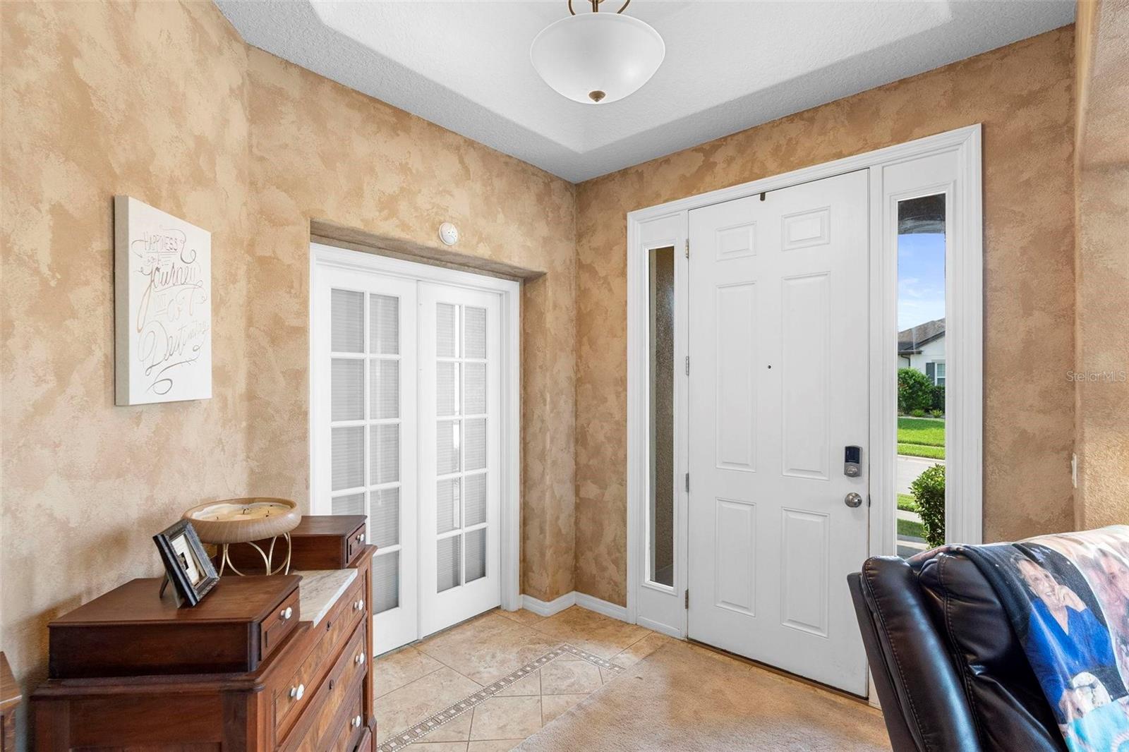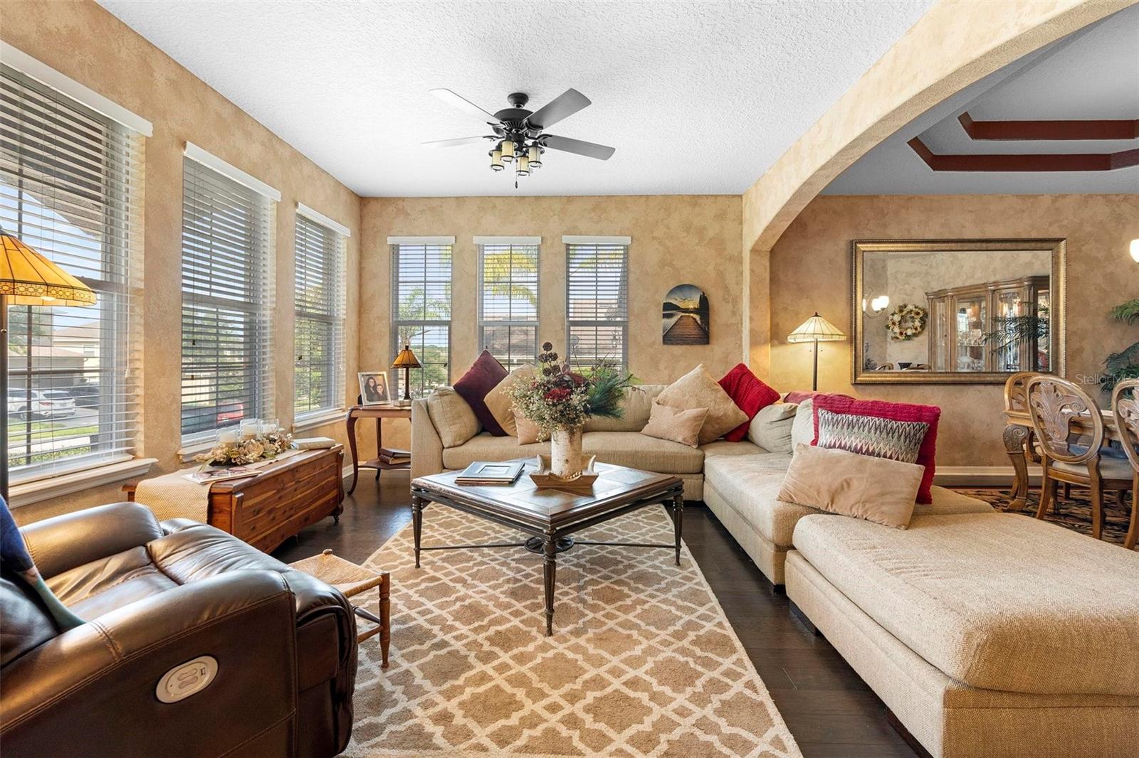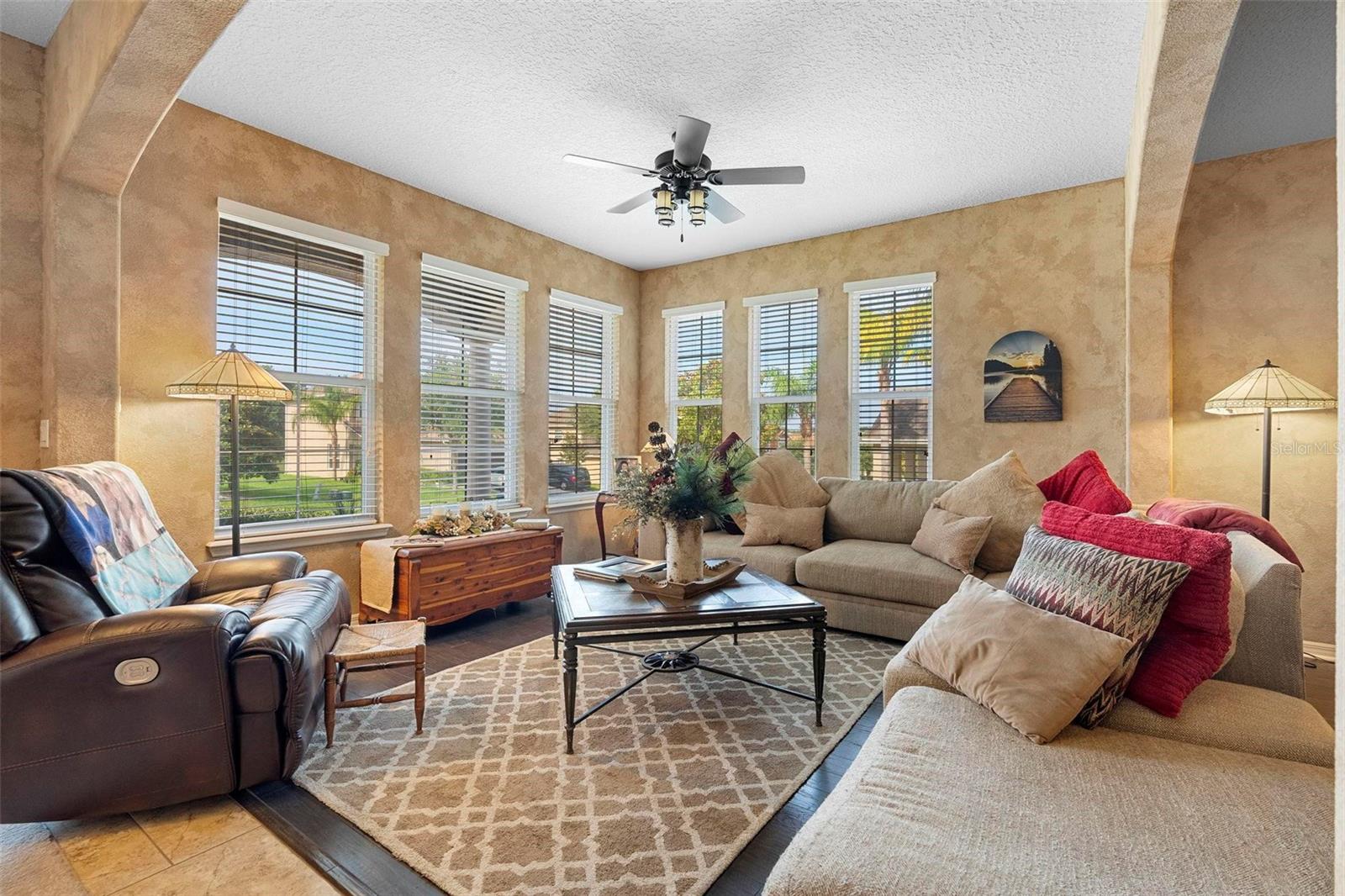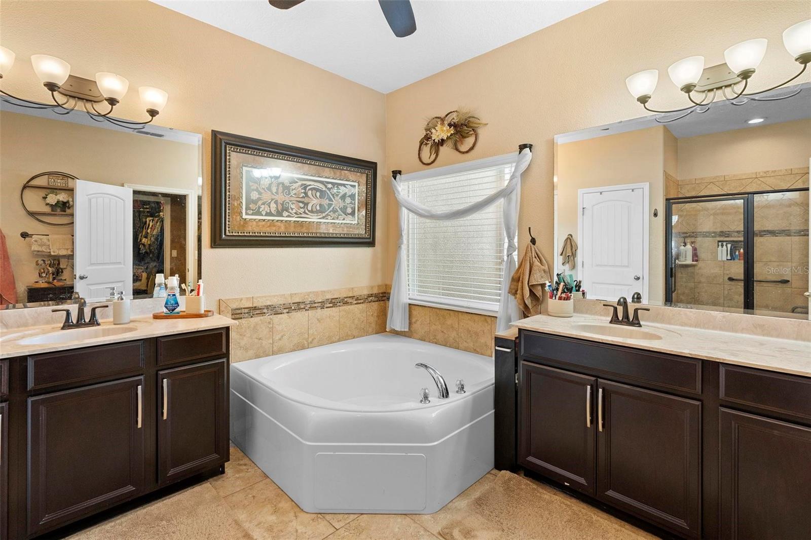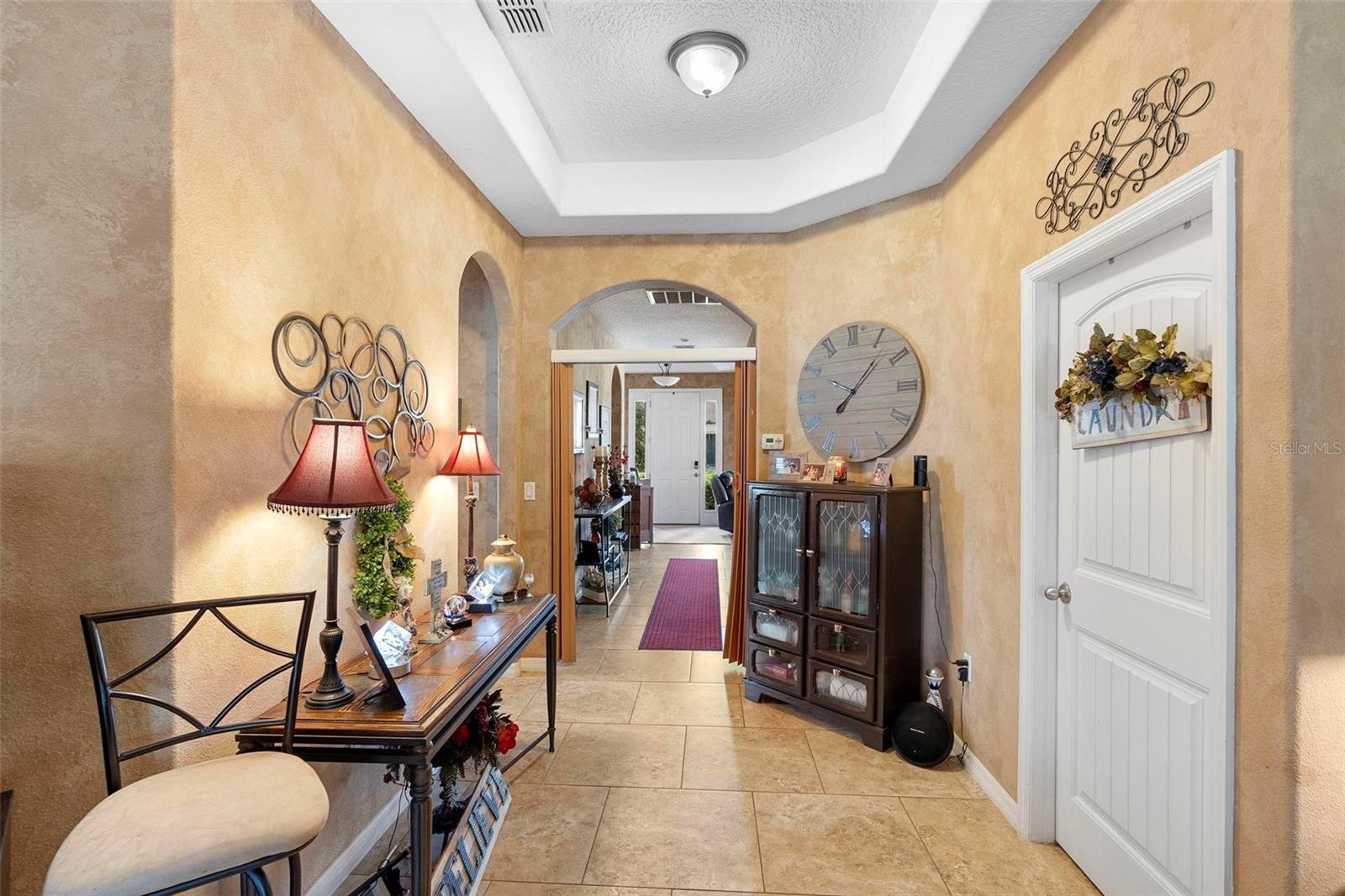 Prepare yourself to fall in love with this stunning, large corner lot, spacious home in a highly sought after community of Chandler Estates. This spacious 4-bedroom, 3-bathroom home captures you when you walk into the beautiful, welcoming faux painted home, as you enter the foyer which opens to a combined living room and dining room with a mixture of beautiful tiled and manufactured wood looking laminate flooring, which offers a great space for entertaining. Each bedroom and garage entrance have a beautiful alcove entering each area. This functional layout flows seamlessly into the family room and recently upgraded kitchen. The kitchen offers solid wood cabinetry, beautiful granite countertops, with a newly installed (in 2024) backsplash, a large center island, tile floors with a breakfast nook, all great for entertaining with a new dishwasher installed in 2023! Just off the kitchen area, is a spacious laundry room with newly installed cabinets (2024) and a nice folding table with bottom storage. The family room, which is also off the kitchen is ready for you to wind down at the end of day, offering plenty of space for all your family and friends. While one of the extra bedrooms, has a full bathroom off the bedroom, the other 2 bedrooms share one of the other full bathrooms. The master bathroom screams relaxation, as soon as you enter, with a large soaking tub and a large walk in shower with safety bars installed in it, along with two sink/vanities. The master bedroom offers two walk-in closets with plenty of space for all of your clothes and shoes, along with a tray ceiling giving the room a nice touch, the carpet in the master bedroom was new in 2024. Step out to a large, screened lanai/porch, (recently screened in 2024), where you can sip on morning coffee or unwind after work with our beautiful Florida evenings. The large back yard with a newly laid paver area (2024), offers a nice outdoor space, which will be great on a nice cooler evening with a fire pit gathering. roasting marsh mellows or grilling out. There is plenty of room to have a pool installed as well. Additional highlights, the home has a large 3 car garage for vehicles and storage, alarm system, exterior painting done in 2024. The home is close to shopping, restaurants and the 429 and just minutes away from beautiful Mount Dora. Put this beautiful home on your list to see and make it yours!!