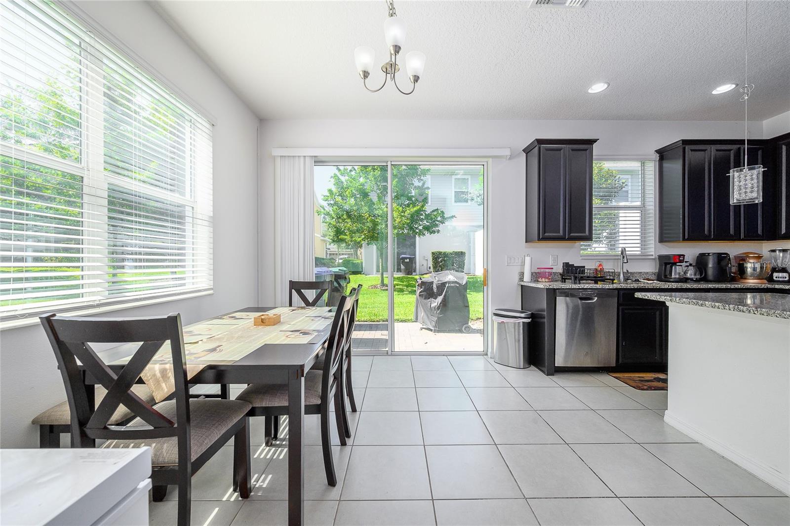 Chic End-Unit Townhome! Welcome to Ambergate, a charming townhome community by Park Square Homes nestled in the scenic city of Apopka. This two-story home features three bedrooms—all located upstairs—along with 2.5 bathrooms. The upstairs also includes a spacious loft area, while the main level boasts an inviting living room, a beautiful kitchen, and an open dining space. The kitchen is equipped with granite countertops, high-quality cabinets, stylish lighting fixtures, stainless steel appliances, and large sliding glass doors that fill the space with natural light. The master suite showcases tray ceilings and a luxurious framed shower in the bathroom. Modern ceiling fans are installed throughout the home, complementing the sleek tile flooring downstairs and plush carpets upstairs. Unique to end units, the front door offers a side entry, and the two-car garage comes with a private paver driveway. Step outside to the rear paver patio, perfect for entertaining or grilling, overlooking a peaceful green space with open land beyond. Ambergate also features a playground for and a prime location close to shopping, dining, and major roads like 441 and 436—providing quick access to I-4 and Toll Road 429. Enjoy stylish, comfortable