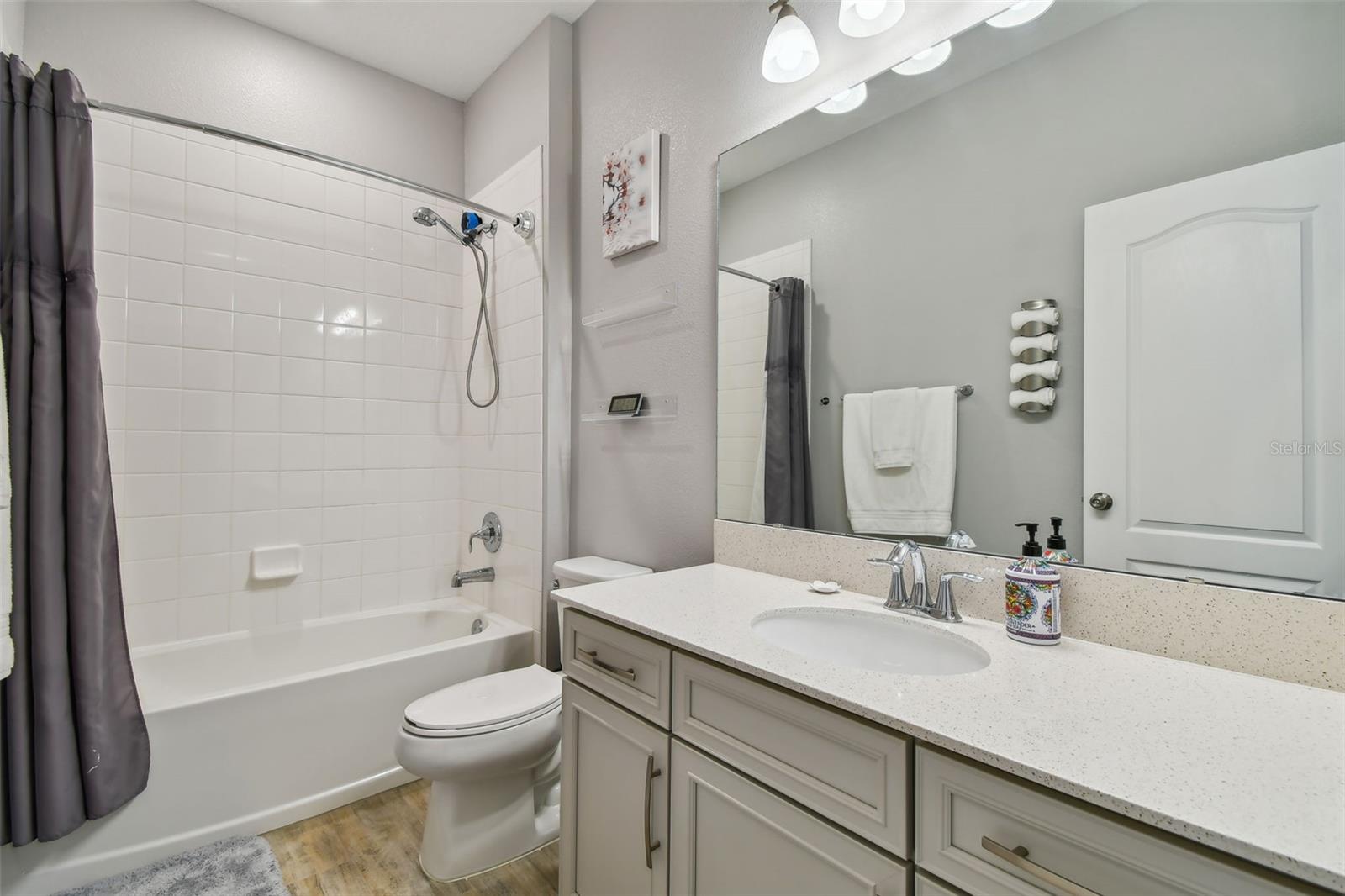 Step into unparalleled modern appeal with this expansive 3,187 sqft POOL home, where every detail has been meticulously upgraded for modern comfort and style. From the moment you arrive, the paver driveway and striking glass front door set the tone for the luxury within. This home not only boasts ample space but also features PAID OFF SOLAR PANELS, offering significant energy savings from day one! Inside, an open-concept design flows seamlessly across the common areas, graced by beautiful wood plank tile floors. Featuring 4 spacious bedrooms and 4 full bathrooms, each offer comfort and privacy while ensuring convenience for family and guests alike. The heart of the home is a modern kitchen designed for the discerning chef, featuring sleek quartz countertops, 42-inch cabinets with crown molding, a stylish subway tile backsplash, and a large island ideal for meal prep and entertaining. This home offers incredible flexibility, including a huge loft space on the second story that can easily be converted into a 5th bedroom, a media room, or a spacious recreation area. The owner's suite features a large walk in closet, tray ceilings, and an ensuite bath that's a true spa-like retreat, boasting stunning subway tile extended all the way to the ceiling, a luxurious soaking tub, and a sleek frameless shower enclosure. Outdoor living is redefined here with a large covered front porch for welcoming guests and an extended covered lanai with a custom pool, perfect for enjoying the Florida sunshine and entertaining year-round while offering a private oasis for relaxation. Practical additions like rain gutters complete the exterior package. The garage also features an entire EXTRA GARAGE BAY for storage making it feel like a 3 car garage!! Beyond your exquisite home, embrace the resort-style amenities within the community, providing endless opportunities for leisure and recreation. You're also in a dream location as you're in close proximity to the Wyld Oaks development boom happening all around this community. You're also minutes from 429 making this a quick commute into Orlando. This fully upgraded residence combines luxury, efficiency, and an exceptional lifestyle. Don't miss the chance to make this dream home yours! Schedule your private showing today.