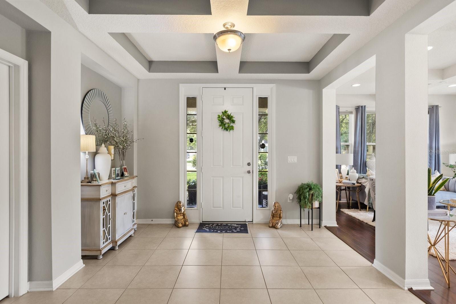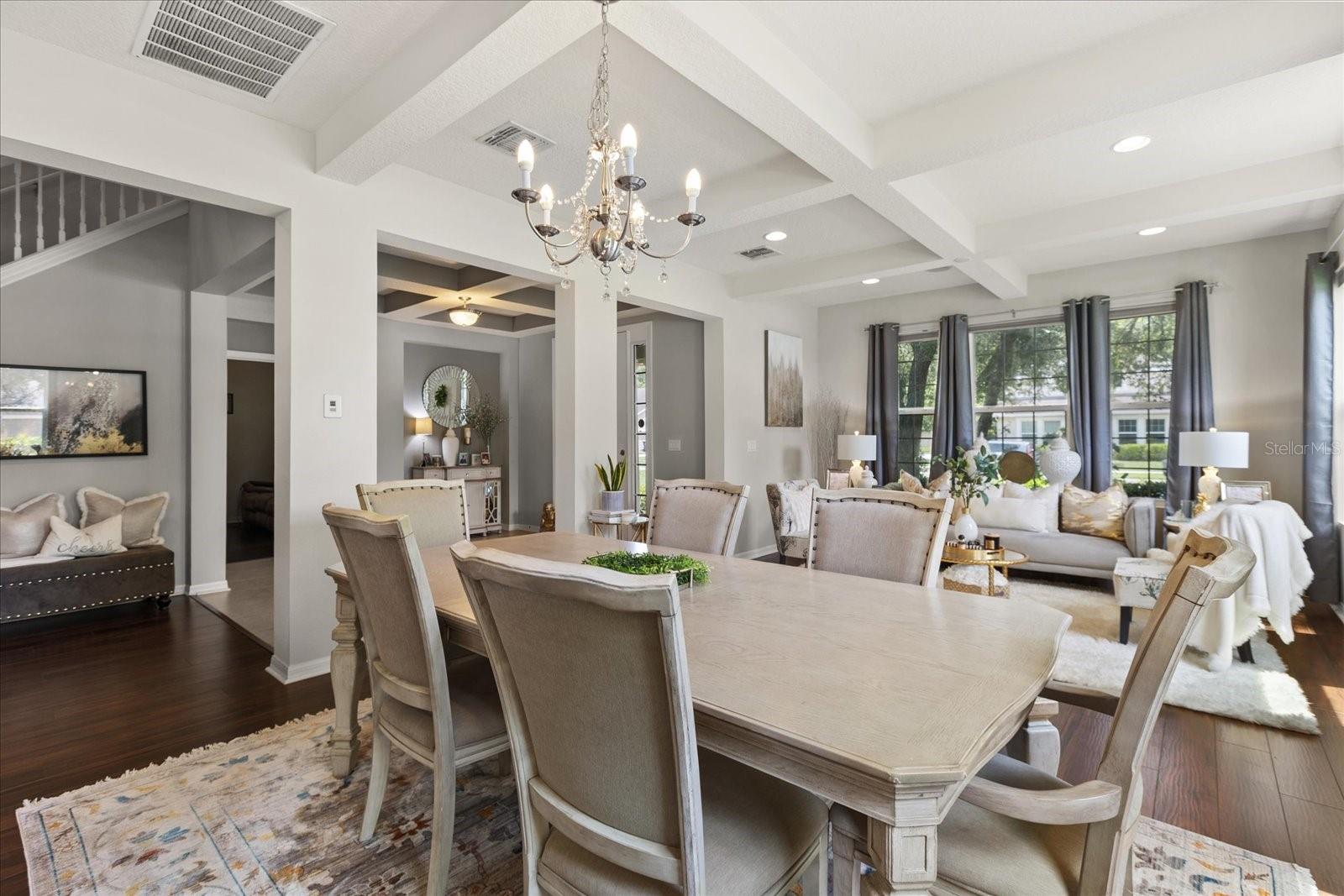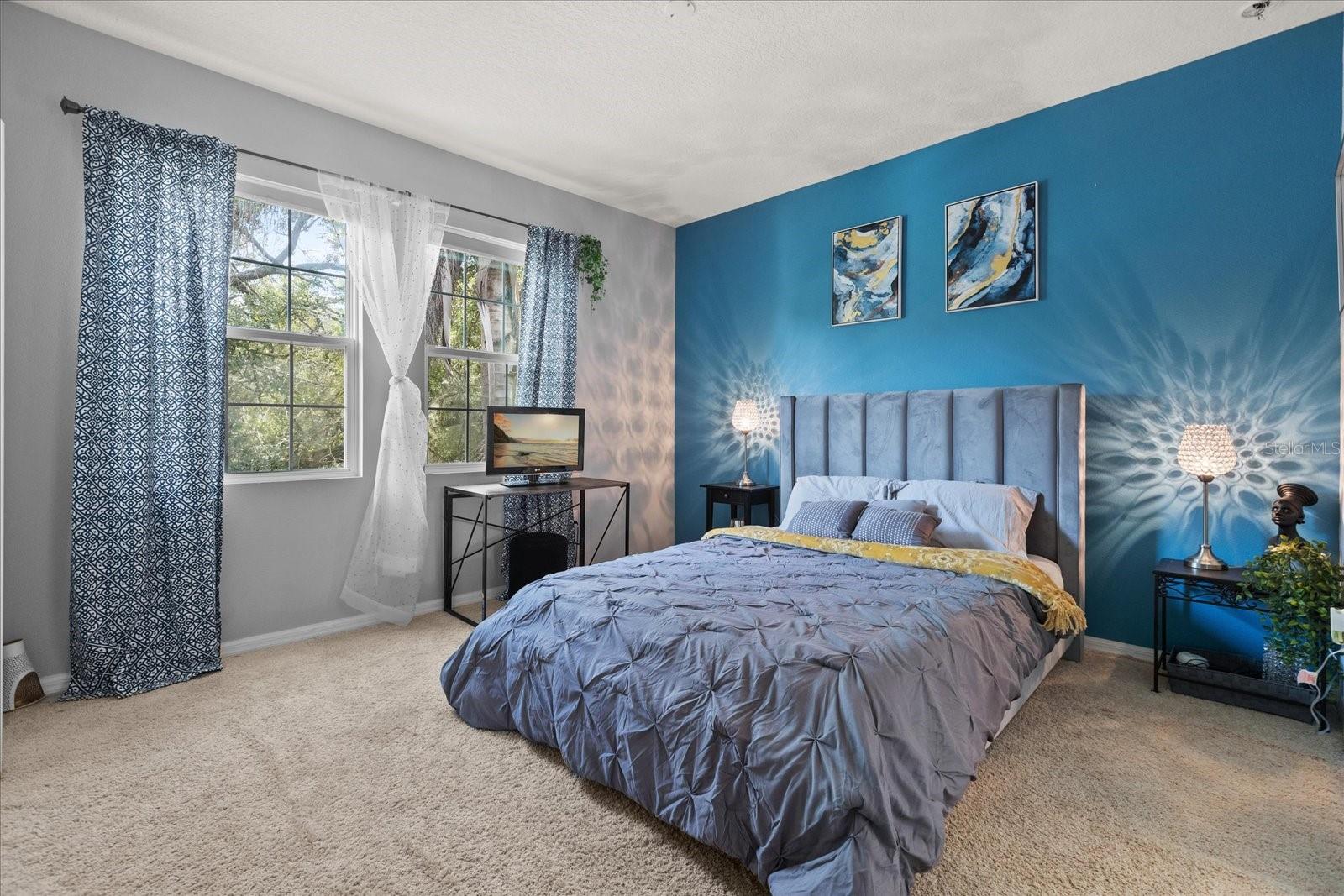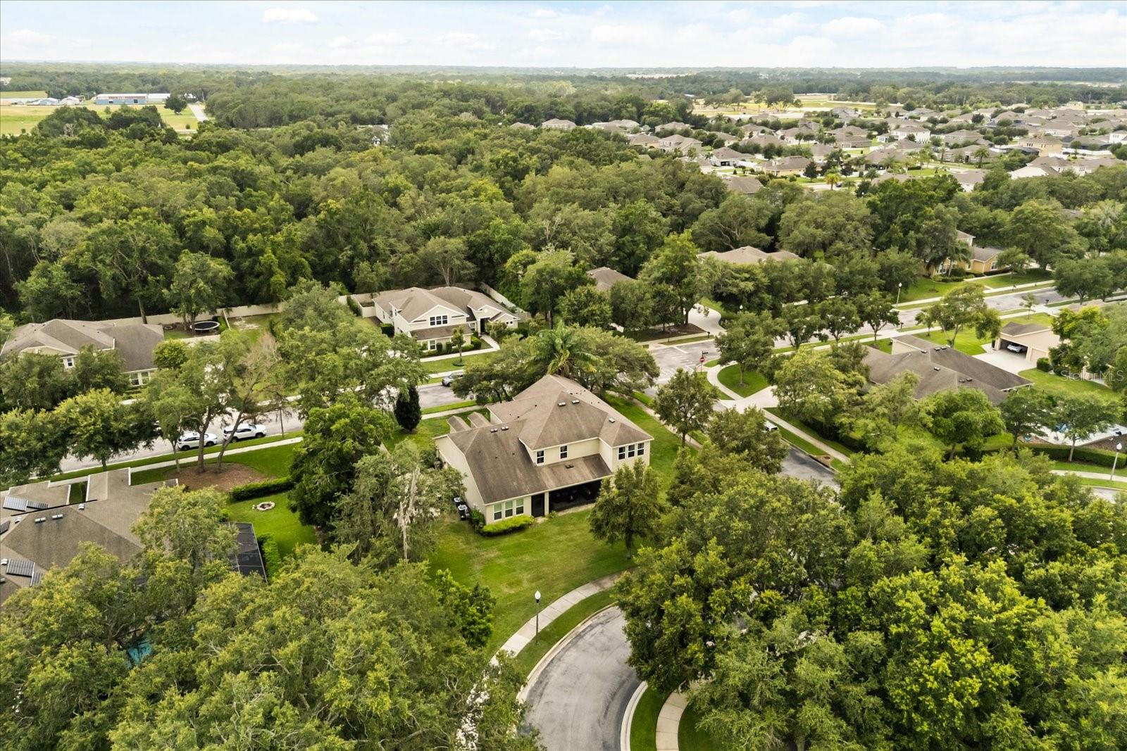 11,000 PRICE IMPROVEMENT! Welcome to your dream home in the exclusive gated community of Oakridge, where luxury, space, and future-forward living converge. Perfectly positioned just minutes from the highly anticipated Wyld Oaks development—offering an exciting blend of residential, retail, dining, medical, and recreational amenities—this exceptional residence combines timeless elegance with modern convenience. Boasting 5 spacious bedrooms, a dedicated office with a closet and nearby half bath, and a large upstairs loft, this thoughtfully designed floor plan offers flexibility for growing families, multigenerational living, or remote work needs. The first-floor in-law suite features laminate wood flooring, an en-suite bath, and a walk-in closet—ideal for guests or extended family. Entertain in style in the formal living and dining room combo, where coffered ceilings, recessed lighting, and a stunning chandelier create a sophisticated ambiance. The open-concept kitchen is a chef’s delight, with quartz countertops, 42” solid wood cabinetry, a large island, brand-new Samsung appliances, Kenmore dishwasher, tiled backsplash, pendant and recessed lighting, touchless faucet, and a Butler’s pantry for added storage and prep space. The family room is equipped with built-in surround sound speakers (also in the primary suite), while custom blinds add both style and privacy in key spaces throughout the main floor. Retreat to the luxurious primary suite featuring double-door entry, a sitting area, two walk-in closets (one with an upgraded organizing system), and a spa-inspired en suite bath with dual vanities, quartz countertops, a remodeled dual-head shower, and private water closet. Upstairs, bedrooms two and three share a Jack-and-Jill bathroom with a private water closet and dual quartz vanities. Bedroom four features its own private en-suite with a tiled bath/shower and quartz vanity. Every bedroom includes a generously sized walk-in closet, ensuring ample storage for everyone. Enjoy Florida living year-round from the screened lanai with triple oversized sliders overlooking the serene community park, all set on an oversized corner lot with full irrigation system. Additional upgrades include: No carpet on the first floor Neutral paint throughout 2020 water heater Two Carrier HVAC heat pumps 2013 Three-car garage This meticulously maintained home offers space, luxury, and unbeatable access to the exciting future of Wyld Oaks. The Jason Dwelley Recreational Complex is also just a few minutes away, which has tennis, baseball, softball, football, playground, walking and bike trails, amphitheter and picnic areas. Don’t miss the opportunity to own in one of the area’s most sought-after gated communities. All you need to do is hire the mover!