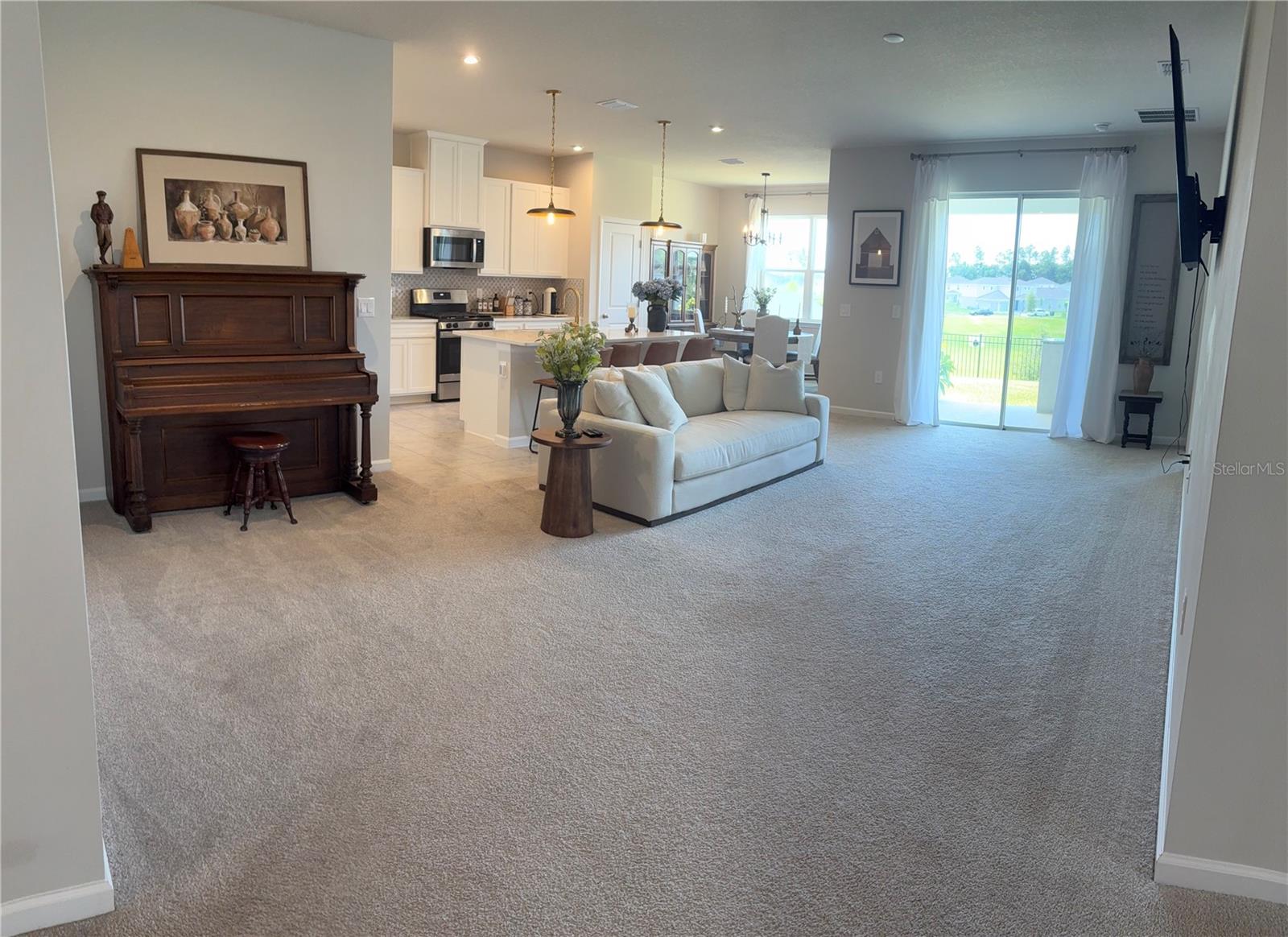 You will truly enjoy this newly built 2024 Harrison model. This home offers an open floor plan with a large kitchen island for entertaining family and friends. The kitchen is designed with a large island with quartz counter tops, two pantries, plenty of cabinet space and a gas stove. The beautiful owner suite offers a dual sink vanity, a large walk-in closet, tiled shower to the ceiling, and a private commode area. The foyer is finished with attractive millwork for an upscale entrance. Enjoy peaceful evenings on the lanai overlooking your beautiful backyard. New vinyl fencing is installed on the left and right side of the home in the backyard with aluminum fencing across the rear. Come and enjoy plenty of outdoor recreation in a beautiful home in Parkview preserve offering abundant community amenities to include a playground, dog park, walking trails and a beautiful pool and cabana.