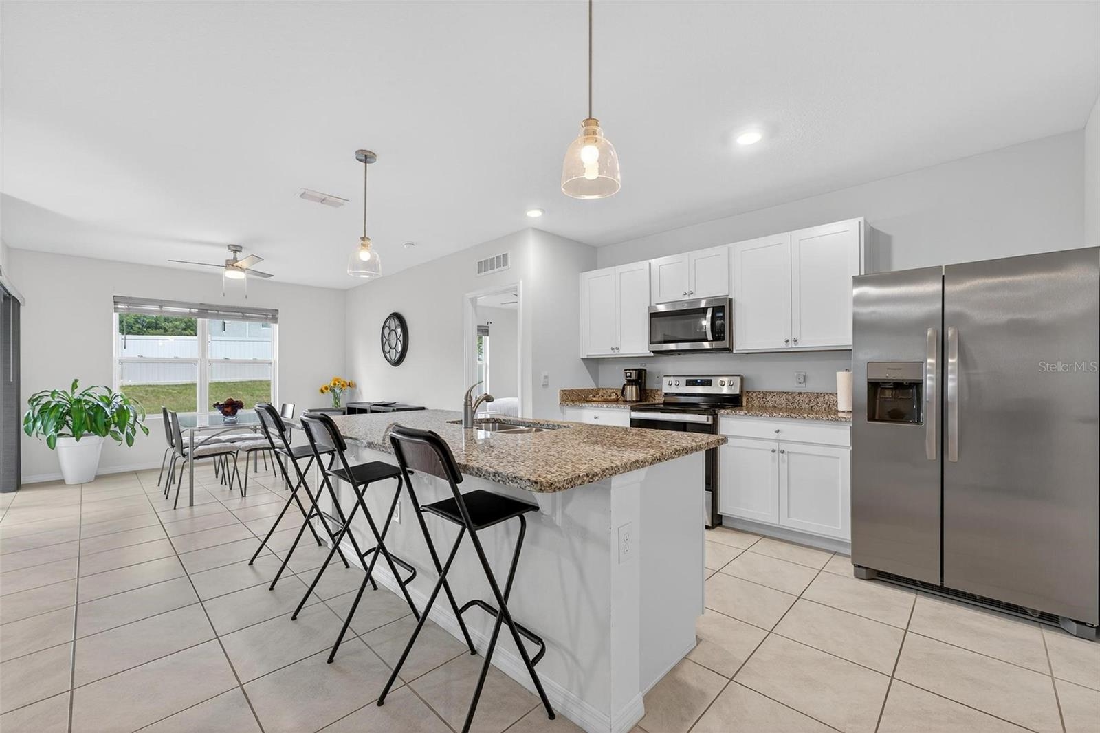 Modern Smart Home with Designer Touches in Apopka! Welcome to 5372 Palomino Place — a beautifully upgraded 3-bedroom, 2-bathroom smart home offering comfort, style, and convenience in one of Apopka’s most desirable neighborhoods. Built with durable concrete block construction and enhanced with smart home technology, this property is perfect for families, first-time buyers, or anyone seeking low-maintenance living with modern flair. Step inside to an open-concept layout featuring a gourmet kitchen with 18” x 18” ceramic tile flooring, 36” custom cabinetry, granite countertops, stainless steel appliances, and a large center island—ideal for cooking, entertaining, or casual dining. The spacious great room flows effortlessly to a covered lanai, leading to a fully fenced backyard—perfect for pets, play, or relaxing in your private outdoor space. Enjoy the community’s resort-style amenities, including a sparkling swimming pool and green spaces where you can unwind and connect with nature. Located just minutes from Publix, the Apopka Amphitheater, local parks, and sports courts, plus easy access to SR-429, Mount Dora, Winter Garden, and Orlando—this home combines peaceful living with unbeatable convenience. Don’t miss your chance to own this move-in-ready gem—schedule your private showing today!