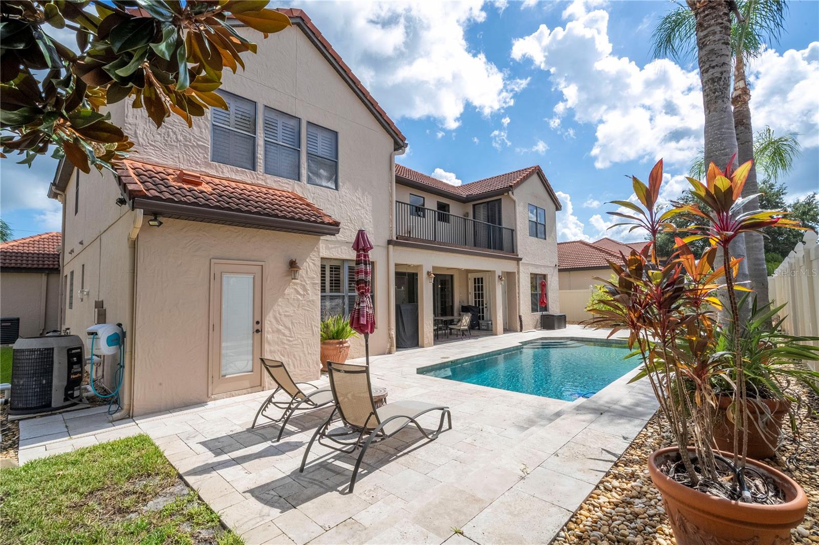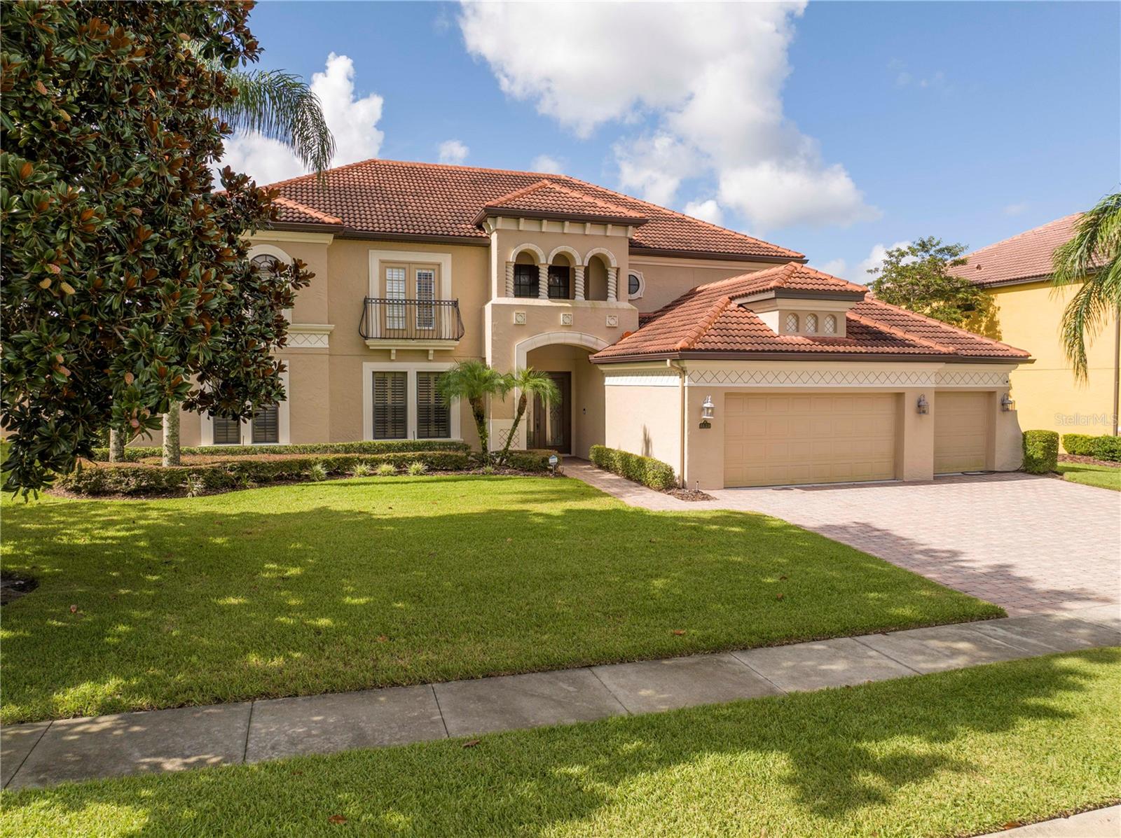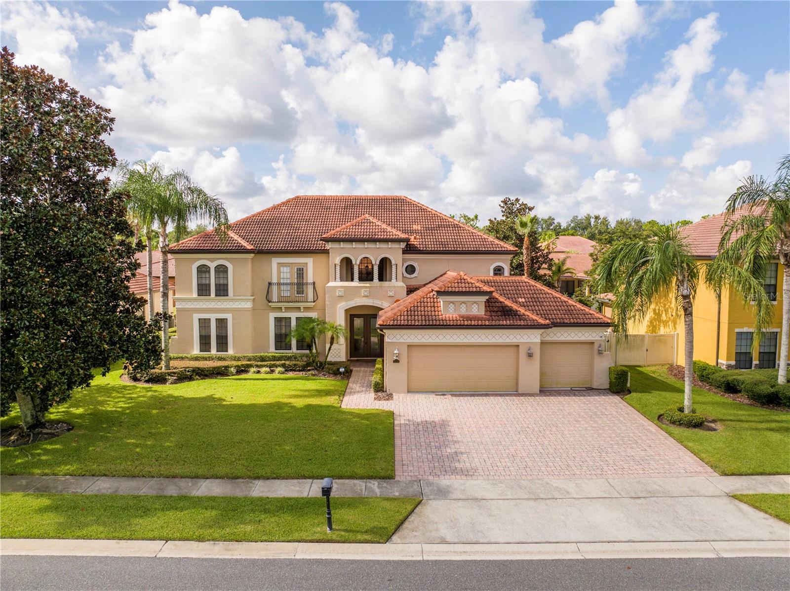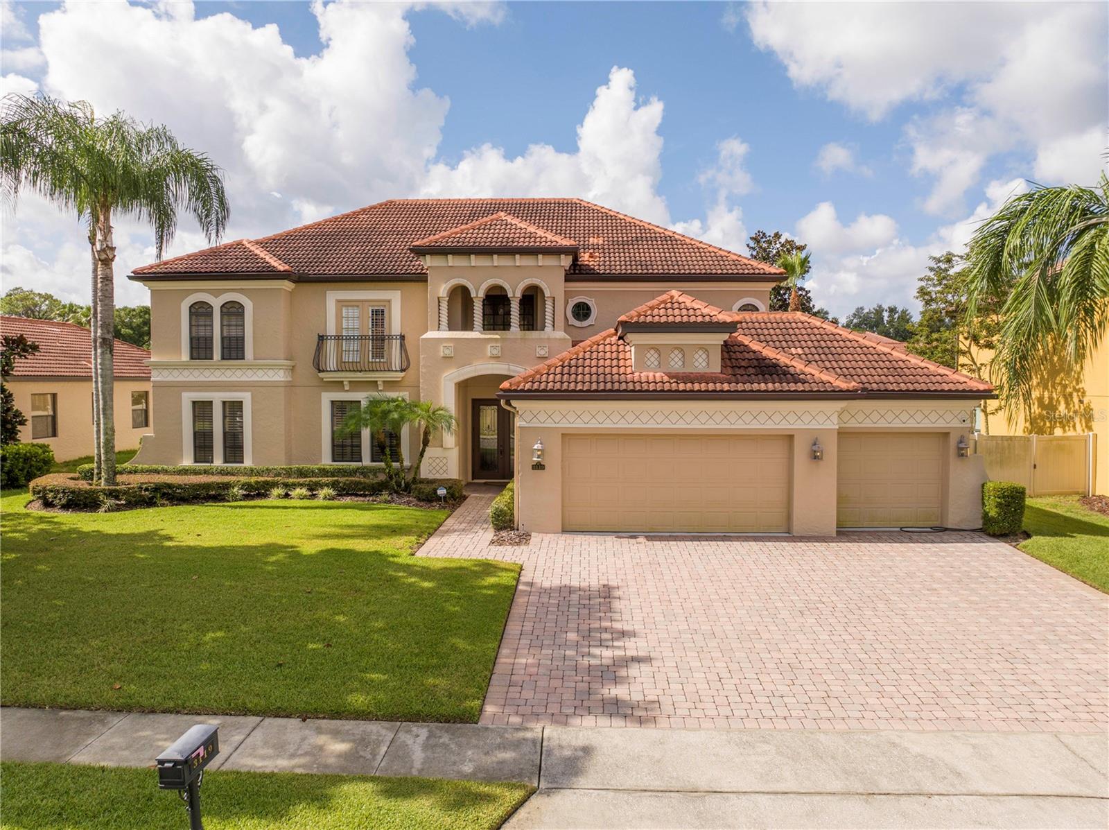 !!!PRICE REDUCED!!! Spacious and elegant Brooke Deluxe model by Mercedes Homes, built in 2007 and loaded with upgrades! This timeless 2-story Mediterranean-style residence features 6 bedrooms, 4 full bathrooms, loft, bonus/media room, and over 4,000 sqft of living space. Highlights include: First-floor Primary Suite with spa bath & custom walk-in closet. Gourmet kitchen: Granite countertops, double ovens, wood cabinetry, island with vegetable sink, and large walk-in pantry, formal living & dining, open-concept family room, and a flexible guest suite/office on main floor. Upstairs: 4 bedrooms, open loft , and 18x20 bonus/media room, theater with wet bar. Plantation shutters throughout and abundant natural light. Outdoor paradise with: Heated saltwater pool, with travertine deck, pebble finish & water features, poolside half bath, vinyl privacy fence, lush landscaping, and covered lanai, French doors lead to a second-floor balcony deck. Additional features: 3-zone HVAC, intercom, recirculating hot water, active air purifiers, recessed lanai sliders, laundry room with custom cabinetry & sink. Located in a gated community near Wekiva Springs State Park. This home is perfect for entertaining, multigenerational living, or enjoying Florida outdoor living year-round! Schedule your private showing today!
