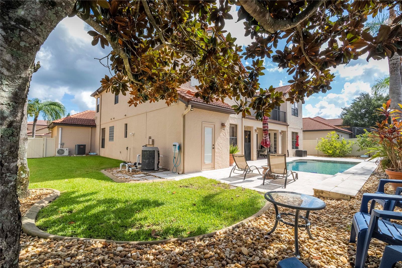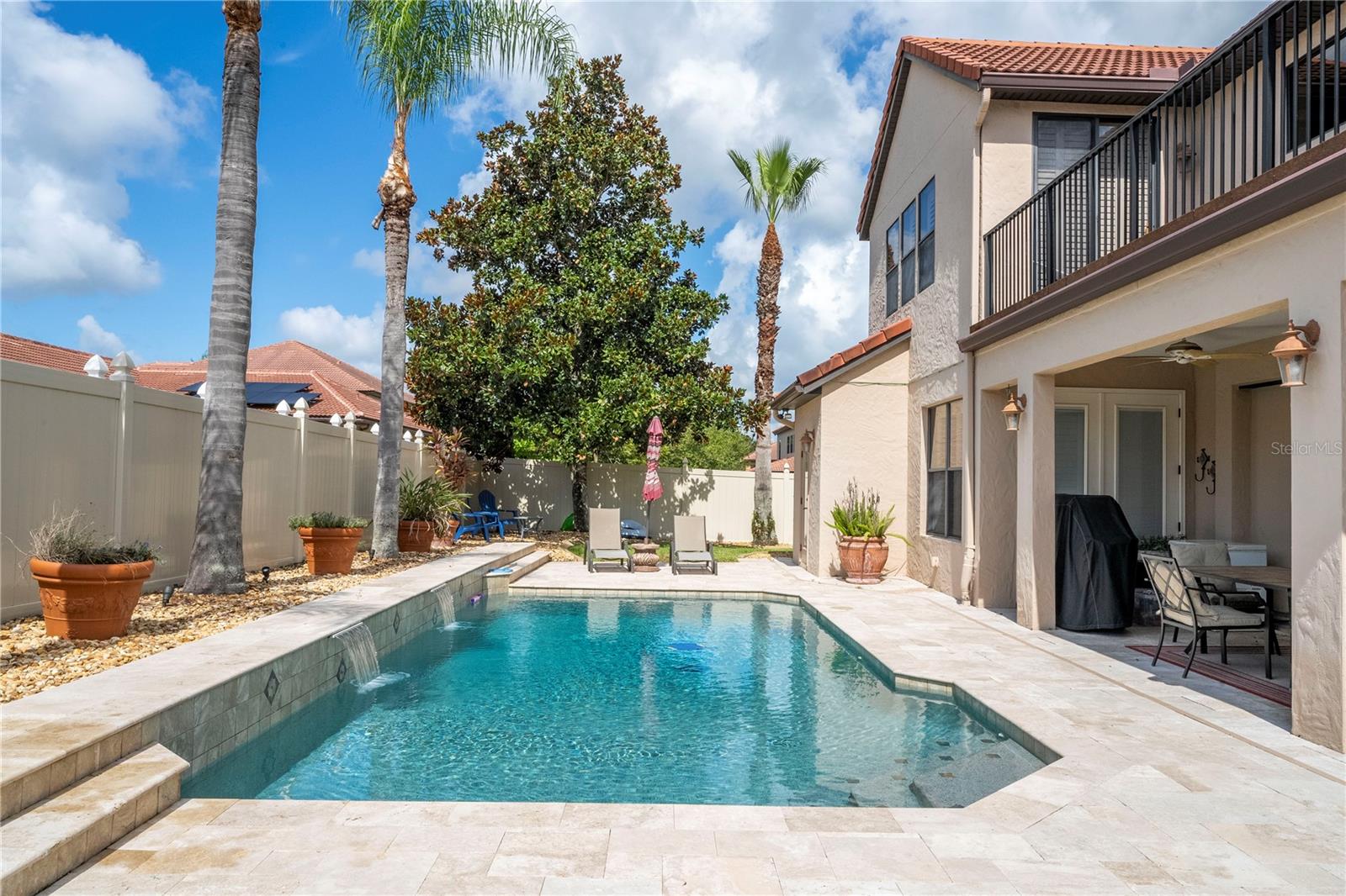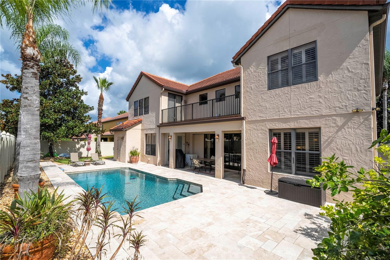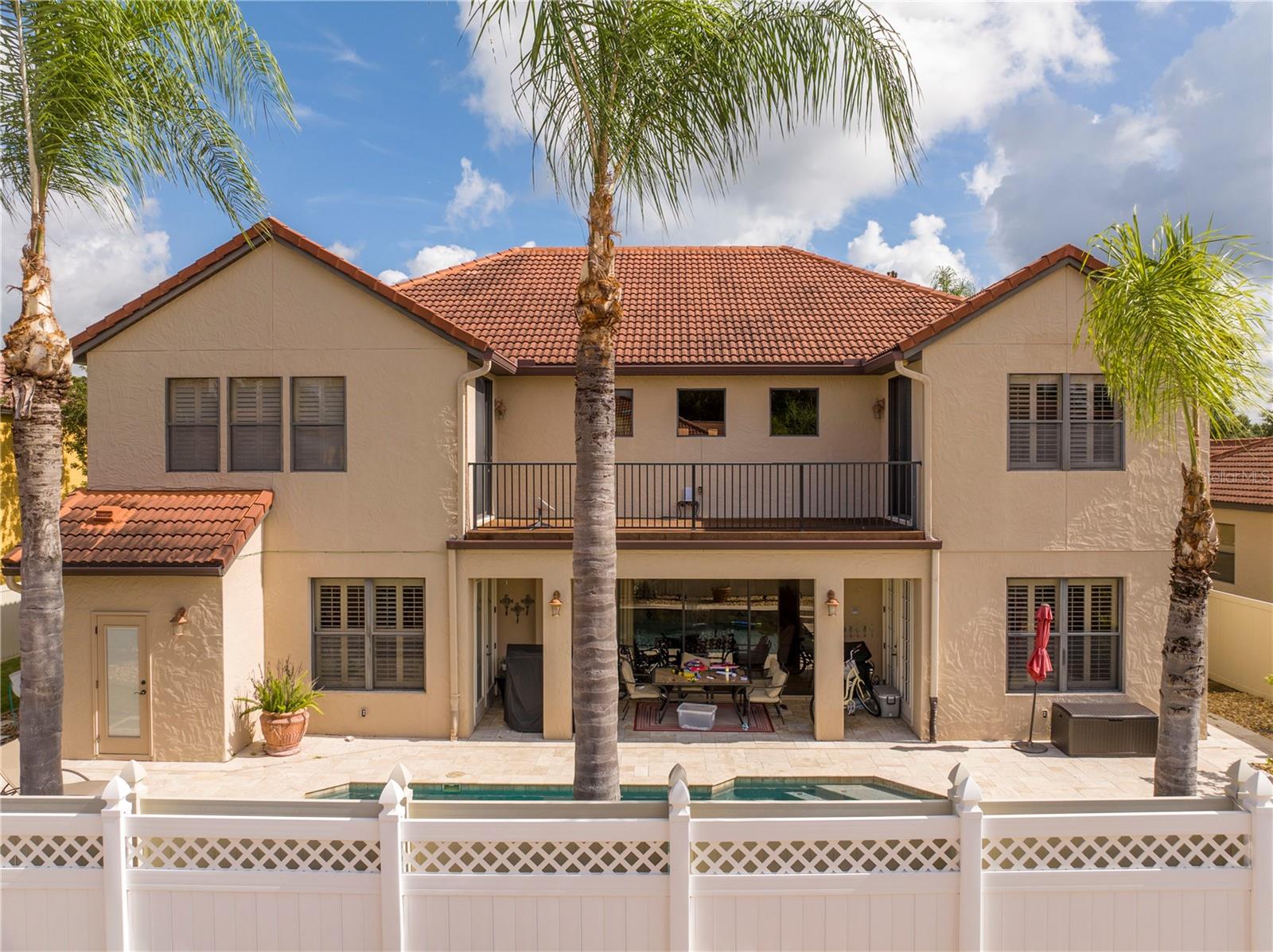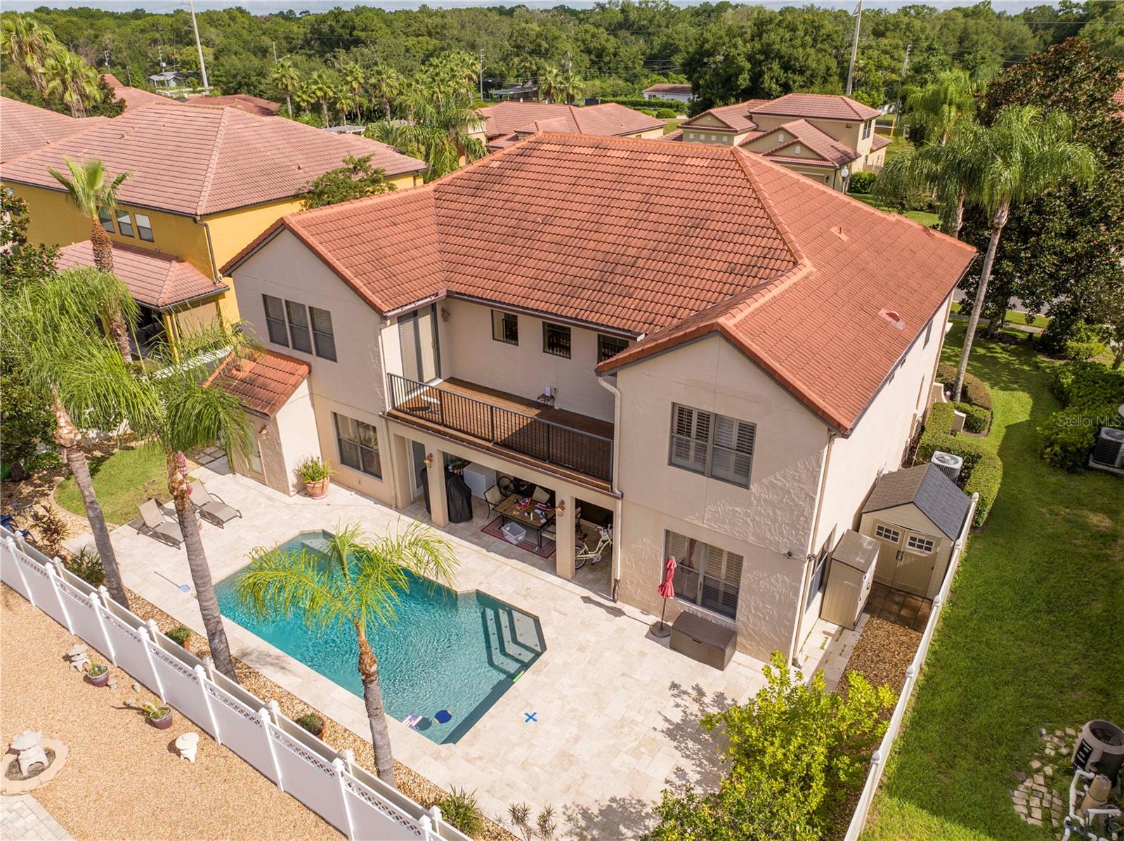 !!!PRICE REDUCED!!! Spacious and elegant Brooke Deluxe model by Mercedes Homes, built in 2007 and loaded with upgrades! This timeless 2-story Mediterranean-style residence features 6 bedrooms, 4 full bathrooms, loft, bonus/media room, and over 4,000 sqft of living space. Highlights include: First-floor Primary Suite with spa bath & custom walk-in closet. Gourmet kitchen: Granite countertops, double ovens, wood cabinetry, island with vegetable sink, and large walk-in pantry, formal living & dining, open-concept family room, and a flexible guest suite/office on main floor. Upstairs: 4 bedrooms, open loft , and 18x20 bonus/media room, theater with wet bar. Plantation shutters throughout and abundant natural light. Outdoor paradise with: Heated saltwater pool, with travertine deck, pebble finish & water features, poolside half bath, vinyl privacy fence, lush landscaping, and covered lanai, French doors lead to a second-floor balcony deck. Additional features: 3-zone HVAC, intercom, recirculating hot water, active air purifiers, recessed lanai sliders, laundry room with custom cabinetry & sink. Located in a gated community near Wekiva Springs State Park. This home is perfect for entertaining, multigenerational living, or enjoying Florida outdoor living year-round! Schedule your private showing today!