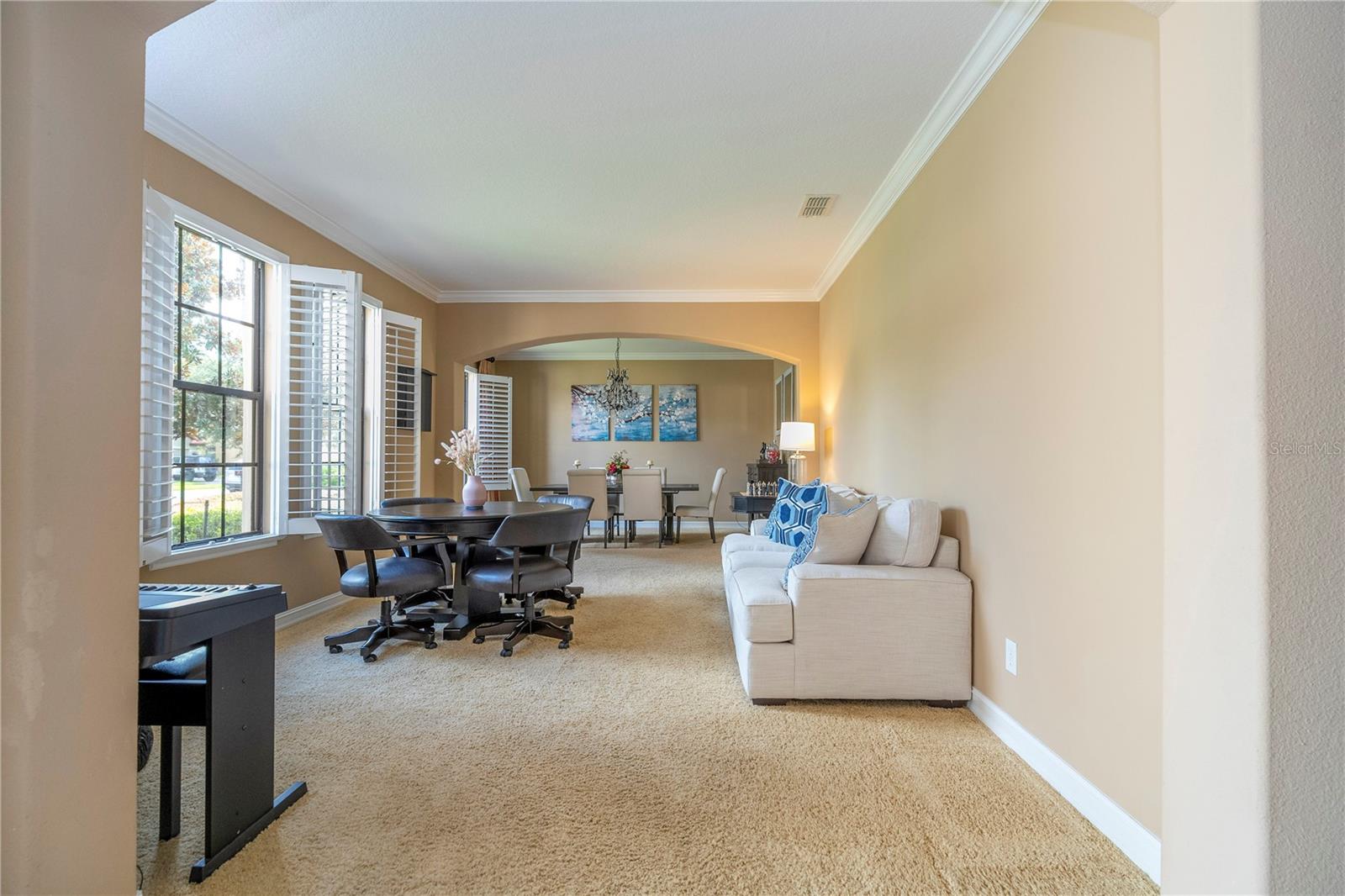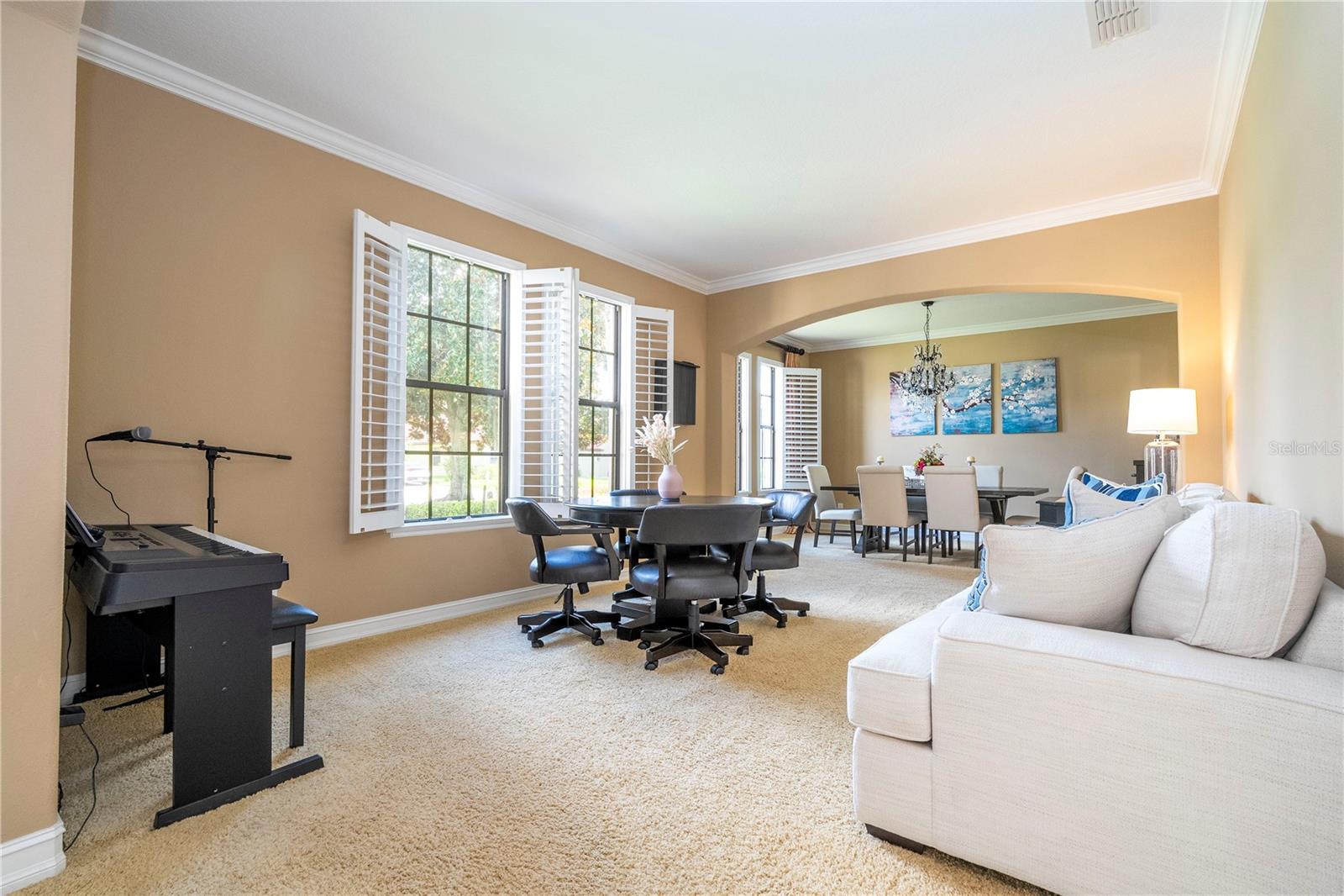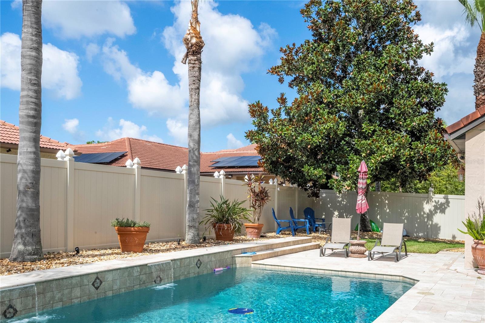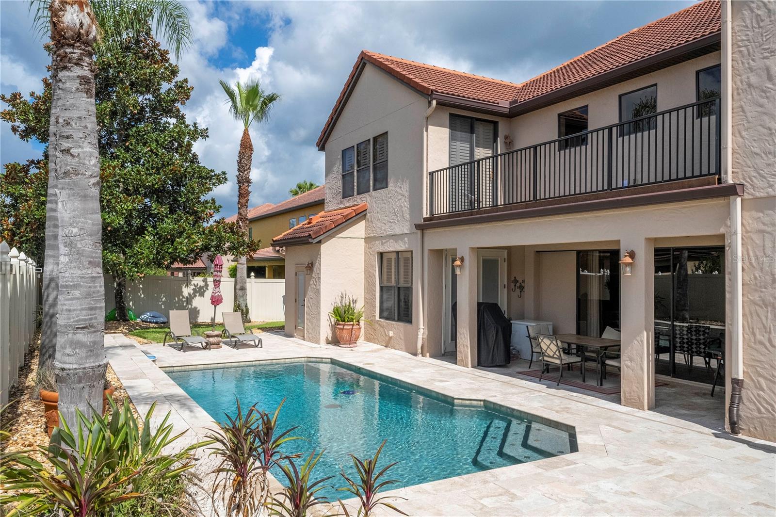 !!!PRICE REDUCED!!! Spacious and elegant Brooke Deluxe model by Mercedes Homes, built in 2007 and loaded with upgrades! This timeless 2-story Mediterranean-style residence features 6 bedrooms, 4 full bathrooms, loft, bonus/media room, and over 4,000 sqft of living space. Highlights include: First-floor Primary Suite with spa bath & custom walk-in closet. Gourmet kitchen: Granite countertops, double ovens, wood cabinetry, island with vegetable sink, and large walk-in pantry, formal living & dining, open-concept family room, and a flexible guest suite/office on main floor. Upstairs: 4 bedrooms, open loft , and 18x20 bonus/media room, theater with wet bar. Plantation shutters throughout and abundant natural light. Outdoor paradise with: Heated saltwater pool, with travertine deck, pebble finish & water features, poolside half bath, vinyl privacy fence, lush landscaping, and covered lanai, French doors lead to a second-floor balcony deck. Additional features: 3-zone HVAC, intercom, recirculating hot water, active air purifiers, recessed lanai sliders, laundry room with custom cabinetry & sink. Located in a gated community near Wekiva Springs State Park. This home is perfect for entertaining, multigenerational living, or enjoying Florida outdoor living year-round! Schedule your private showing today!
