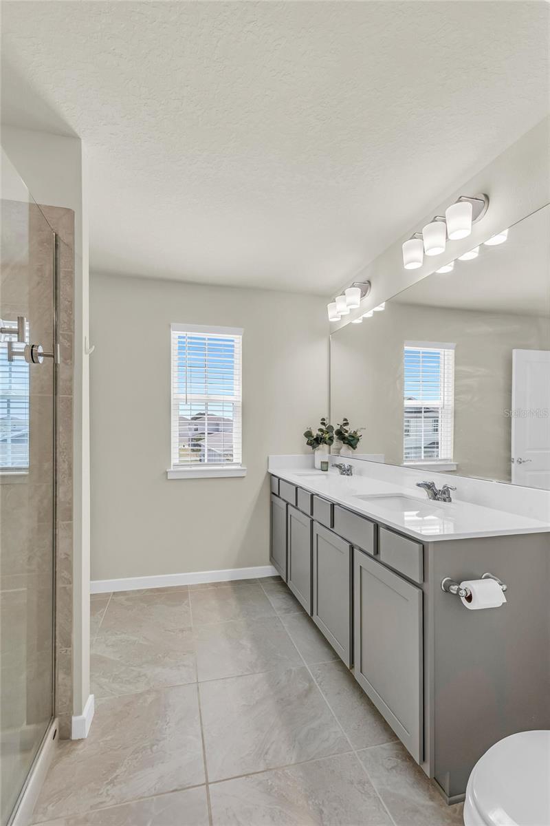 This 1-year-old home is light and bright and loaded with valuable aftermarket extras: a breezeway with a small yard, modern levolor window blinds, upgraded master glass shower door, home security with electronic locks and sensors, smart home features including wifi, wifi-enabled thermostat and garage control on an app, and a ring doorbell. This 4/3 Jasmine floor plan sold out quickly and includes a popular first-floor bedroom convenient for a home office or guest/flex room. Features an upgraded premier package including gray cabinetry, arabesque backsplash in kitchen, lagoon countertop in kitchen and bath, wall tile positano, 21x21 floor tile Positano, upgraded wall paint, and a tankless water heater. More seller upgrades include a large refrigerator with bottom freezer drawer, ceiling fans, and lights. Neighborhood pool, playground and walking trail.