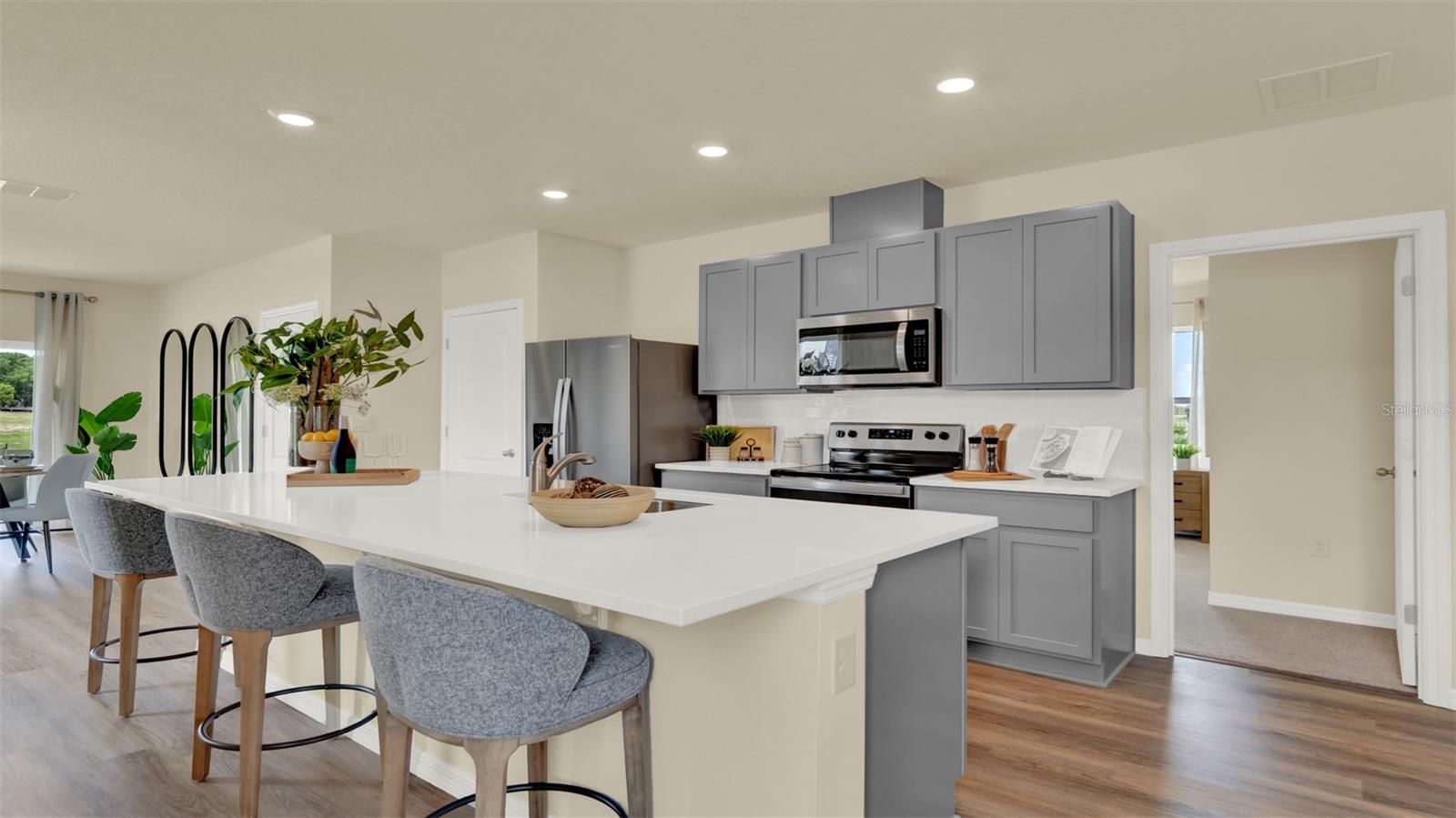 "Welcome to the Baldwin, a stunning four-bedroom, two-bathroom home located in the Crossroads at Kelly Park community. As you enter the foyer to this beautifully designed home, you are greeted by with an open concept living space featuring carpet and luxury vinyl flooring throughout. The kitchen overlooks the dining and living room, while having a view to the oversized outdoor living space. The well-appointed kitchen features an island with bar seating, plentiful cabinet with beautiful quartz countertops and stainless-steel appliances, making entertaining a breeze. Bedroom one, located off the living space, has an en suite bathroom with double vanity and spacious walk-in closet providing ample space for storage. Three additional bedrooms and one full bath are located at the front of the home along with a closet and laundry room. The Baldwin seamlessly integrates smart home technology, offering convenience and enhanced living experiences. With its spacious layout and contemporary finishes, the Baldwin in Crossroads at Kelly Park provides the perfect blend of style and functionality for today's discerning homeowner." *Photos are of similar model but not that of exact house. Pictures, photographs, colors, features, and sizes are for illustration purposes only and will vary from the homes as built. Home and community information including pricing, included features, terms, availability and amenities are subject to change and prior sale at any time without notice or obligation. Please note that no representations or warranties are made regarding school districts or school assignments; you should conduct your own investigation regarding current and future schools and school boundaries.*