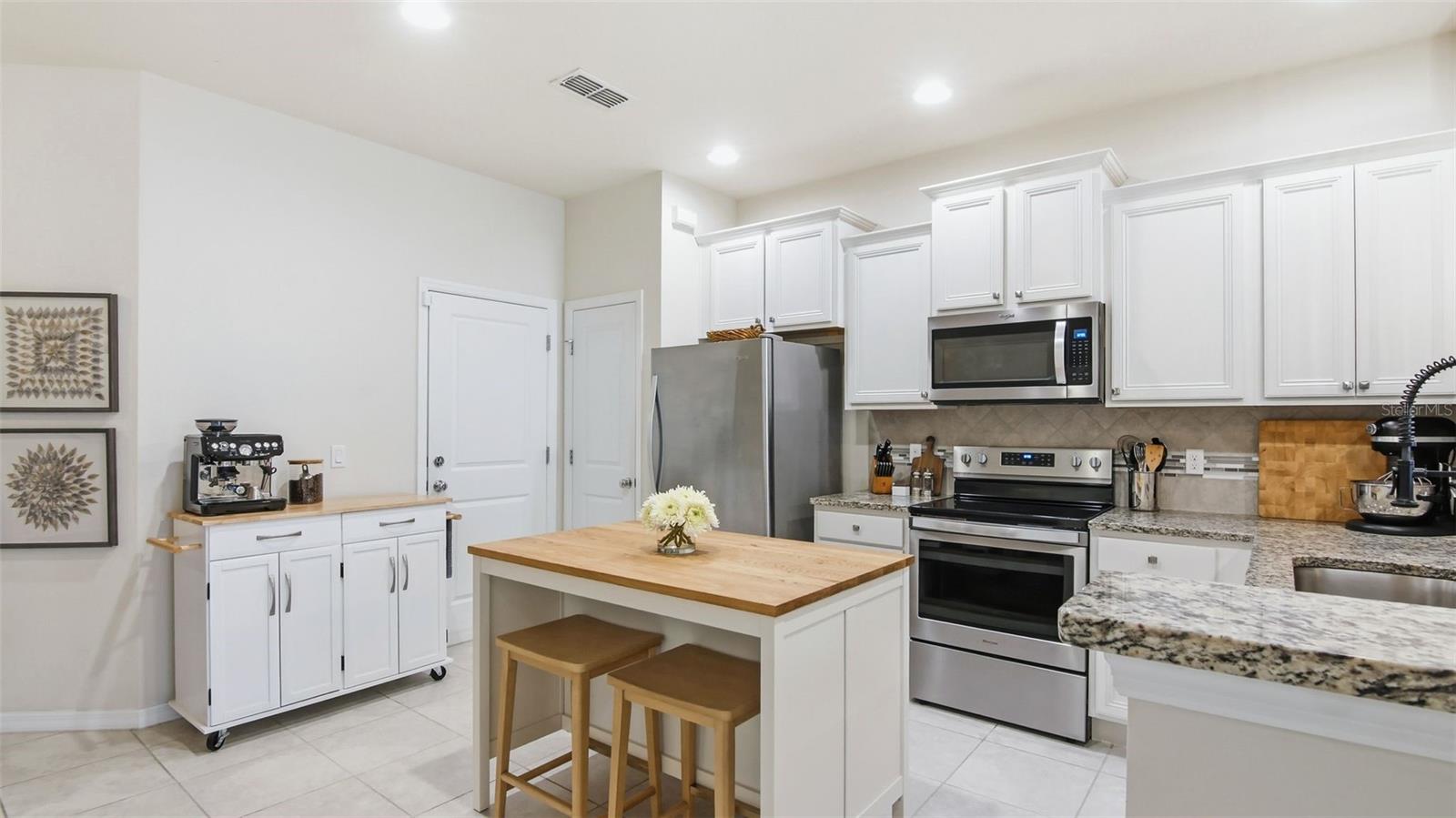 Welcome to this beautifully maintained 3-bedroom, 2.5-bath townhome that perfectly balances style and function. The open, bright layout feels inviting and spacious, with living and dining areas that flow seamlessly for relaxing or entertaining. The kitchen features granite countertops, stainless steel appliances, butcher block island, and plenty of storage - ideal for both cooking and everyday living. Upstairs, the primary suite offers a quiet retreat with a walk-in closet and modern bath, while two additional bedrooms provide flexibility for guests or a home office. A convenient upstairs laundry, perfectly positioned between the bedrooms, adds an extra touch of practicality. Enjoy the private patio, attached garage, and low-maintenance lifestyle in a well-kept, gated community. Walk out your back door to enjoy all the amenities the community presents- like the gorgeous pool, pool cabana & playground. With convenient access to Highways 429 and 414, getting around Orlando and throughout Central Florida couldn’t be easier. If you’re looking for a move-in-ready home that’s been genuinely well cared for, 3013 Alessa Loop delivers.
