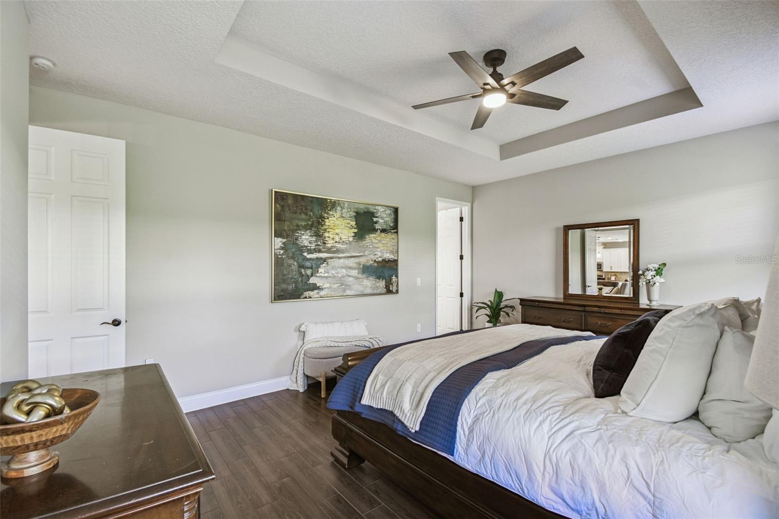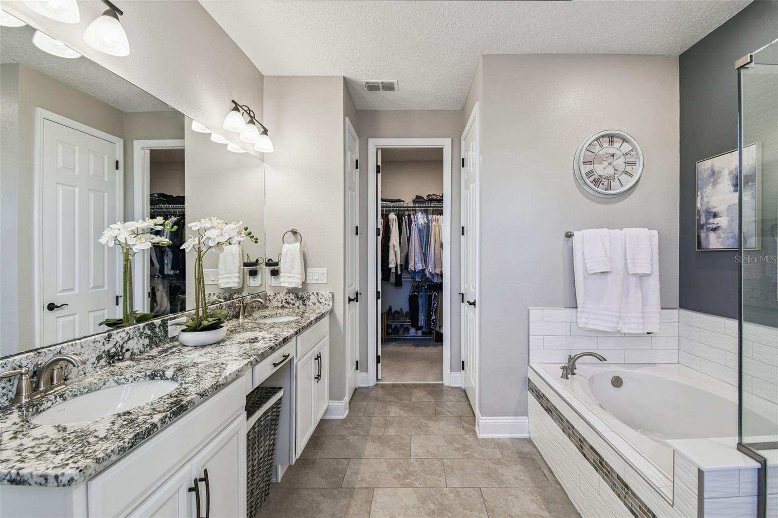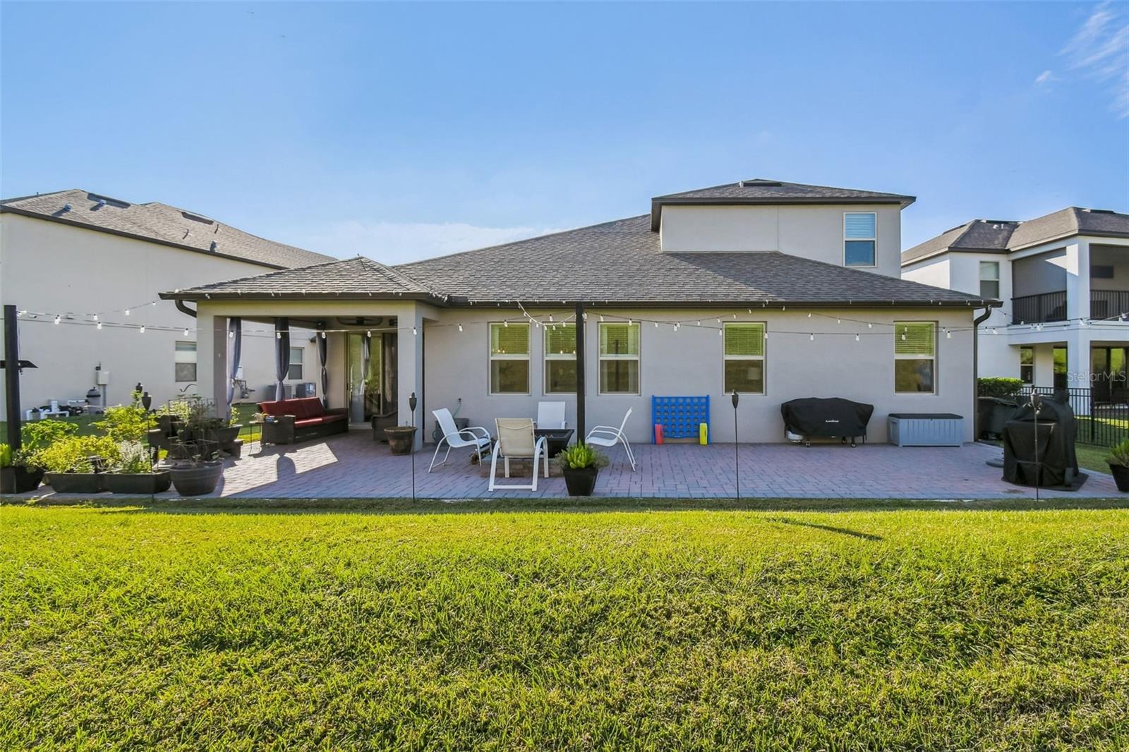 Welcome to this beautifully maintained 4-bedroom, 4-bath home in the gated community of Vistas at Waters Edge. Built in 2020, this 2,958 sq. ft. residence offers an open-concept layout designed for modern living. The gourmet kitchen features 42” cabinets, granite countertops, a farmhouse sink, stainless steel GE appliances, and a large island overlooking the great room. The spacious owner’s suite includes a tray ceiling, oversized walk-in closet, and a luxurious bath with dual sinks, a soaking tub, and separate shower. Additional features include 8’ interior doors, upgraded baseboards, and a covered lanai perfect for relaxing or entertaining. Conveniently located near shopping, dining, parks, and major highways. Move-in ready and shows like new!