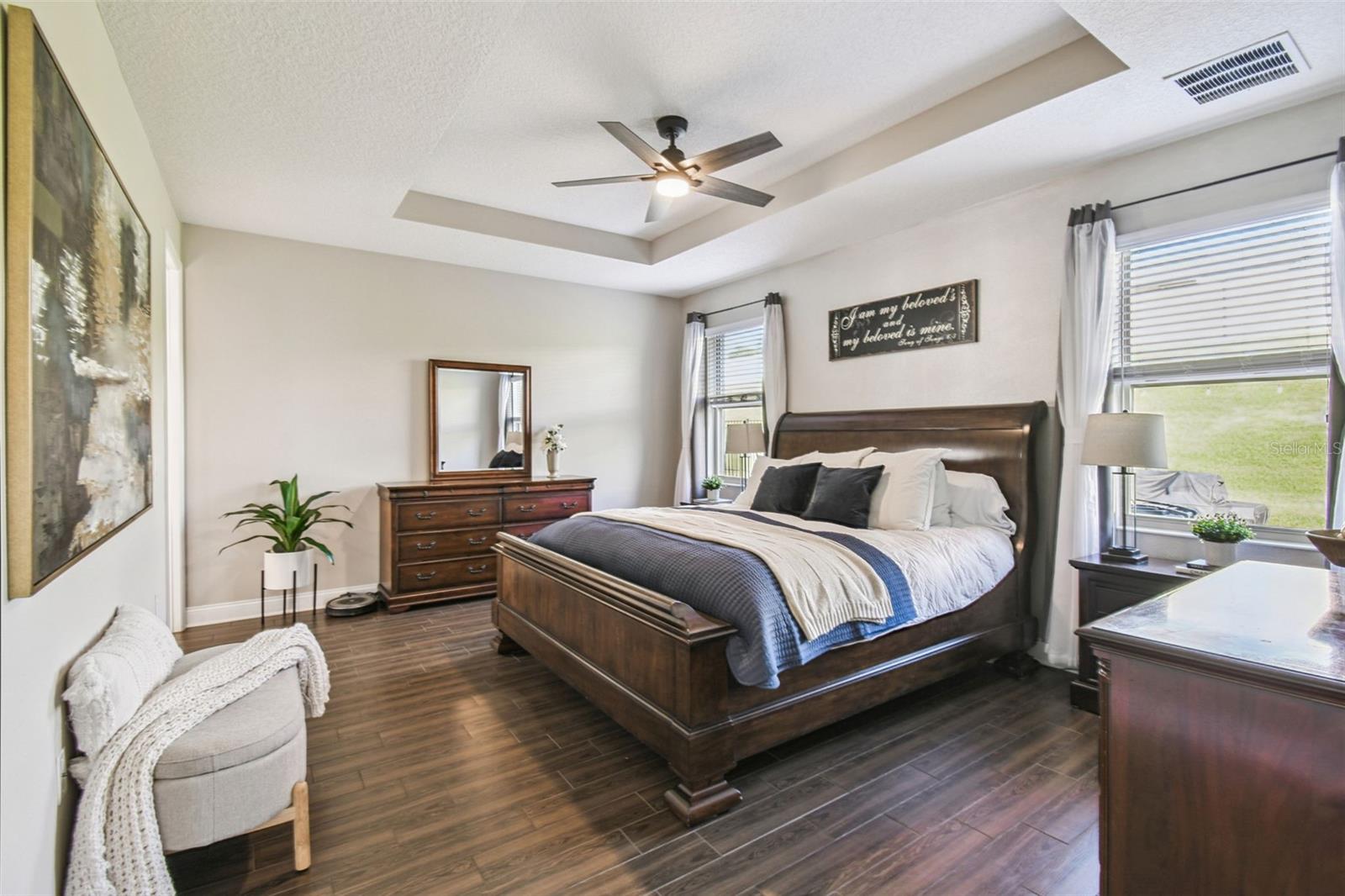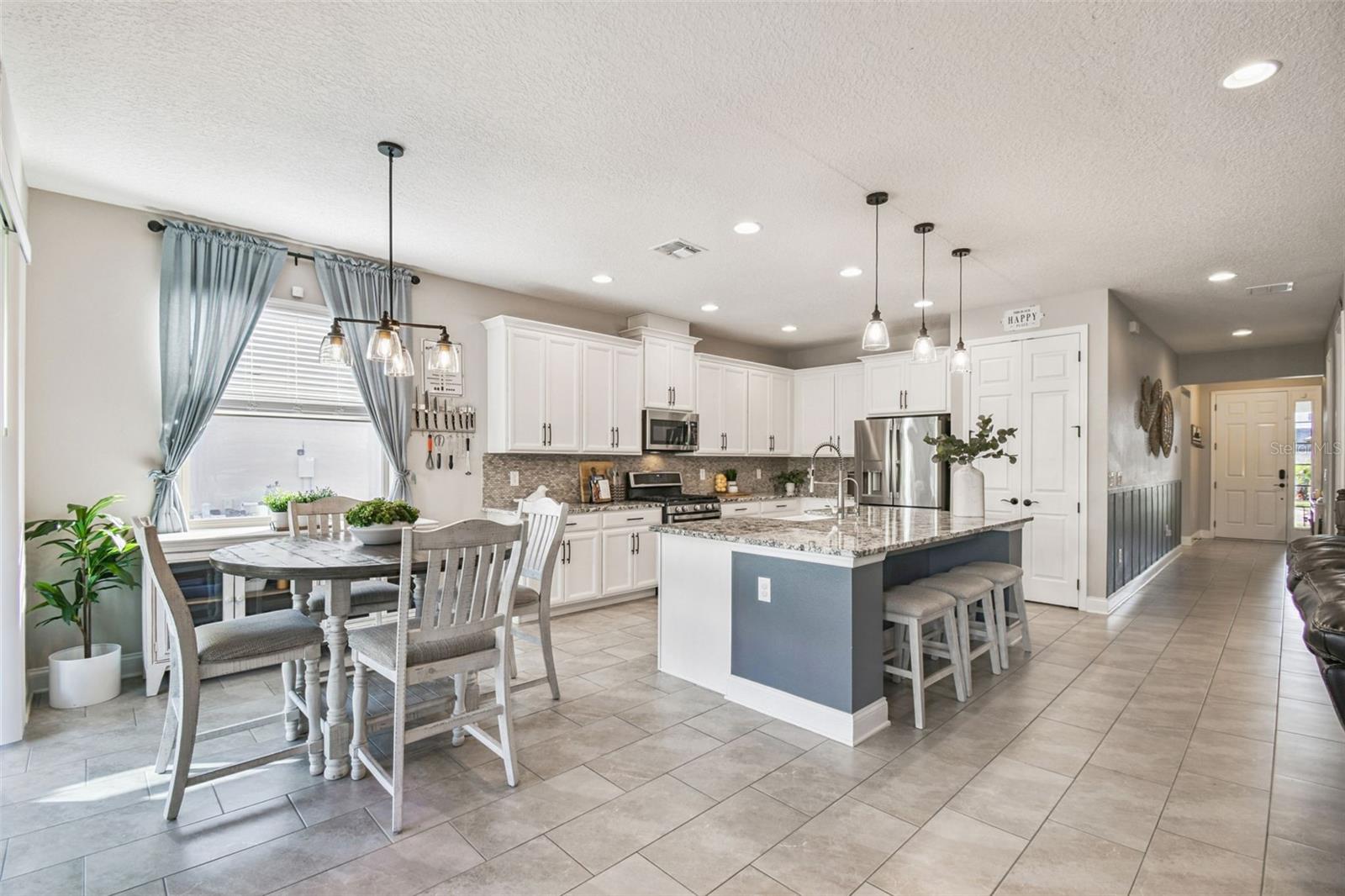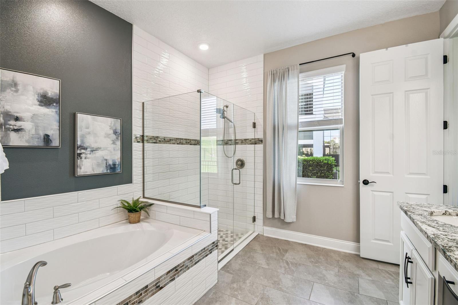 Welcome to this beautifully maintained 4-bedroom, 4-bath home in the gated community of Vistas at Waters Edge. Built in 2020, this 2,958 sq. ft. residence offers an open-concept layout designed for modern living. The gourmet kitchen features 42” cabinets, granite countertops, a farmhouse sink, stainless steel GE appliances, and a large island overlooking the great room. The spacious owner’s suite includes a tray ceiling, oversized walk-in closet, and a luxurious bath with dual sinks, a soaking tub, and separate shower. Additional features include 8’ interior doors, upgraded baseboards, and a covered lanai perfect for relaxing or entertaining. Conveniently located near shopping, dining, parks, and major highways. Move-in ready and shows like new!