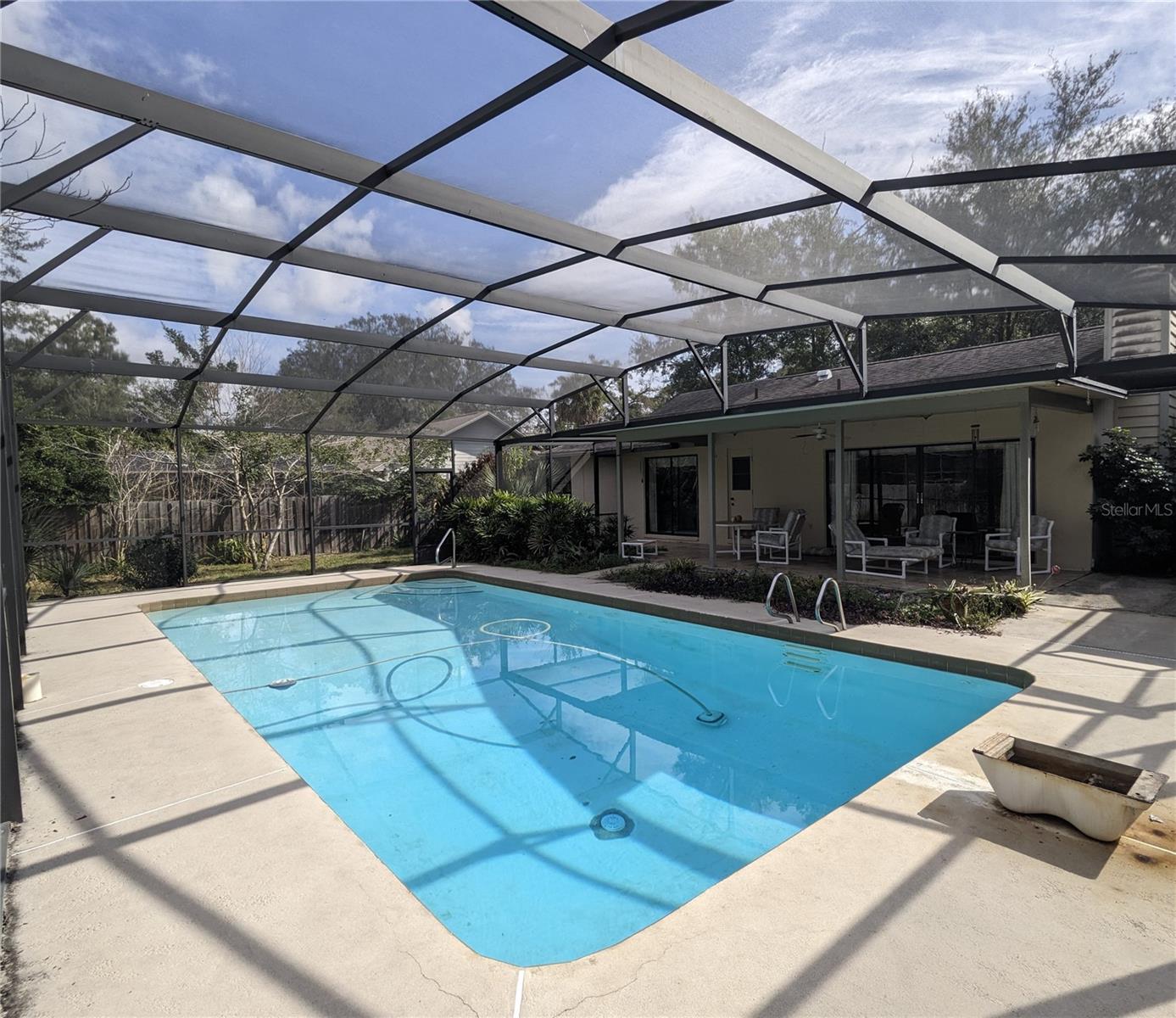 Just listed! This four-bedroom, two-bath screened pool home with a stone fireplace sits on a large (over 1/3 of an acre) lot with stately oaks and mature landscaping in the highly sought-after Bent Oak subdivision. This well-built home includes an inside utility room conveniently located between the oversized garage and kitchen. Privacy-fenced. Sprinkler system. Priced way below market value, ready for updating to your personal taste to make it yours!