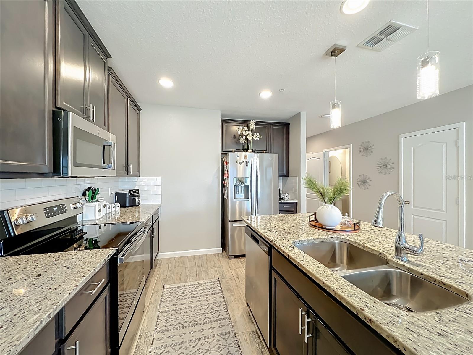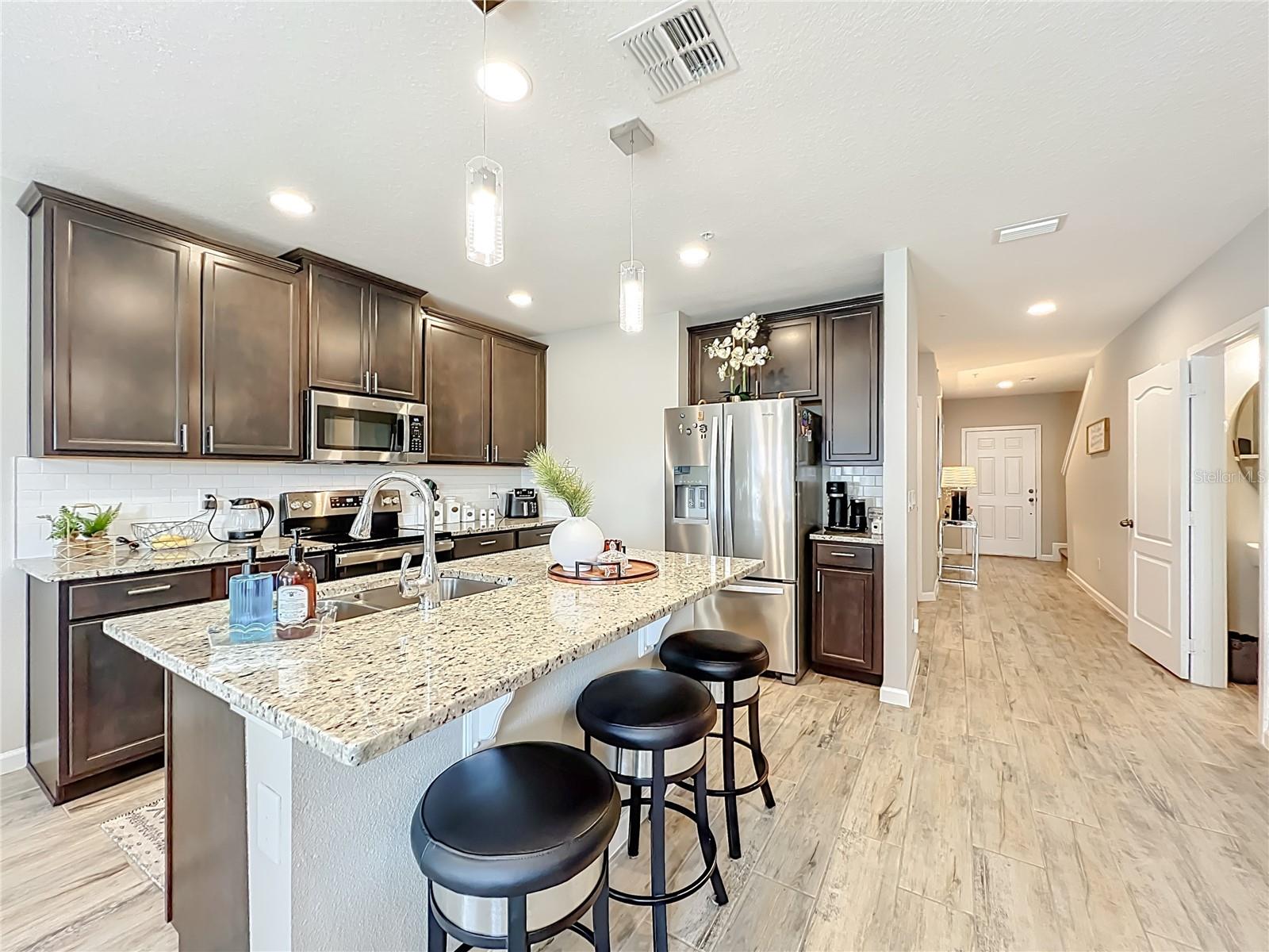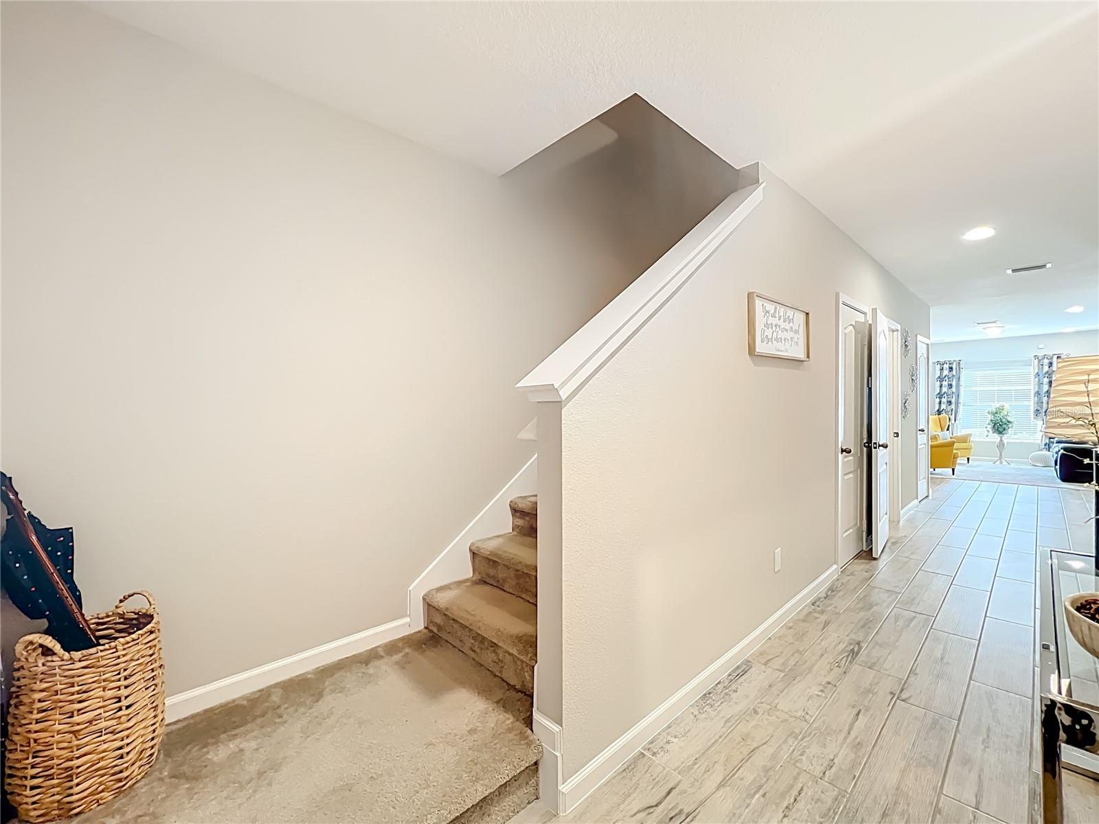 Welcome home to this nearly new 3 bedroom, 2.5 bath townhome located in a gated community near the 429, AdventHealth Apopka, shopping, dining, and everyday conveniences. This well-kept home shows pride of ownership and is ready for its next owner. The open floor plan offers great space for daily living and entertaining. The kitchen features granite countertops, 42" upper cabinets, stainless steel appliances, and plenty of storage. Ceramic tile throughout the first floor makes for easy care and a clean, modern look. Just off the living area, step out to your screened patio and enjoy peaceful views of the conservation area. Upstairs you’ll find all three bedrooms plus a flexible loft space, perfect for a home office, play area, or second living space. The home also includes a 1-car garage and is in excellent condition from top to bottom. The community offers great amenities including a resort-style pool and dog park, all within a secure gated setting.