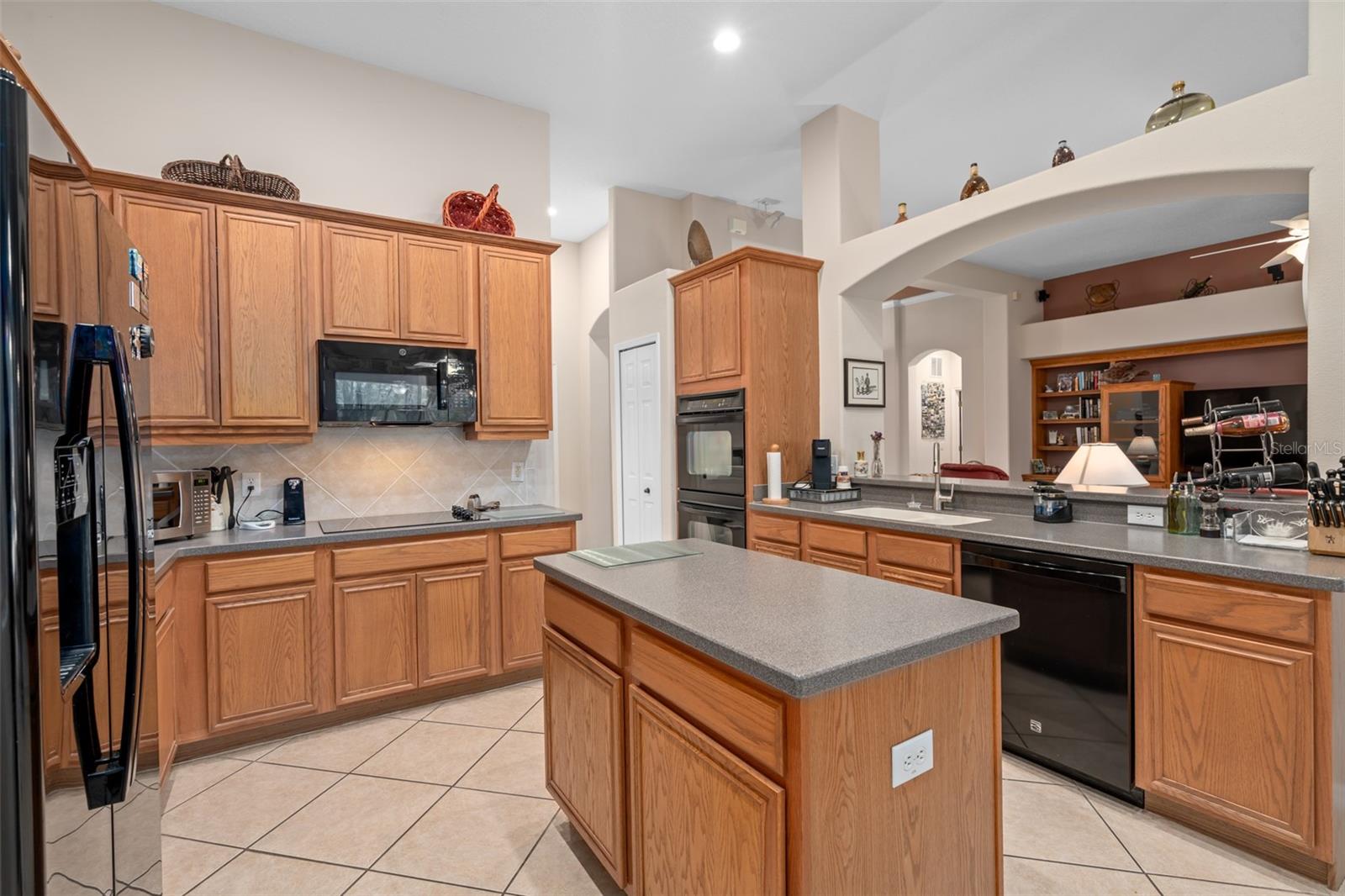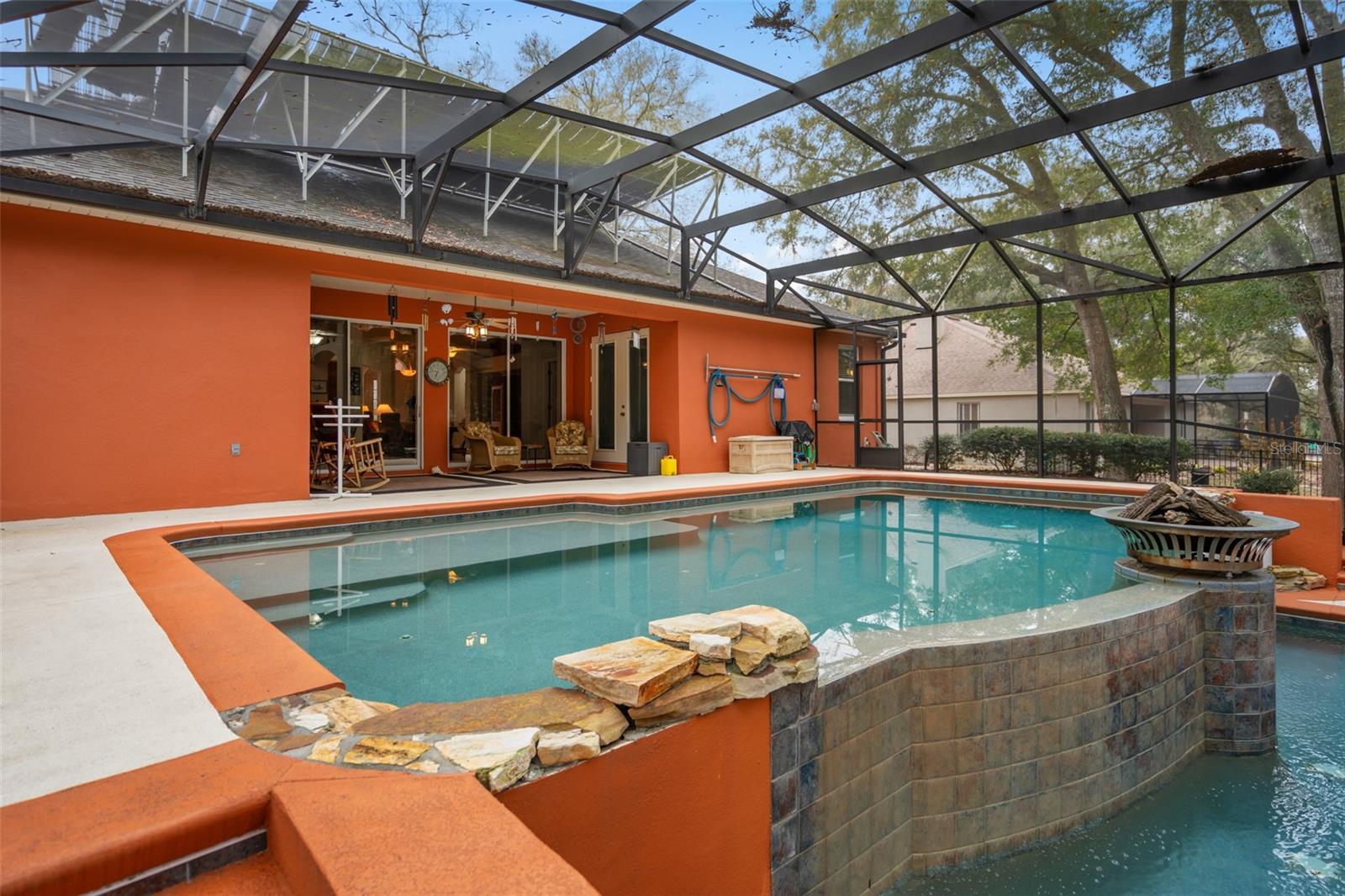 Tucked away in the woods of Rock Springs Ridge in Apopka is this Custom Built 2,823 sq ft Block and Stucco One Story residence with an INFINITY EDGE SALT WATER HEATED POOL on a WOODED Half Acre. Relax and Enjoy your Large Screened Lanai with Pool area and the serenity of the Wooded Lot setting. The entrance sets the tone for this wonderful home as you pass the calming water feature. Upon Entry, you will find a spacious Foyer and Office with an adjacent bathroom 3. Continuing on, is a Very Open Split Bedroom Floor Plan with Architectural Accents, Rounded Corners, Ceramic Tile laid on a Diagonal and Laminate in the Office, Dining Room and Great Room. 11 foot Ceilings are featured in the Main Living areas of the home. A built in Entertainment Center with a BOSE Surround System will add another dimension for those movie or sports viewing times. The Large Dining and Great Rooms will accommodate large gatherings and has a great sense of openness too. A spacious Kitchen with Built-in Double Ovens (Upper is Convection), and Cooktop, Pull-Outs under the cooktop, plenty of prep area and a nice size Island will make preparing for a simple evening dinner or a Gathering seamless. Kitchen Storage is abundant with 42" Upper Solid Wood Cabinetry, and 2 Pantry Closets just adds to the convenience. Views of the Pool Area, Lanai and the tranquil back yard are abundant from the Great Room, Kitchen and Dinette. Proceeding to the Grand Primary Suite, you will find a Tray Ceiling, French Doors to the Lanai and an En-Suite with Split Comfort Height Vanities, Garden Tub, Walk-In Shower, Separate Water Closet for privacy and 2 Walk-in Closets. Bedroom 2 is spacious enough to accept a King bed and is adjacent to Bathroom 2 that features Double Sinks, Large Linen Closet with a Tub/Shower and Toilet that is separated by a Pocket Door, which makes for a convenient pool bathroom. Bedroom 3 offers a Murphy Bed with a desk. Between Bedrooms 2 and 3 is an open area. This area can be utilized as a Home Schooling area, Play area or with the addition of a wall, this could easily be Bedroom 4 if needed. An Interior Laundry Room includes the Washer, Dryer and also has a Sink for your convenience. The 35’x16’ Heated Infinity Edge Pool also features a 3’ to approximately 7’ depth, Sun Shelf, Stairs, Large Bench, Pebble Tech Finish, propane fire pit feature, child safety fence, solar cover and a Pool Rover to assist with cleaning. Heating for the pool is available from a Roof Solar System and or an Electric Heater. You can also enjoy a spacious pool deck to make entertaining simple. Updates include Roof in 3/2021, 5 ton HVAC in 3/2018, Tankless Electric Hot Water Heater 9/2023, 2 stage pool pump, pool filter, salt cell, Dishwasher and Microwave. All of the Toilets are Comfort Height. There is a whole house water softener too. The oversized garage features a 12’x7’ area for a workshop or additional indoor storage, Pull Down Attic Stairs with Attic Flooring for additional storage and a side walk through door. The Garage also has a 220 V Receptacle for EV Vehicle Charging. This home is being offered by the Original Owners who have taken meticulous care of it. Set your appointment to see this fantastic pool home on a picturesque half acre lot.