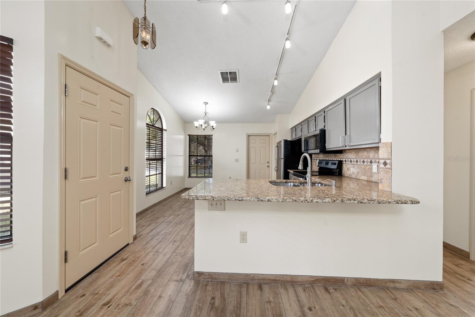 Beautiful move-in-ready home located in a quiet and established neighborhood in Apopka, offering numerous quality upgrades and stylish finishes throughout. This well-maintained property reflects pride of ownership and thoughtful renovations designed for both comfort and functionality. The interior features wood-grain ceramic tile flooring throughout the entire home, including closets, complemented by matching ceramic baseboards that provide a seamless and modern look. The spacious kitchen showcases a granite island countertop with an undermount double stainless-steel sink, garbage disposal, high-neck faucet, and a unique terrazzo backsplash, creating a beautiful and functional cooking space. Both bathrooms have been tastefully updated with custom tile finishes, including a custom granite vanity with bowl sink and trough-style faucet in the guest bathroom, along with a shower featuring dual shower heads and a built-in niche shelf. Additional highlights include marble window sills, premium Behr interior and exterior paint applied by roller for superior coverage, a freshly painted two-car garage with epoxy flake flooring, a screened-in porch with tile flooring, and a newly installed backyard fence providing privacy and outdoor enjoyment. The roof was replaced in 2022 with full peel-and-stick underlayment, offering added durability and peace of mind for future homeowners. This clean, beautifully upgraded home is truly move-in ready, conveniently located near shopping, dining, parks, and major roadways, making it a fantastic opportunity for buyers looking for comfort, style, and quality in the growing Apopka area.