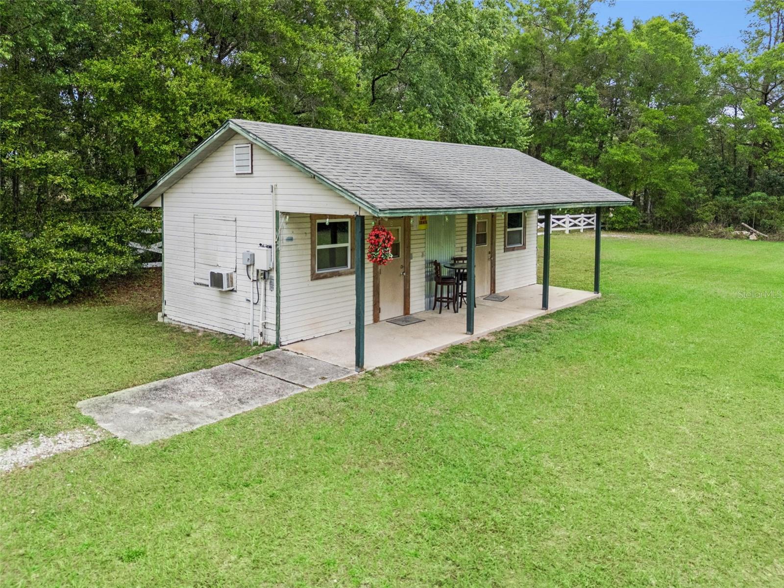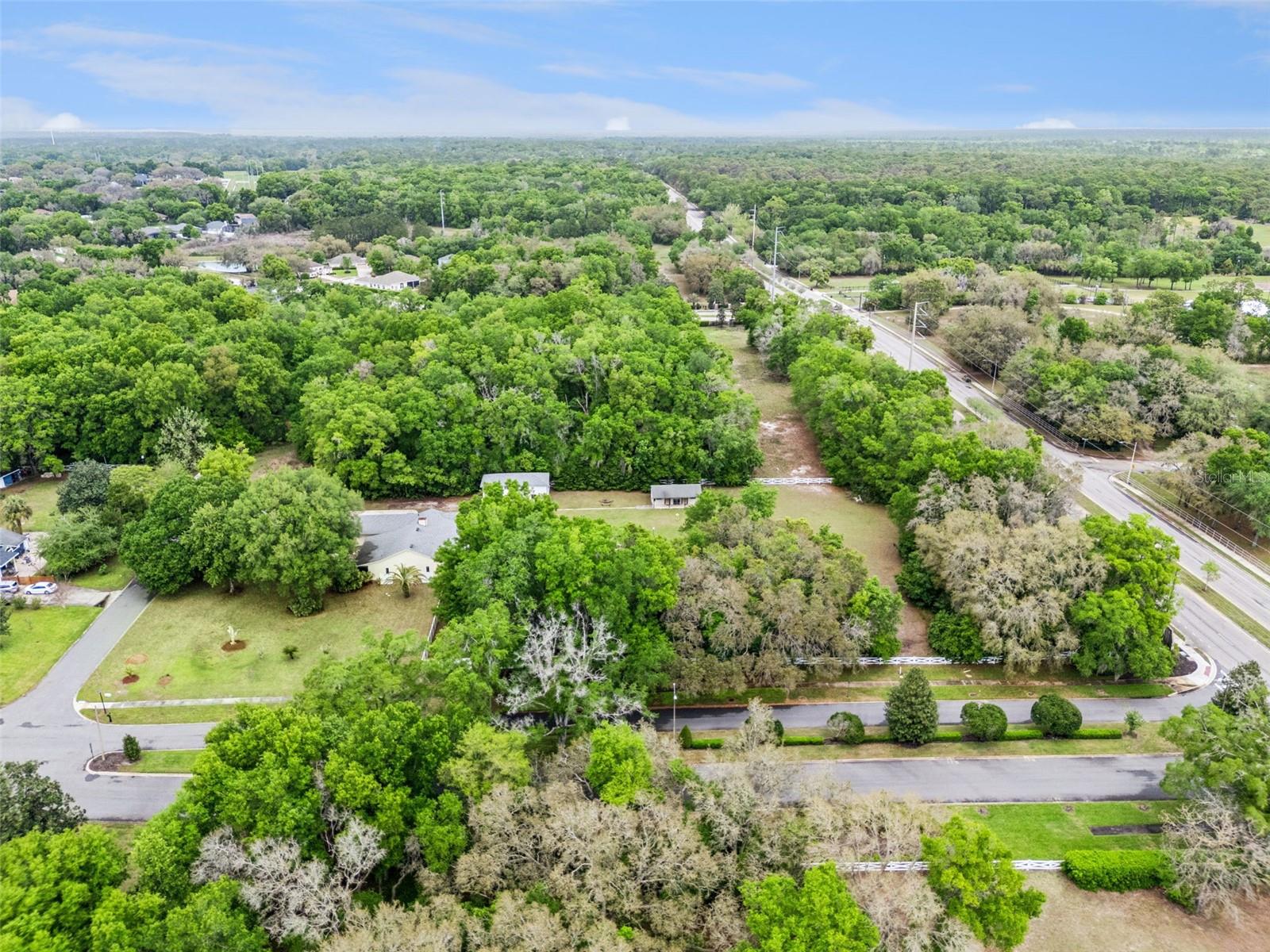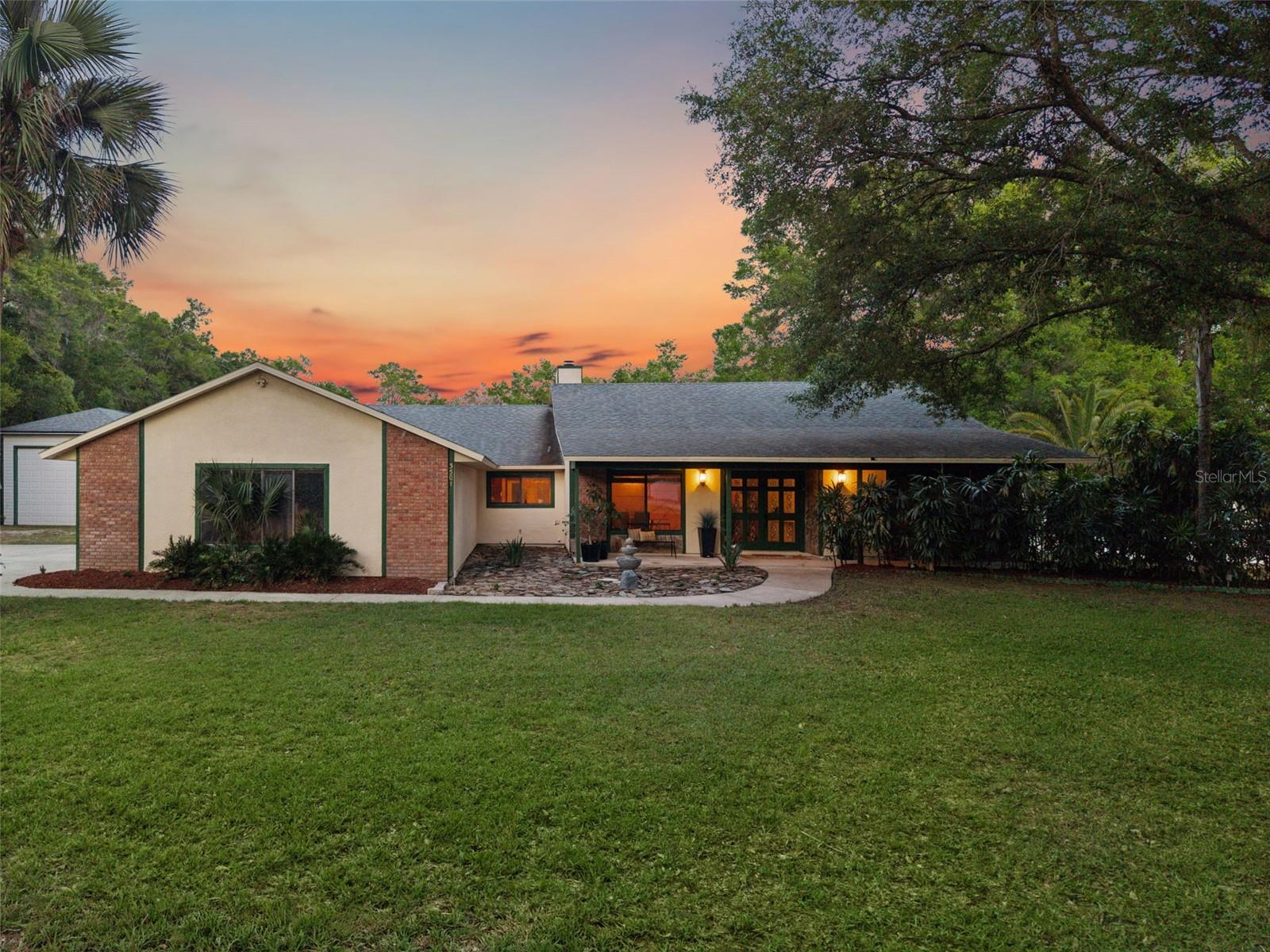 RARE OPPORTUNITY. Welcome to your private paradise! This recently appraised 2.5-ACRE FULLY FENCED estate featuring an INGROUND POOL, is located on a quiet CUL-DE-SAC in the sought-after Spring Hollow community. Perfect for families seeking space, privacy, and breathtaking sunsets, the property is zoned P-D and is surrounded by mature trees, tropical landscaping, and several large palm trees in the front yard. FLOOD ZONE X. The main residence offers 2,481 SqTf of living area, 3,407 SqTf Total Area, featuring 4 bedrooms & 2.5 bath, with a functional OPEN-CONCEPT layout, volume ceilings, plenty of storage, natural light, a separate LAUNDRY ROOM, and a SPACIOUS FAMILY ROOM highlighted by a beautiful stone electric FIREPLACE, ceiling fans installed in multiple areas, and a LIFETIME TERMITE BOND for peace of mind. Major updates include a dimensional shingle ROOF replaced in 2018, exterior PAINTING completed in 2025, PEX PLUMBING installed in 2015, updated HVAC condenser (2022), and a 200-amp electrical system with COPPER WIRING. The updated kitchen features cherry wood cabinetry, stainless steel appliances, decorative tile backsplash, stone flooring, wine station, and a functional gourmet layout ideal for everyday living and entertaining. The spacious primary suite features a unique open-concept design completed in 2021, showcasing a freestanding soaking tub and walk-in shower integrated into the suite, creating a spa-like experience. This private retreat includes hurricane-rated DOUBLE PANEL windows and doors, a double vanity, a separate spacious custom walk-in closet with wet vanity included, volume ceilings, and abundant natural light. Three windows provide relaxing views of the outdoor setting, including a decorative waterfall and fire feature. A ceiling-mounted movie projection screen and projector are included in the sale. Step outside into your private outdoor oasis, featuring a sparkling INGROUND POOL & SPA with SCREENED enclosure, SELF-cleaning system, SALT SYSTEM installed in 2024, updated filtration system in 2024, pool pump replaced in 2021, and pool renovation completed in 2025. The expansive screened patio includes a bar area ready for entertaining, with four convenient access points from the primary bedroom, living room, kitchen, and patio bathroom, perfectly positioned to enjoy stunning sunrise views. The outdoor living experience continues with mature trees, tropical landscaping, an 8-foot FIRE PIT, and a fixed GAZEBO with a metal roof, ceiling fan, and colorful lighting. A cozy secret garden adds another peaceful retreat. The fully fenced 2.5-acre property includes rear gates with independent entrances and an extended driveway. Additional structures include a detached GUEST HOUSE converted from a barn, featuring 2 bedrooms and 1 bathroom, currently operating as an income-producing DETACHED guest house. For those needing additional storage, the property features a spacious 3 CAR attached garage with new doors, replaced motors, new tracks and springs. In addition, a separate 20x40 RV/GARAGE workshop offers exceptional versatility. New expanded gravel 2026. Additional features include TWO WELLS providing reliable water supply, eliminating water bills, and an all- NEW IRRIGATION system. Conveniently located near WEKIWA SPRINGS State Park and the Apopka Amphitheater, with easy access to SR-429 and US-441, close to AdventHealth Apopka, and nearby shopping, dining, and outdoor recreational destinations.