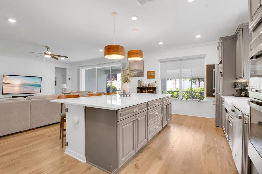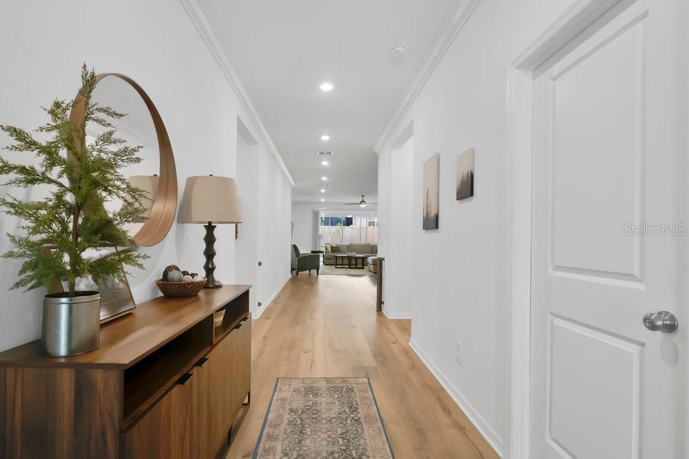 Save Big: 1% lender credit (based on loan amount) toward closing costs or rate buy-down with seller’s preferred lender. Ask for details! Located in the heart of Apopka, this thoughtfully designed home is loaded with premium upgrades designed for comfort and efficiency, including core-fill insulation in the block walls of the living areas for superior energy efficiency and sound reduction, a SpringWell whole-house water filtration and softener system, Cat. 5 pre-wire hookups for security cameras, and an insulated garage door with its own separate climate control system. Discover a spacious open concept layout with the kitchen, dining, and family room flowing seamlessly together. The chef's kitchen includes a large island perfect for casual dining or meal prep, a built-in microwave and oven, a natural gas range, and sleek stainless steel appliances, including a dishwasher and refrigerator, and a generous walk-in pantry provides ample storage. Natural light pours in through a stunning pocket 3-panel sliding glass door that opens to an extended screened lanai, perfect for enjoying morning coffee or hosting gatherings throughout the year. The private primary suite is secluded for relaxation and features a spacious bedroom, a large walk-in closet that connects to the laundry room, and a beautifully designed en-suite that includes a large soaking tub, dual sinks, and an oversized walk-in shower with double shower heads. This split-level floor plan features a full-sized guest bathroom beside a spacious bedroom, along with a guest room that includes a private en-suite. These arrangements are ideal for overnight visitors or extended family stays. Working from home in a dedicated office makes it an ideal environment for focused work and creativity. This room boasts a spacious walk-in closet, perfect for storing files and office supplies, and a custom-built-in desk featuring ample shelving for books, decorative items, or essential work materials. Beyond the home, the community presents a variety of wonderful amenities, including a pool and playground, allowing you to take full advantage of Florida’s sunny climate. Outdoor enthusiasts will love being just 15 minutes from Wekiwa Springs State Park, where you can cool off in crystal-clear springs, kayak scenic waterways, or explore miles of hiking trails. Plus, enjoy local culture and entertainment with the City of Apopka’s popular Saturday Sounds concert series held at the Northwest Recreation Complex, featuring multi-purpose fields, basketball courts, sand volleyball courts, pavilions, and more. This home offers the perfect blend of modern upgrades, smart design, and a vibrant community lifestyle. Don’t miss your opportunity to make it yours!