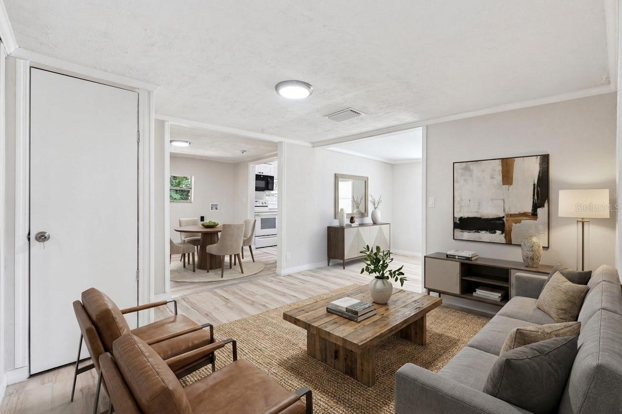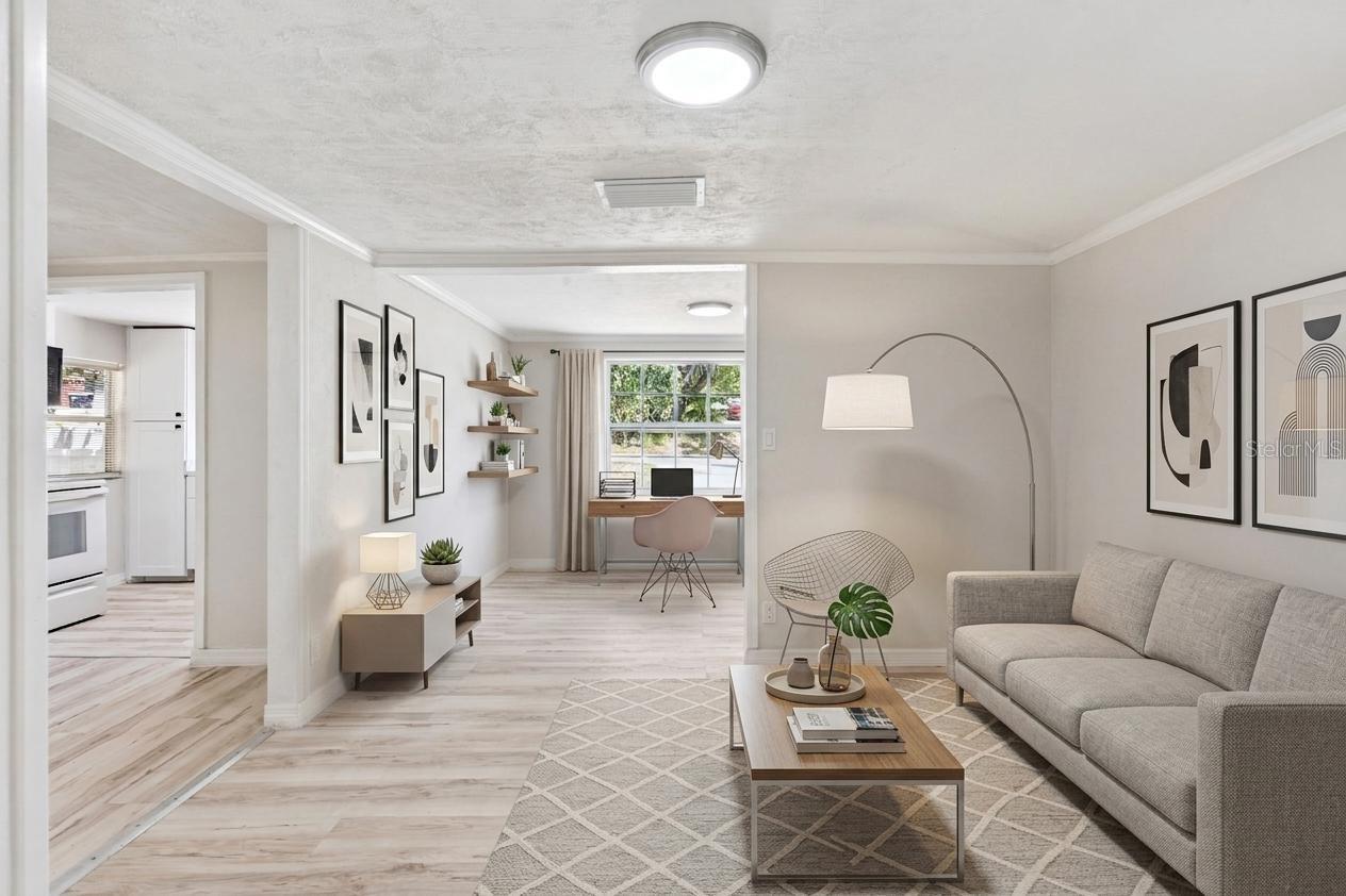 One or more photo(s) has been virtually staged. Tucked beneath a canopy of mature trees in the heart of Apopka, this beautifully renovated 3-bedroom, 1-bath home with NO HOA blends modern upgrades with everyday comfort—and it’s designed to instantly feel like home. Step inside and you’re welcomed by a versatile foyer-style entry—perfect as a cozy sitting area, home office, or creative flex space—before it opens into a bright, open-concept living and dining area. The seamless layout makes it easy to entertain, connect, and enjoy everyday living all in one space. The home has been thoughtfully upgraded with a brand-new tankless water heater, new electrical panel, and a new A/C system—giving you peace of mind for years to come. Luxury vinyl flooring flows throughout the main living areas, while the bathroom and all three bedrooms feature tile flooring, offering both durability and effortless maintenance. The bathroom has been fully modernized with a sleek walk-in shower, finished with tile and a glass door for that clean, spa-like feel. In the kitchen, a well-placed window invites in natural light while offering a view of the outdoors—creating a bright and welcoming space to cook and gather. Step outside and you’ll find one of this home’s standout features: a spacious, fully fenced backyard with a brand-new wood fence—perfect for pets, gatherings, or simply enjoying your own private outdoor retreat. The surrounding trees not only add charm but help keep the property cool and shaded year-round. Location is everything, and this home delivers. Phyllis Wheatley Elementary School is just down the street, making morning routines a breeze. Plus, you’re minutes from Apopka’s growing selection of parks, trails, shopping, and dining—while still enjoying a quiet, established neighborhood feel. If you’re looking for a move-in-ready home with modern upgrades, a functional layout, and a spacious lot in a thriving area—this one checks all the boxes.