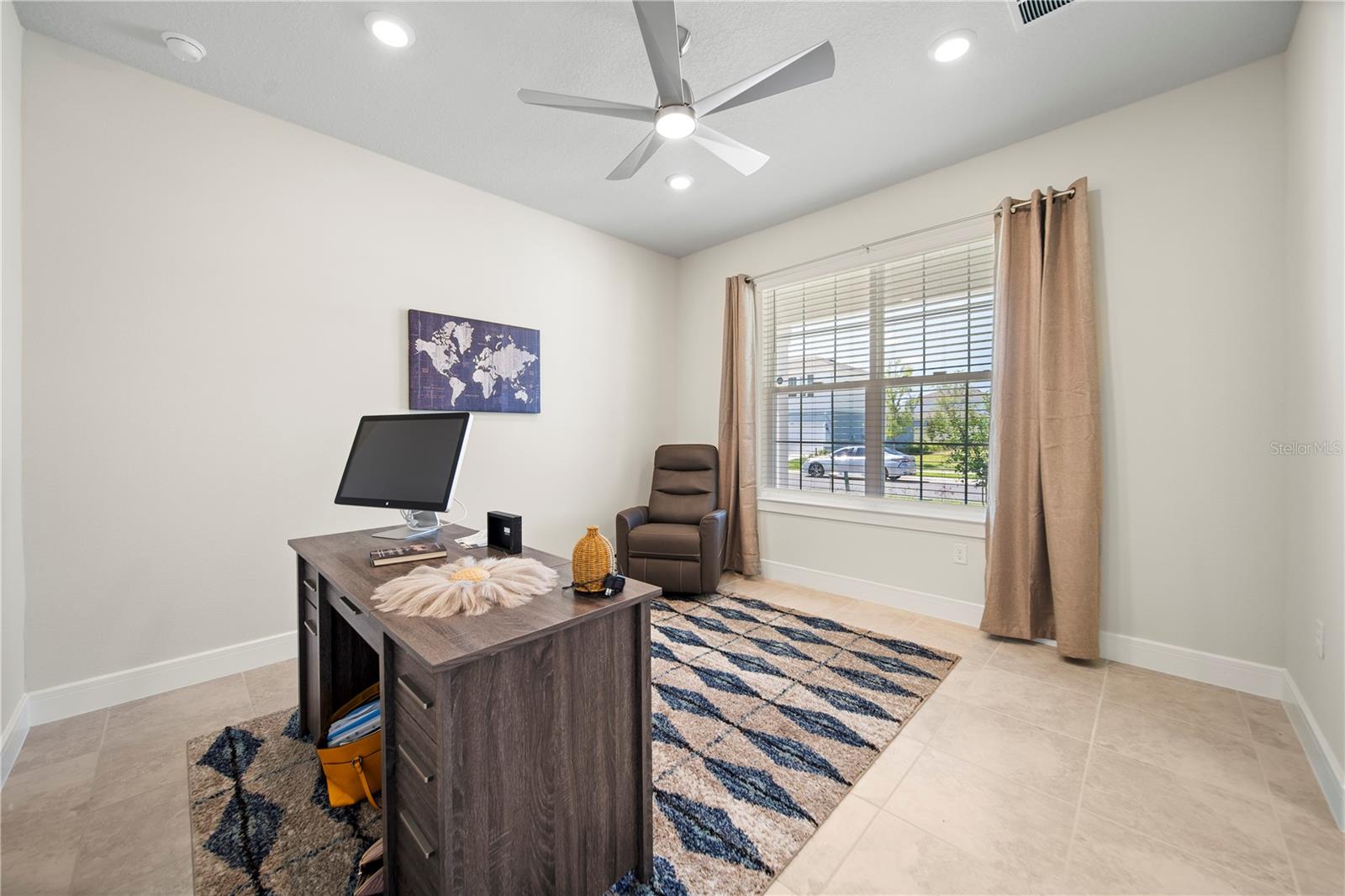 Welcome to your dream home! This thoughtfully designed, 2024 two-story Whitestone home on a prime corner lot features no rear neighbors and is packed with upgrades to enhance your lifestyle! The Florida Mediterranean exterior complements the home's modern interior, which includes 4 bedrooms, 3.5 bathrooms, an open-concept floor plan, a flex room, a large loft, a covered lanai, and a spacious, 2-car garage! Inside you will find professionally curated design selections including a designer glass-inlay front door, upgraded interior doors and baseboards, pocket sliding glass doors in the gathering room, gray tile flooring throughout the first floor and in the bathrooms, an oak and iron spindle staircase with wood treads, soft, stain-resistant carpet in the upstairs bedrooms and loft, enhanced wi-fi, and more! Upon entering, you're greeted by the sunny flex room which works perfectly as your at-home office, leading to a stunning foyer that flows past the laundry room towards the kitchen, gathering room, and café, all overlooking the covered lanai. The gourmet kitchen boasts a corner walk-in pantry, a large center island, built-in stainless-steel appliances, gray cabinets with matte hardware, a subway tile backsplash, pristine quartz countertops, and pendant lighting. The main-level primary suite features an en-suite bathroom with a grand walk-in closet, dual sinks, double vanities, a private water closet, and an oversized spa-like walk-in shower! Upstairs, a spacious loft is accompanied by three bedrooms, one with an en-suite bathroom and walk-in closet, and another shared bathroom. Step outside to the serene, covered lanai, perfect for sipping your morning coffee and hosting summer barbecues. Enjoy the view of your lush landscaping in the privacy of your backyard. Nestled in the tranquil community of Winding Meadows in Apopka, this home offers amenities such as a resort-style pool, parks, and walking trails. Enjoy 1 gig internet and TV included in the low HOA fee, with no CDD! Nearby all of the essentials with easy access to SR-429, shopping, dining and schools. Schedule your appointment today and make this dream a reality!
