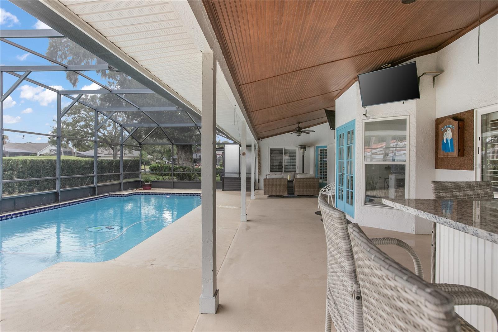 Welcome to this FULLY REMODELED 4-bedroom, 2-bath home in the desirable Sweetwater Country Club community. Offering nearly 2,300 sq. ft. of beautifully updated living space, this property sits on one of the most coveted south-facing golf course lots—perfectly positioned between the 4th green and 5th tee box for long range views of the course. Residents also enjoy a multitude of amenities including pickleball courts, tennis courts, playgrounds, deeded access to Lake Brantley and Sweetwater Oaks’ amenities, which provides private access to the gated park and boat ramp. Inside, the home features an open, airy floor plan with abundant natural light pouring in from skylights and large windows throughout the main living areas. The inviting family room includes a floor to ceiling wood-burning fireplace, creating a warm focal point for the space. The entire home has been fully retiled and renovated from top to bottom, including a complete PEX repipe, new water heater (2024), roof (2019), interior/exterior paint (2022), A/C (2020) and a full Ring home security system that conveys. The kitchen has been completely remodeled with modern finishes, ample cabinetry, and seamless flow into the dining area and living spaces—ideal for daily living and entertaining. Both bathrooms have been fully remodeled, with the spa-like primary suite offering his-and-hers walk-in closets, a luxurious soaking tub centered on a custom-tiled wall, dual vanities, and a glass-enclosed shower with custom tile work. Additional highlights include an indoor laundry room with built-in cabinets and storage closets for added convenience. Step outside to your private retreat: a large screened-in patio overlooking the solar-heated pool, complete with an outdoor bar and an expansive sitting area on the extended deck—perfect for relaxing or hosting gatherings while enjoying sweeping golf course views. A complete landscape redesign enhances both curb appeal and outdoor enjoyment. Combining modern updates, premium outdoor living, and a one-of-a-kind golf course setting, this move-in-ready home offers the best of Florida living. Don’t miss your opportunity to own it.